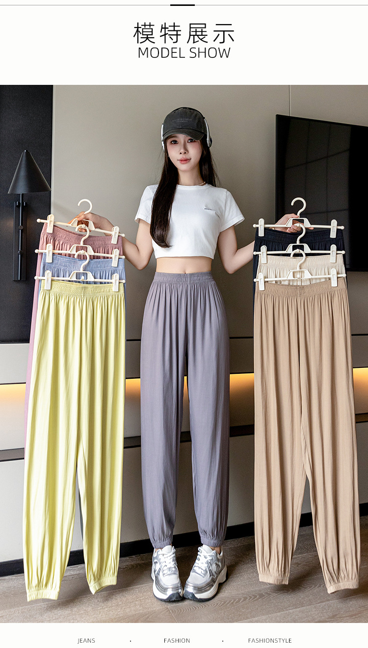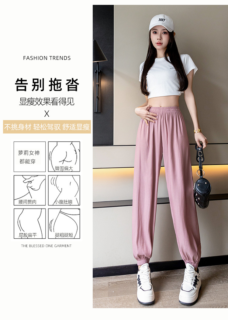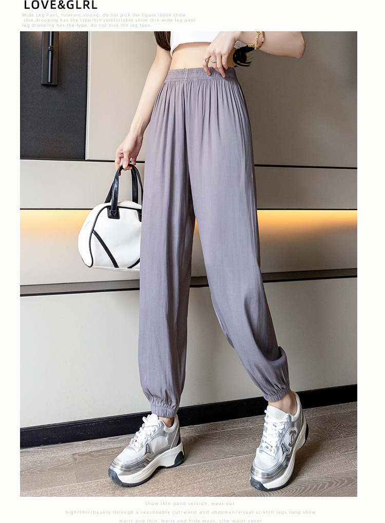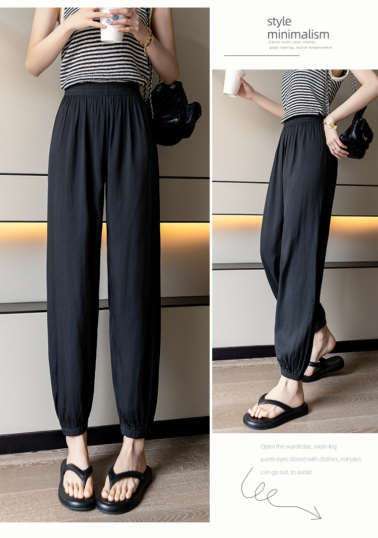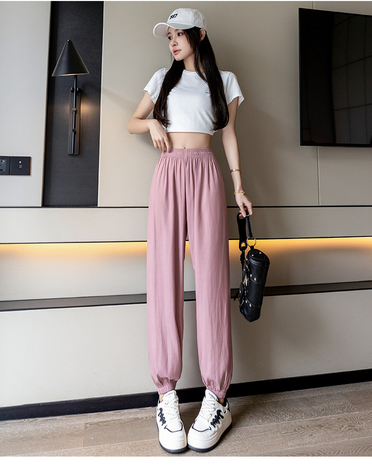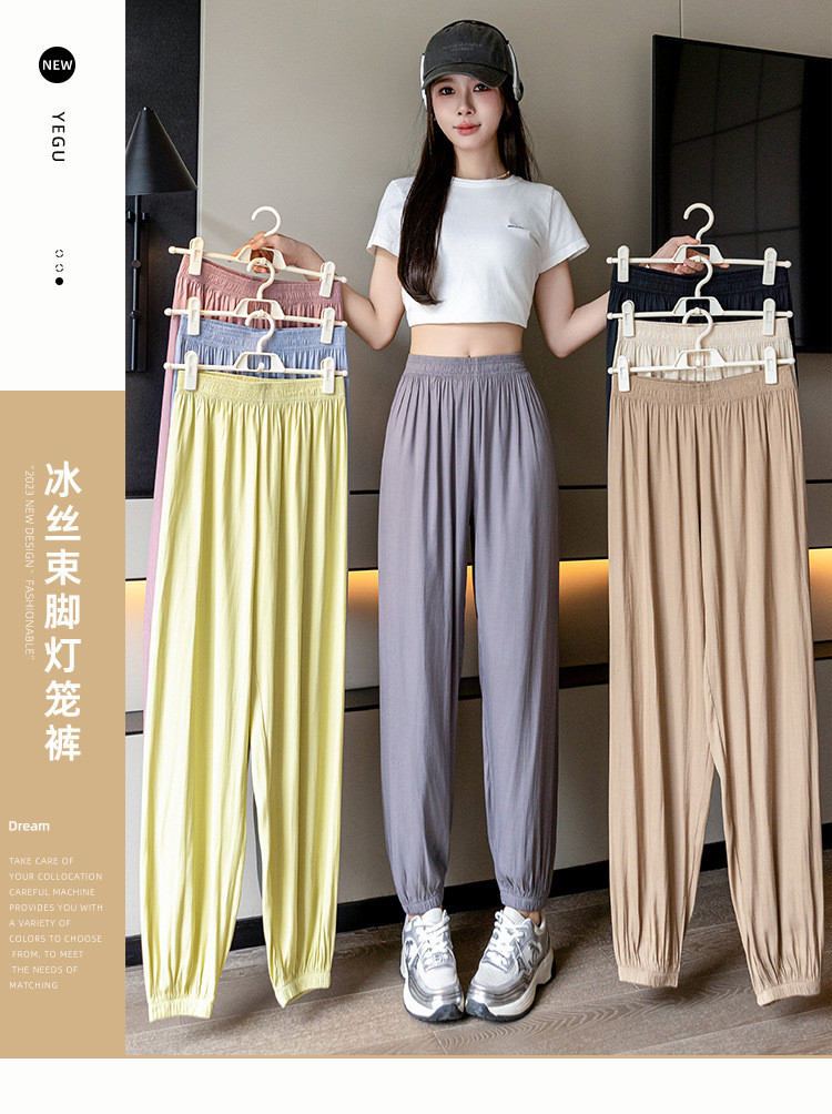 【束脚版型,显瘦又舒适!】冰丝灯笼裤女裤宽松直筒高腰显瘦,休闲夏季薄款萝卜束脚防蚊运动裤-lm!
