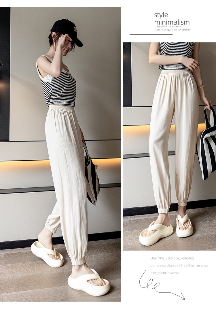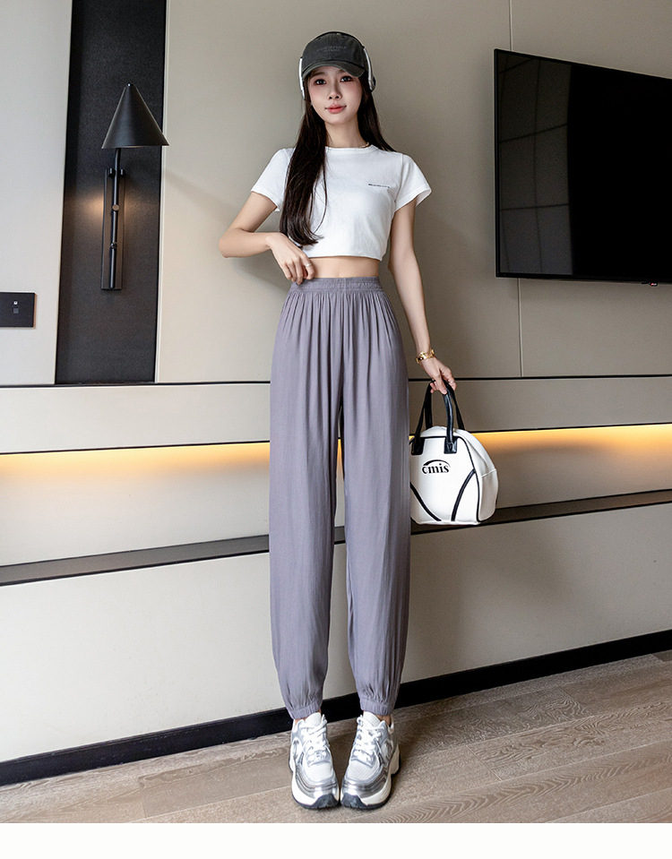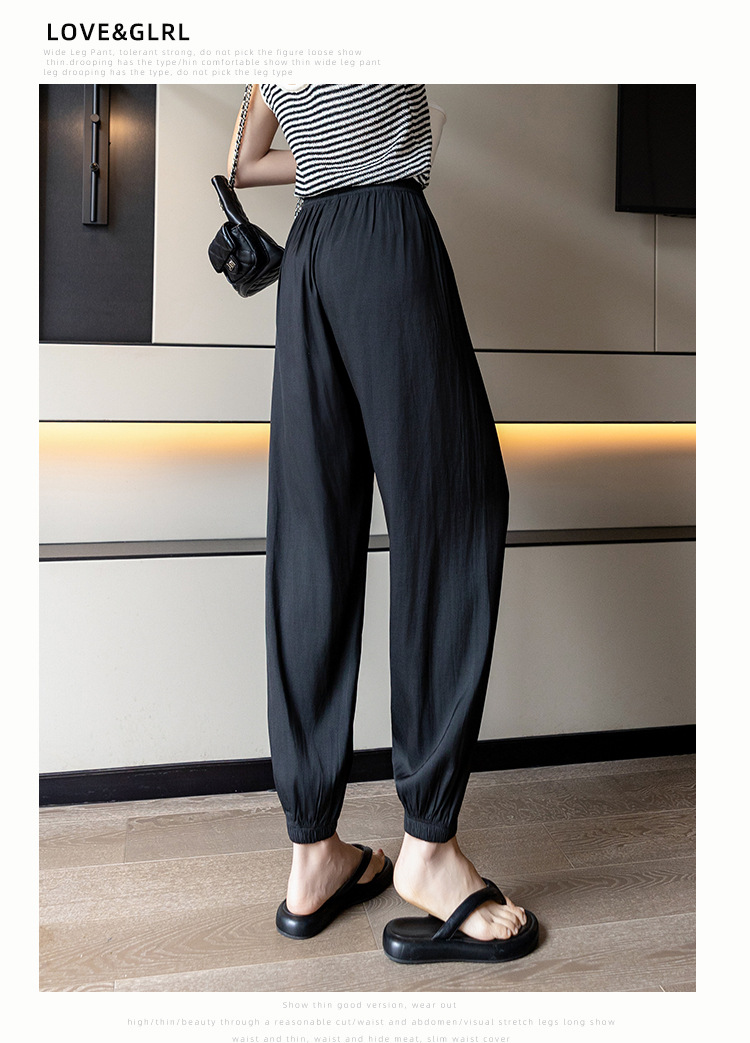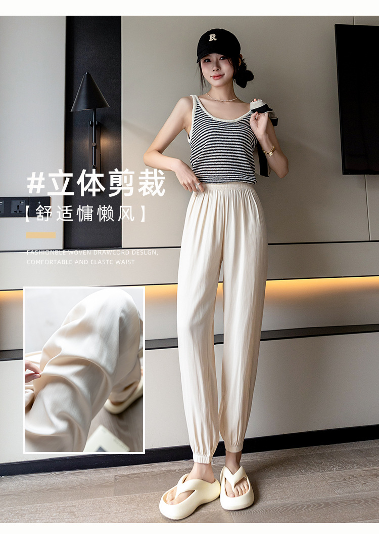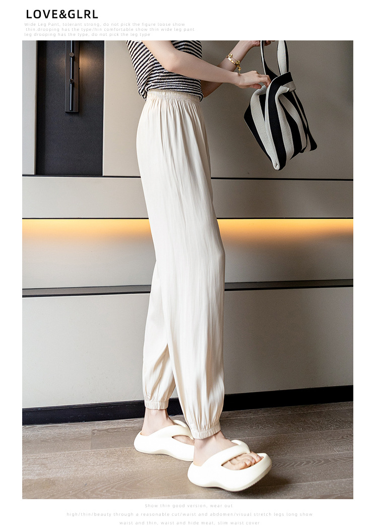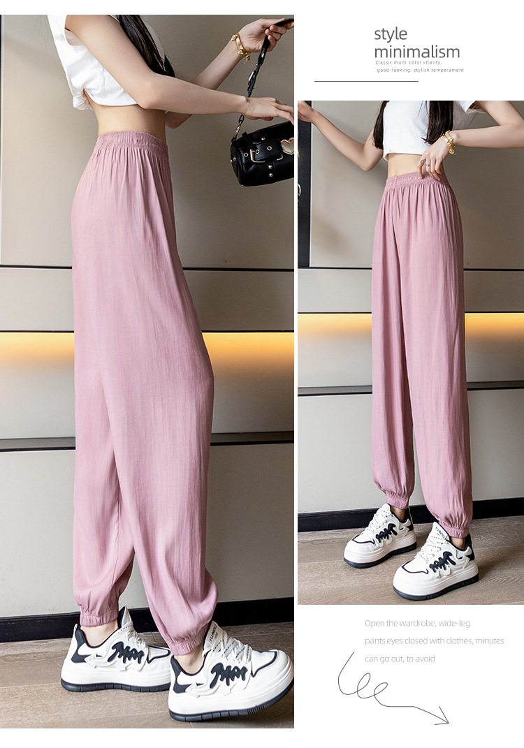 【束脚版型,显瘦又舒适!】冰丝灯笼裤女裤宽松直筒高腰显瘦,休闲夏季薄款萝卜束脚防蚊运动裤-lm!
