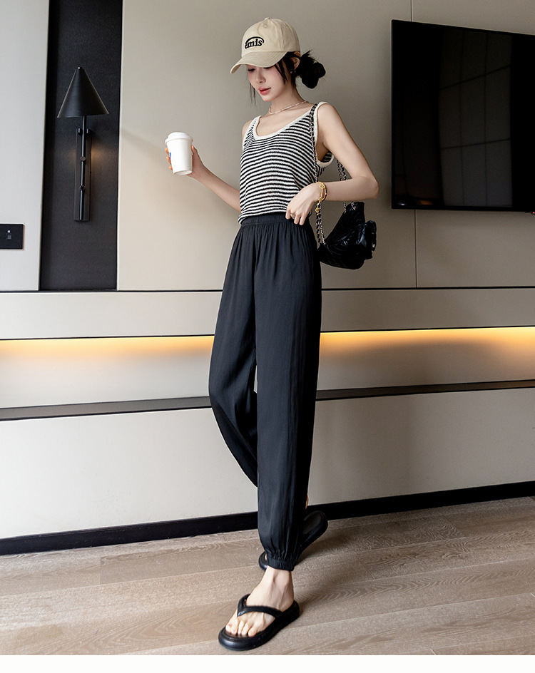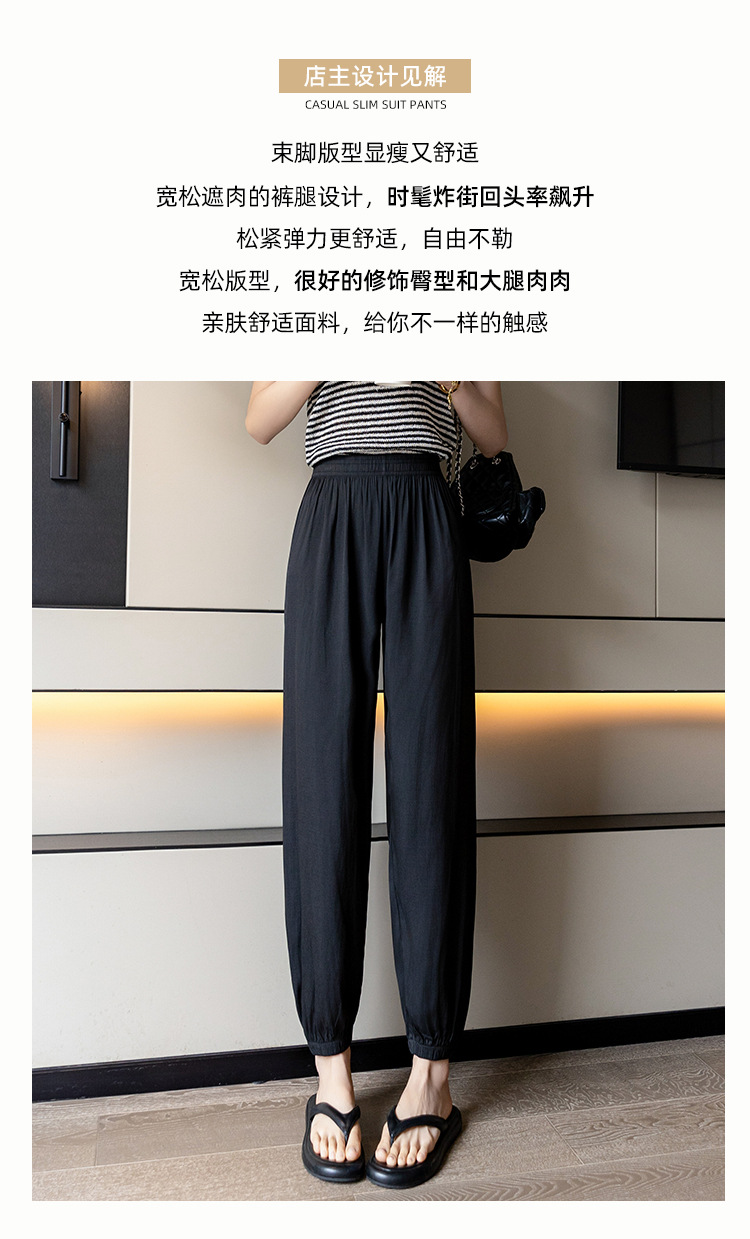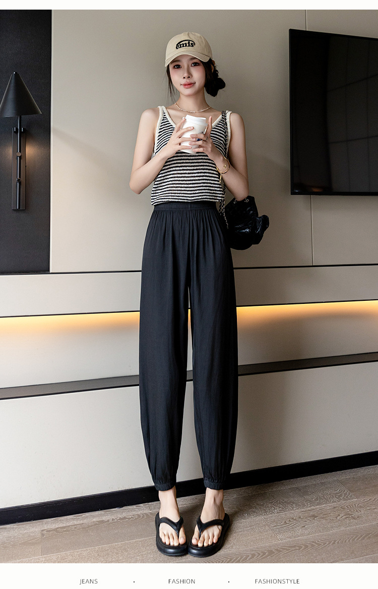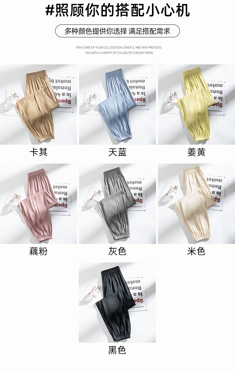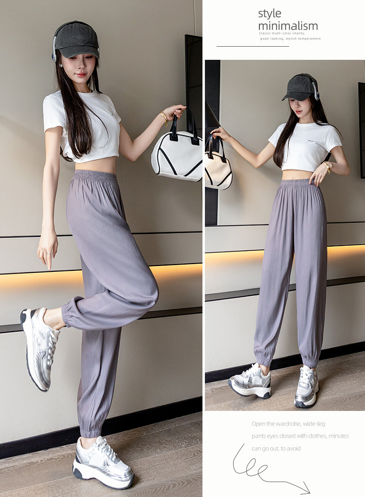 【束脚版型,显瘦又舒适!】冰丝灯笼裤女裤宽松直筒高腰显瘦,休闲夏季薄款萝卜束脚防蚊运动裤-lm!