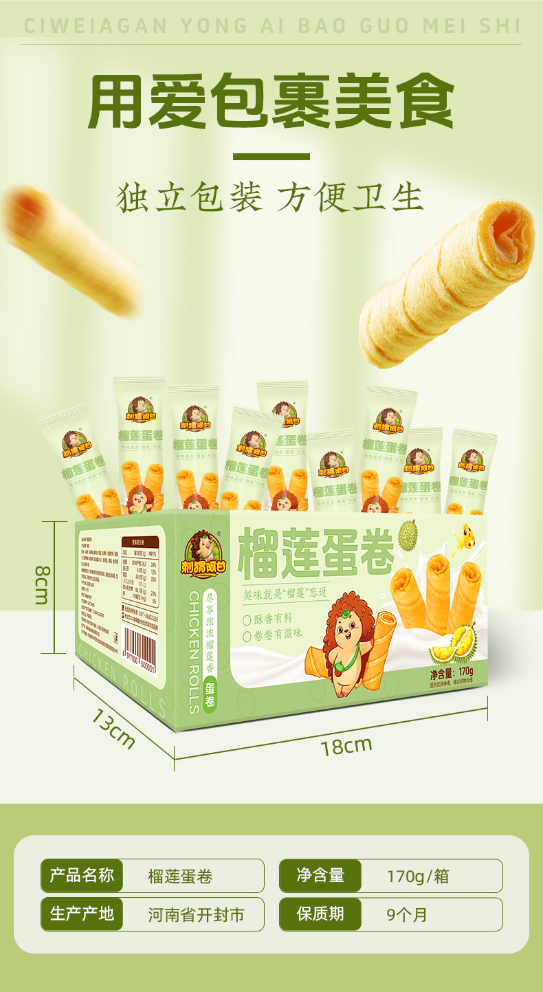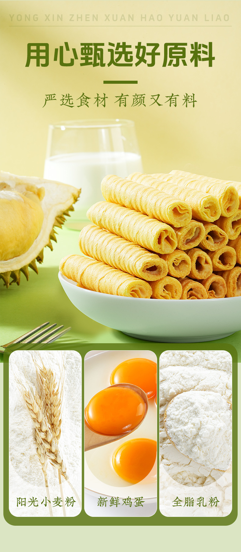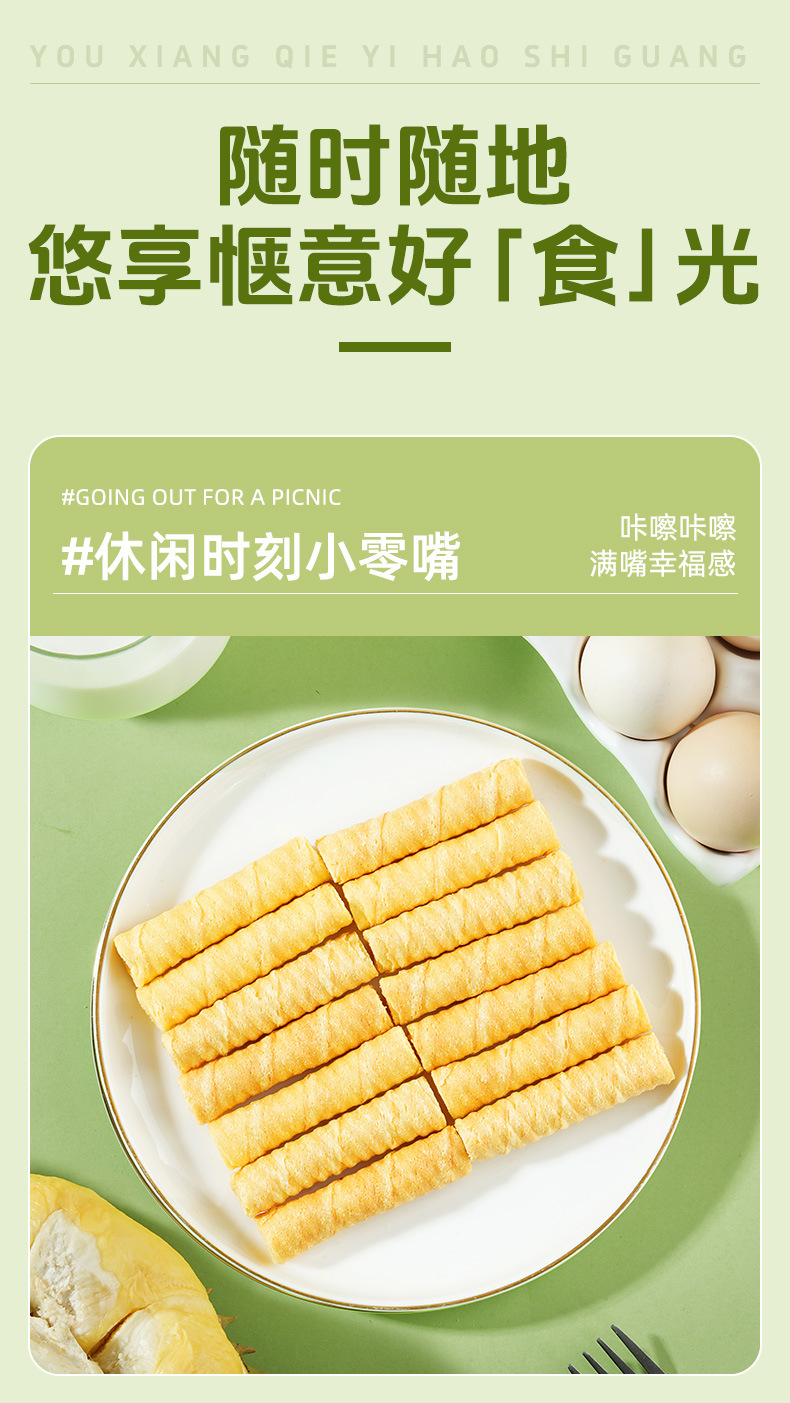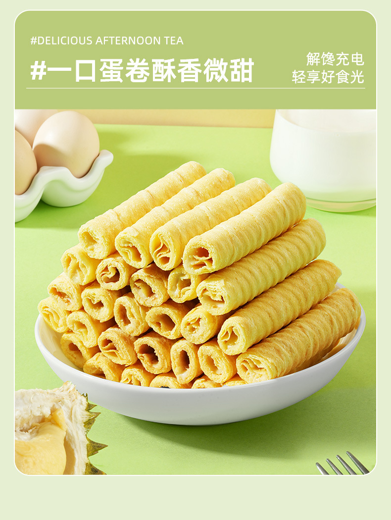 【酥香有料,卷卷有滋味~】榴莲蛋卷170g/整箱 饼干零食 儿童大礼包 糕点食品下午茶-QQ