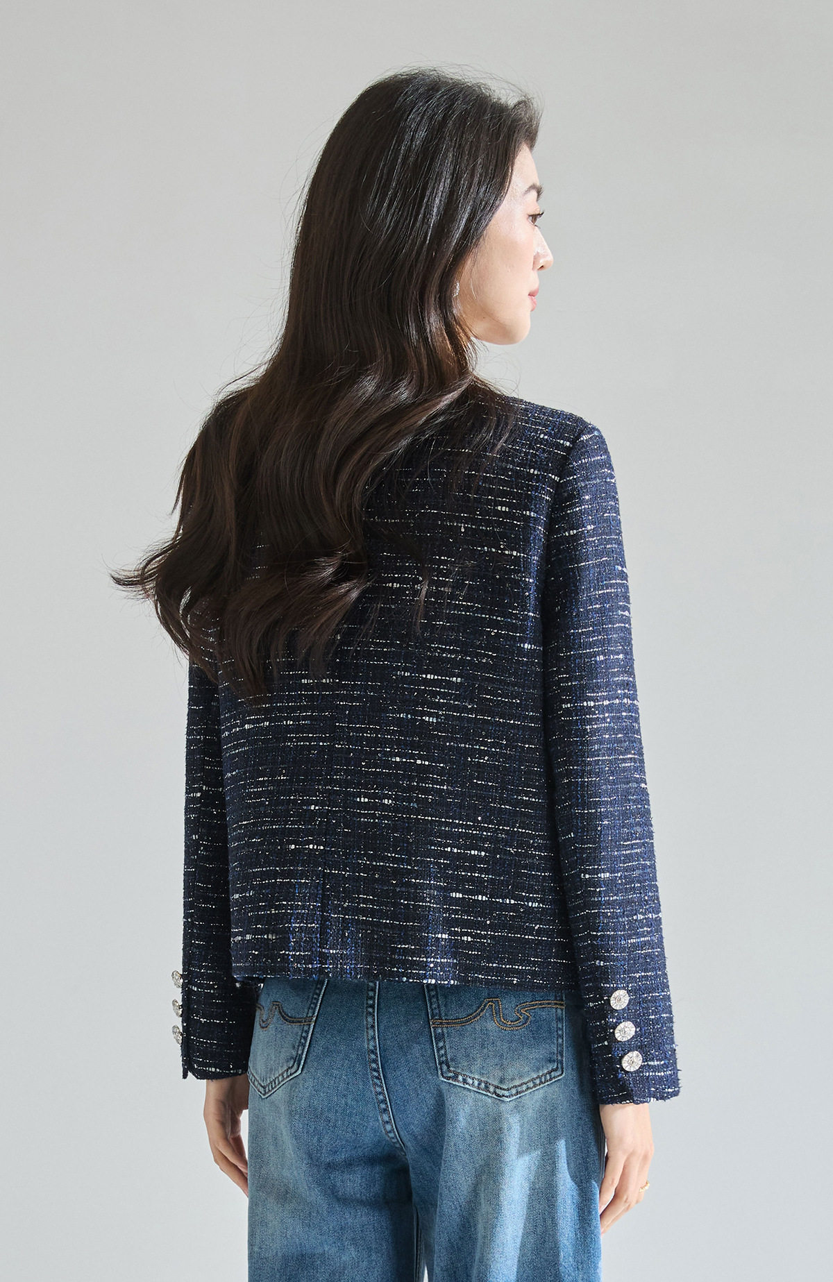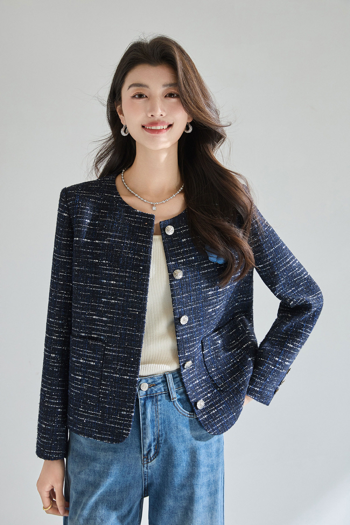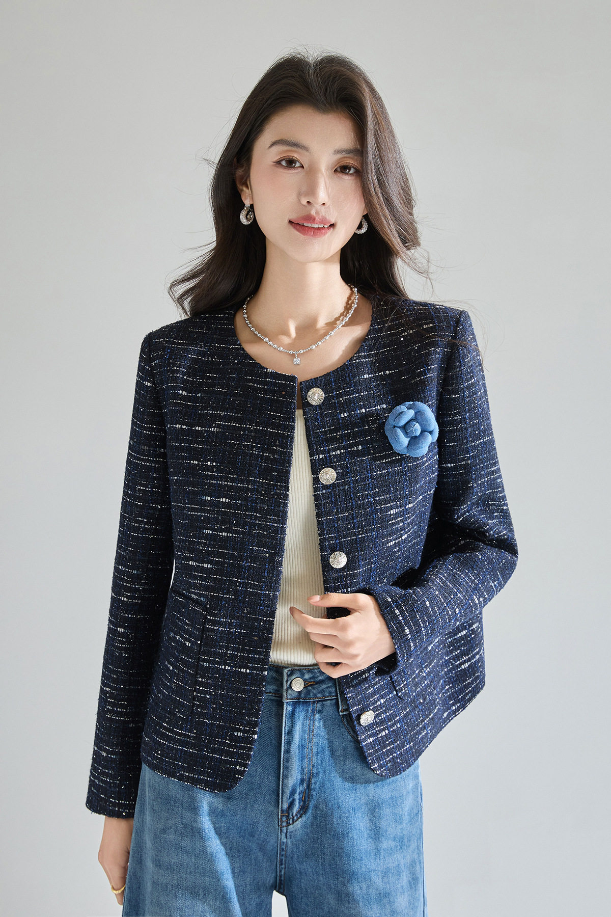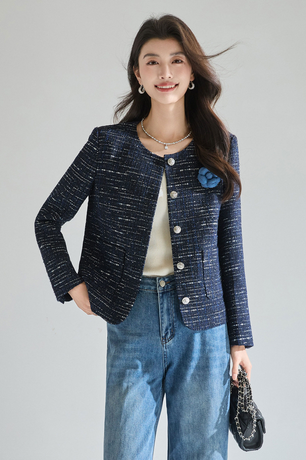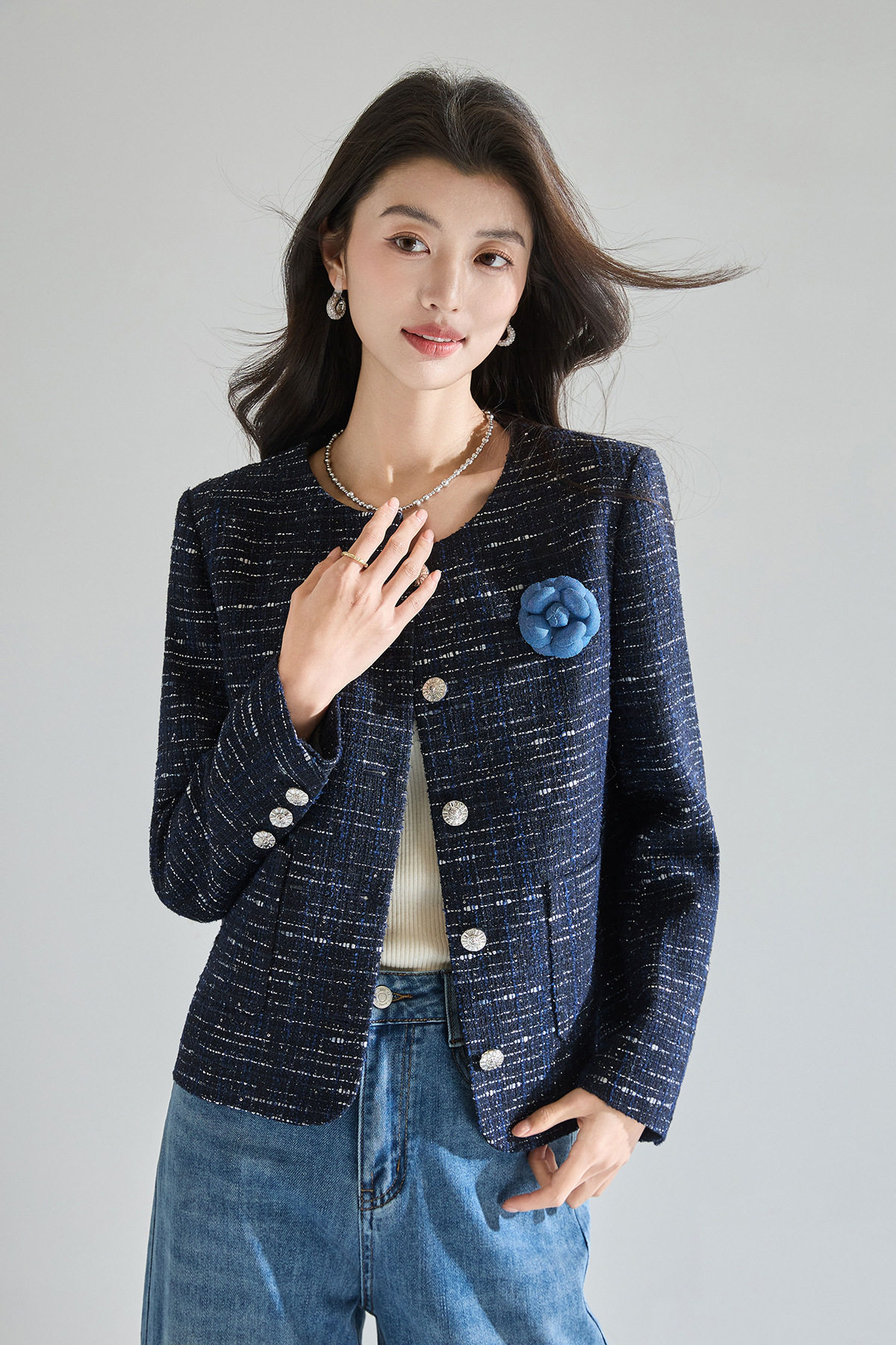 「高货sh」全新升级【铂金会员330/天猫439/差价109】(93338)洛诗琳高奢银色闪片粗花呢外套2026春季山茶花小香风外套