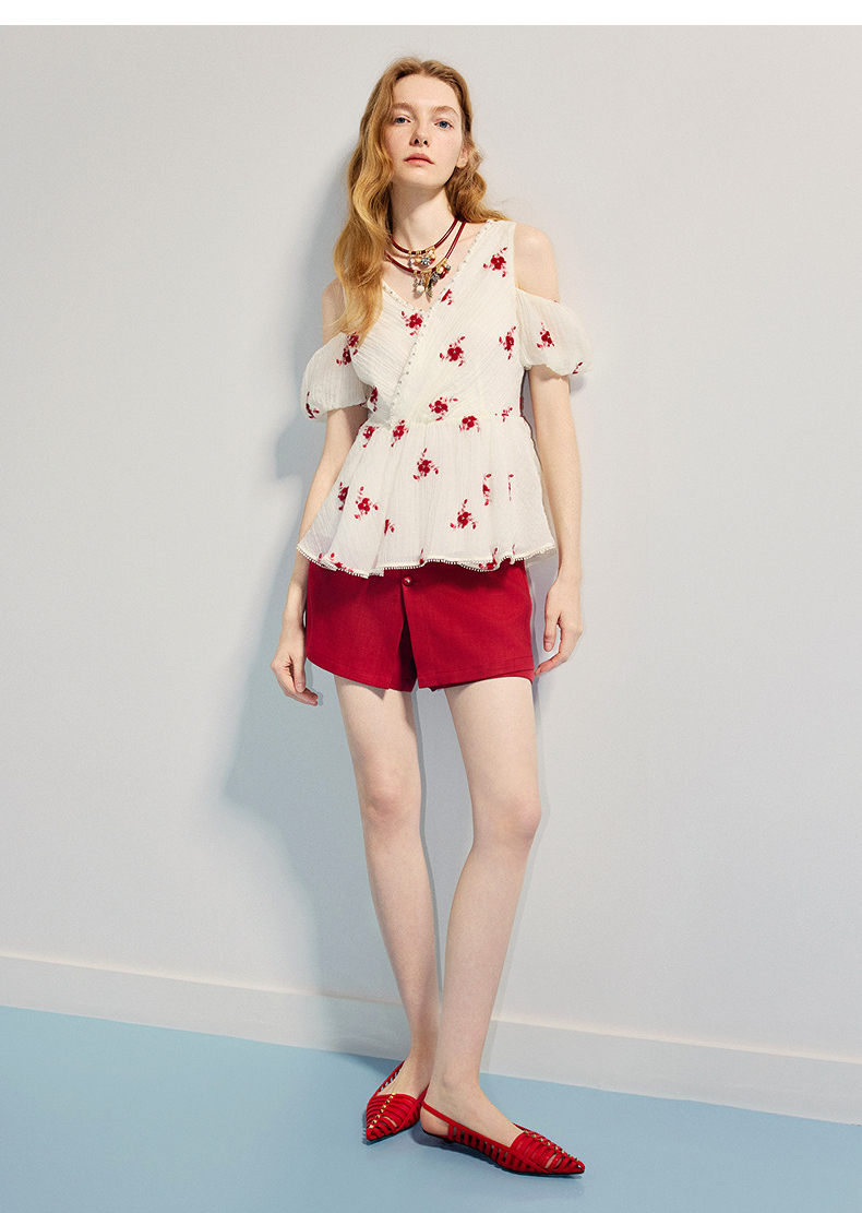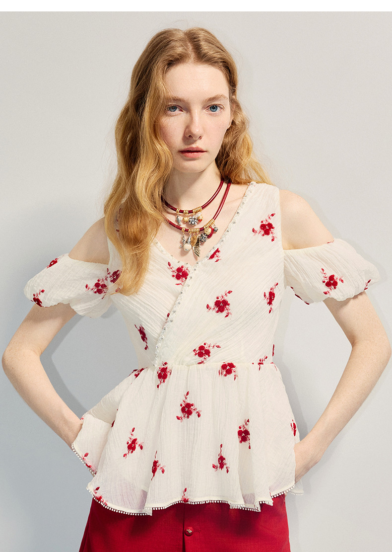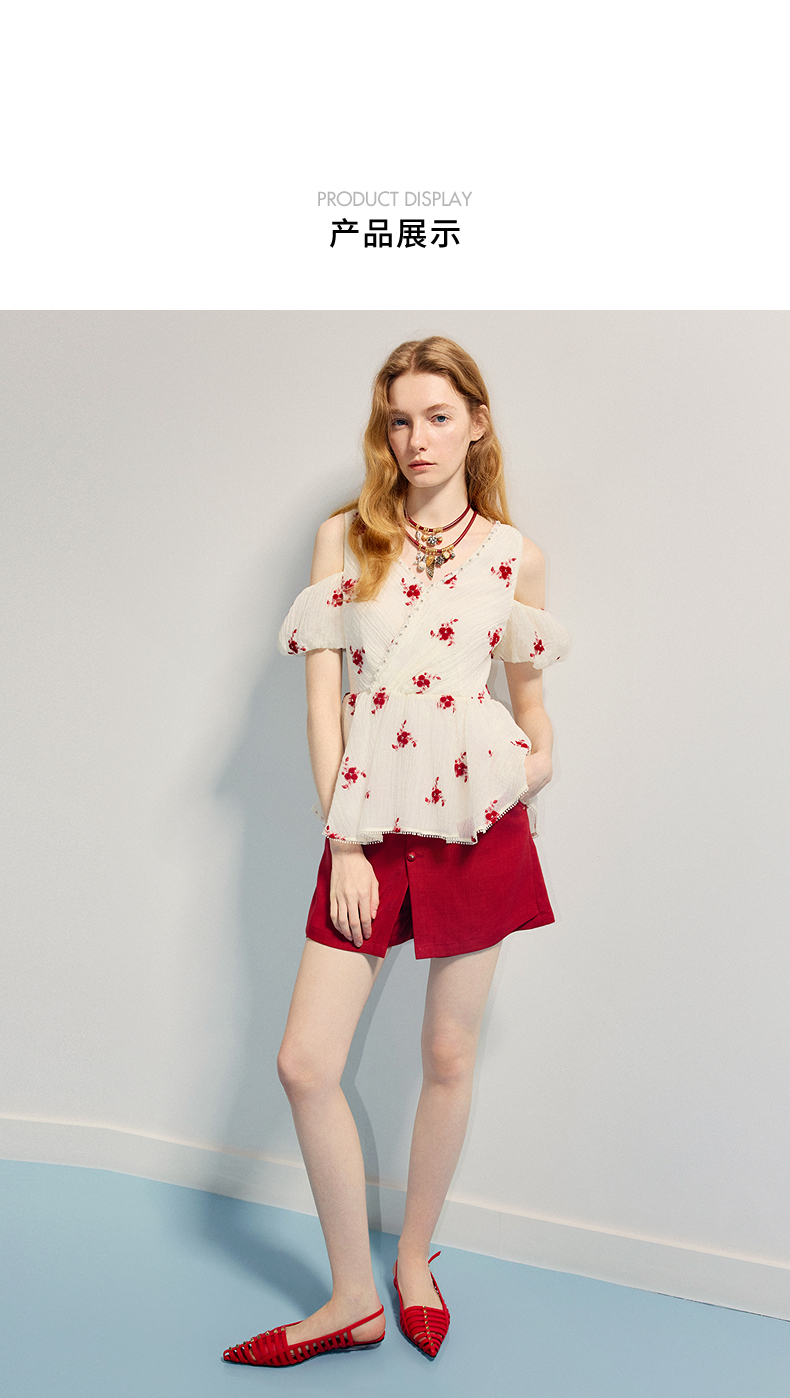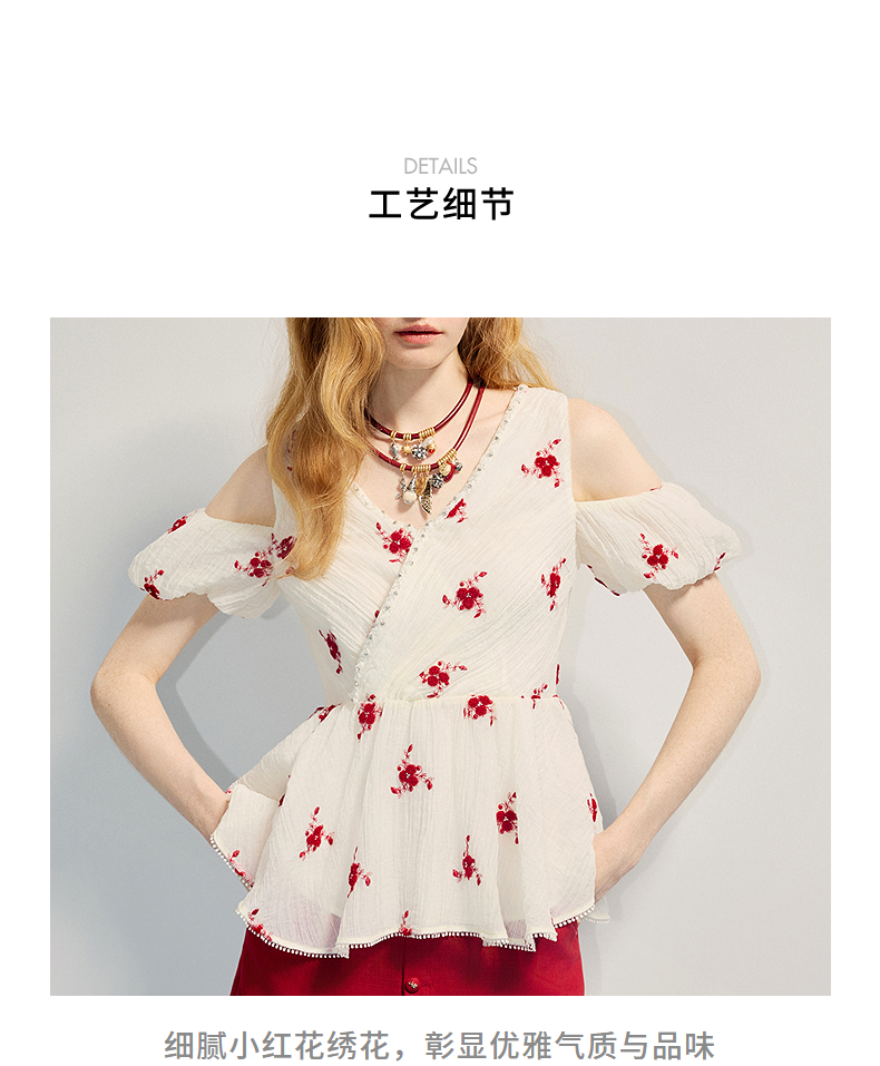 【商场同款】MAXRIENY精致浪漫感x型收腰露肩泡泡袖上衣25夏款(货号:MC86TP264)