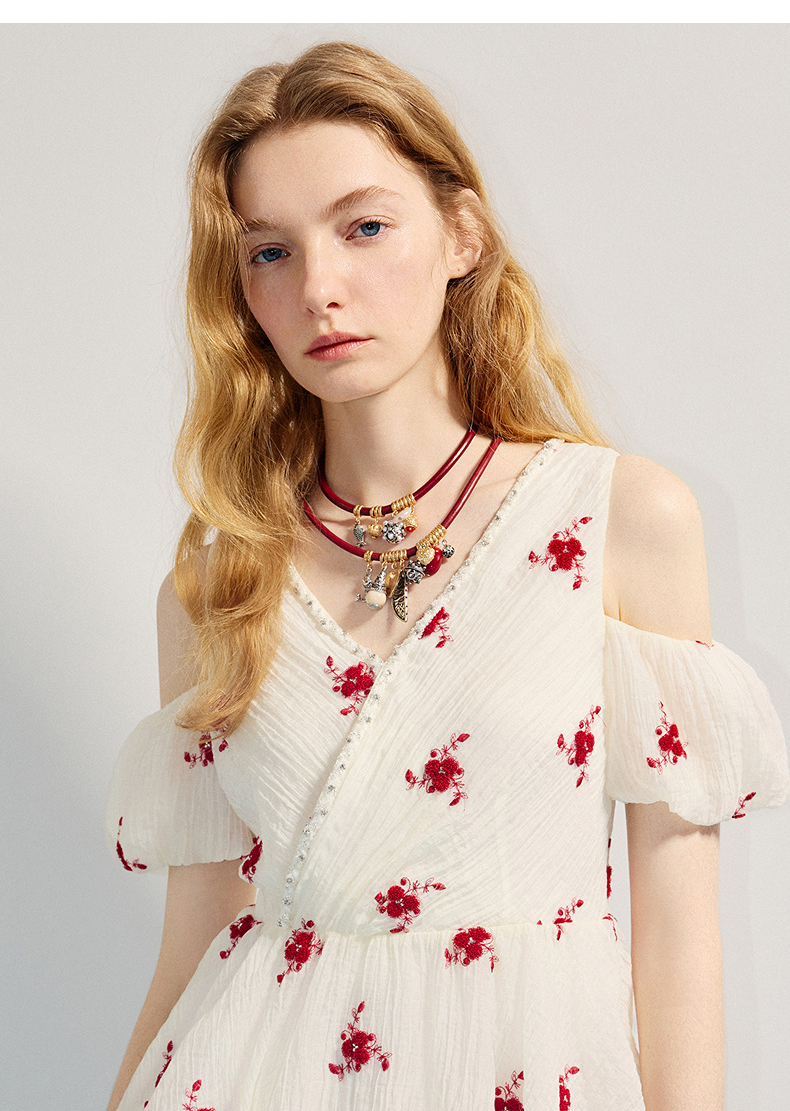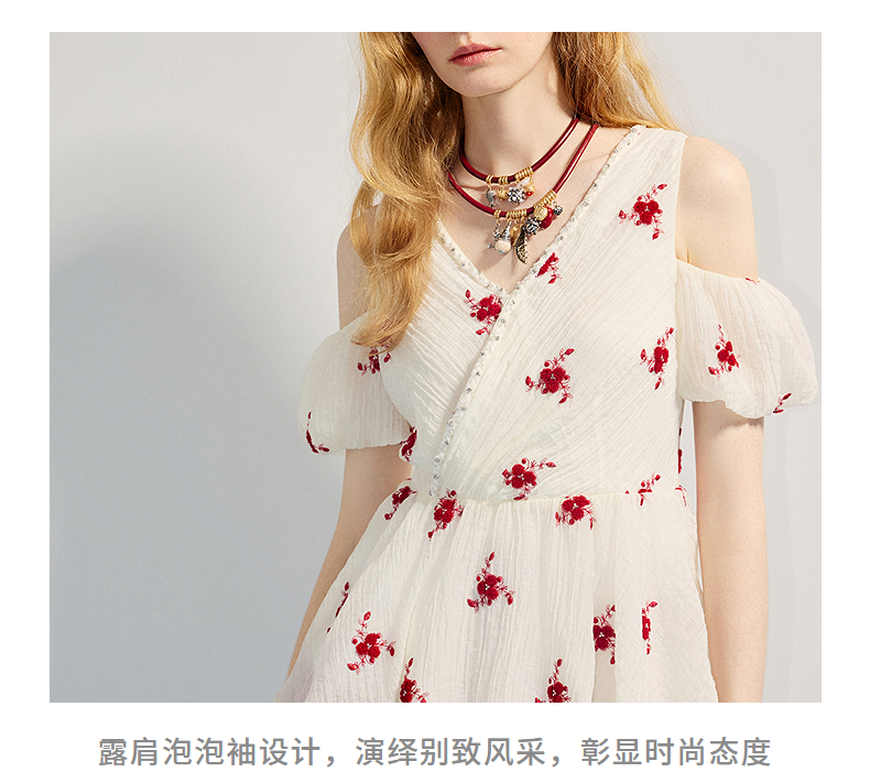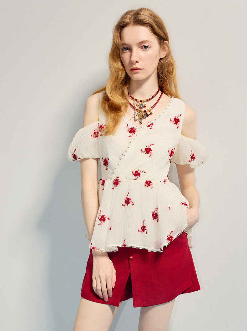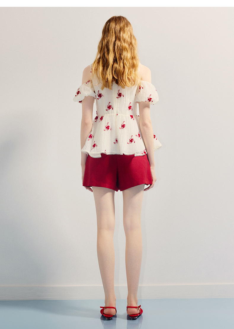 【商场同款】MAXRIENY精致浪漫感x型收腰露肩泡泡袖上衣25夏款(货号:MC86TP264)