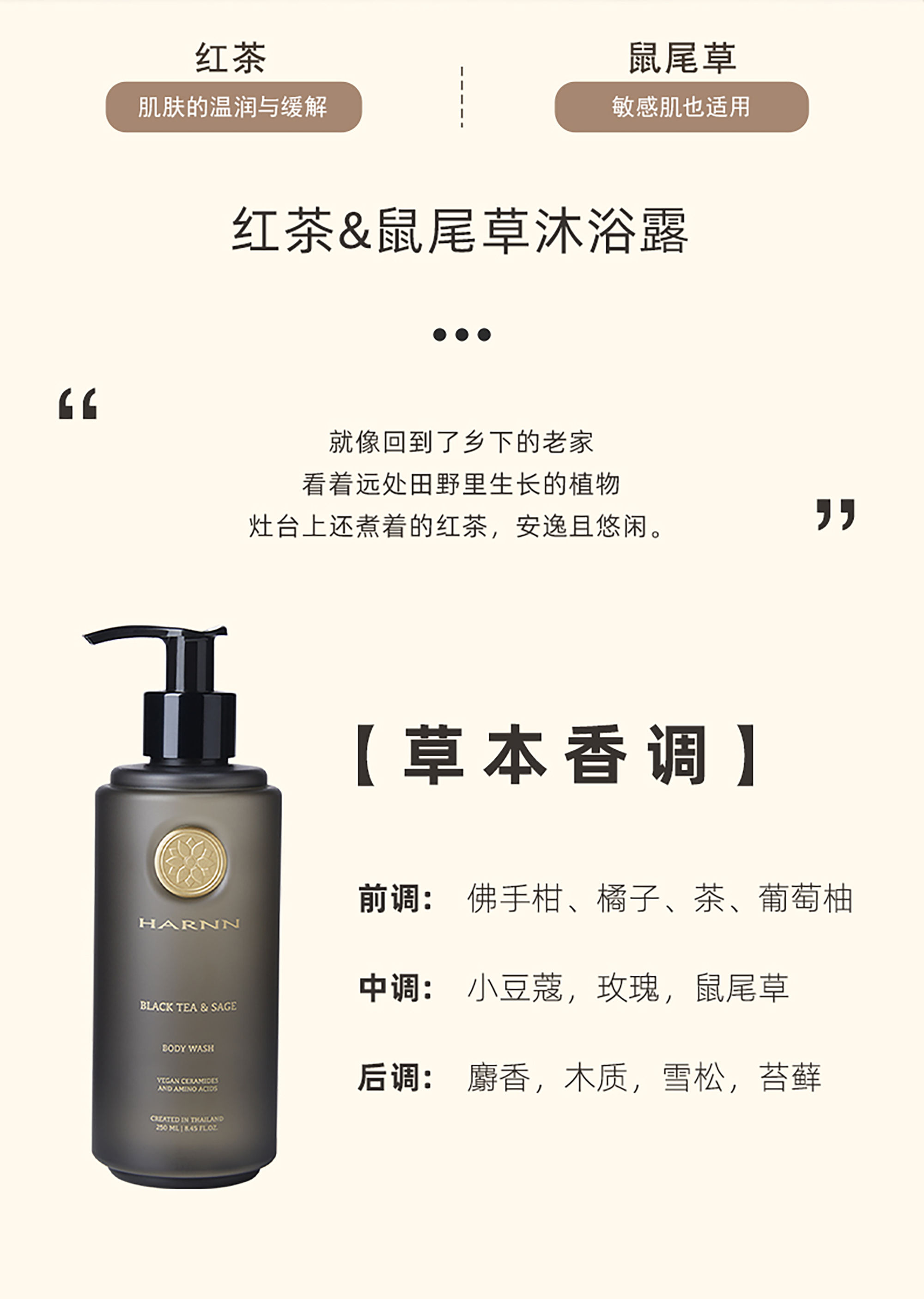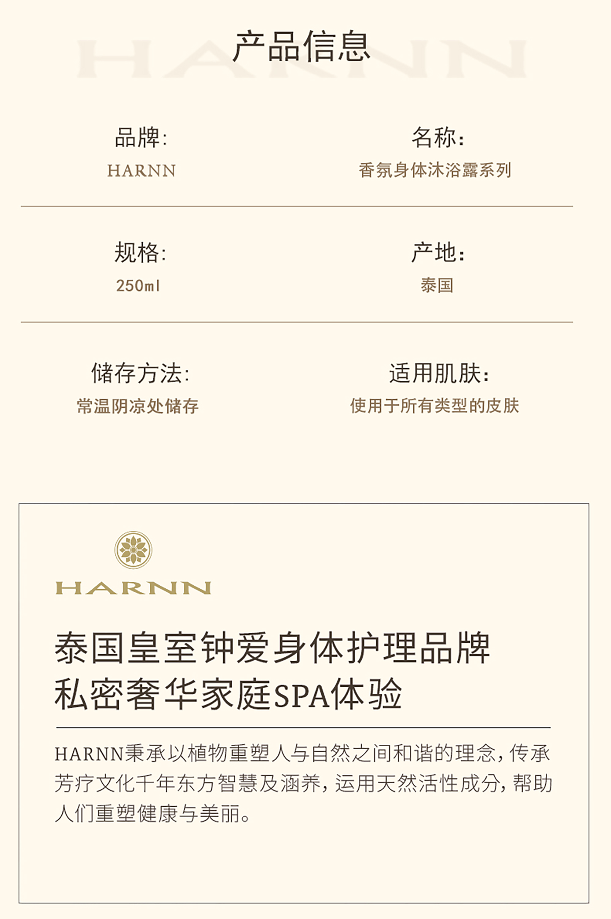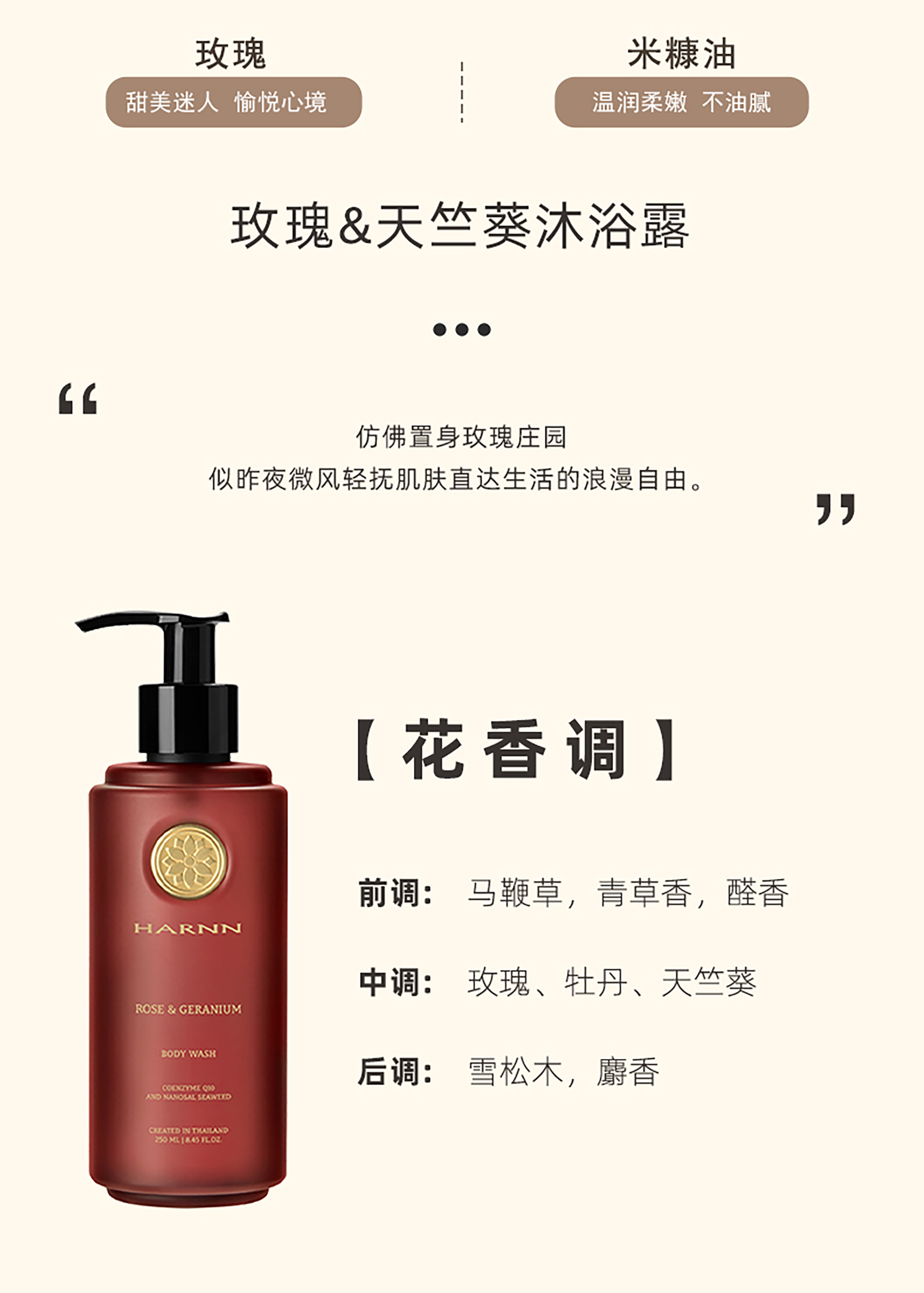HARNN泰国 香氛精油沐浴露250ml控油补水保湿滋润长效留香