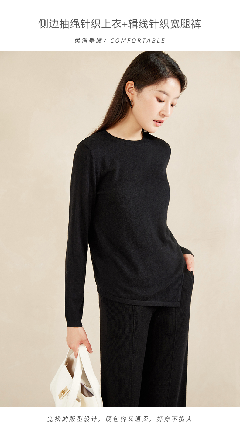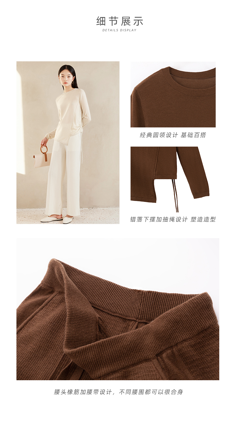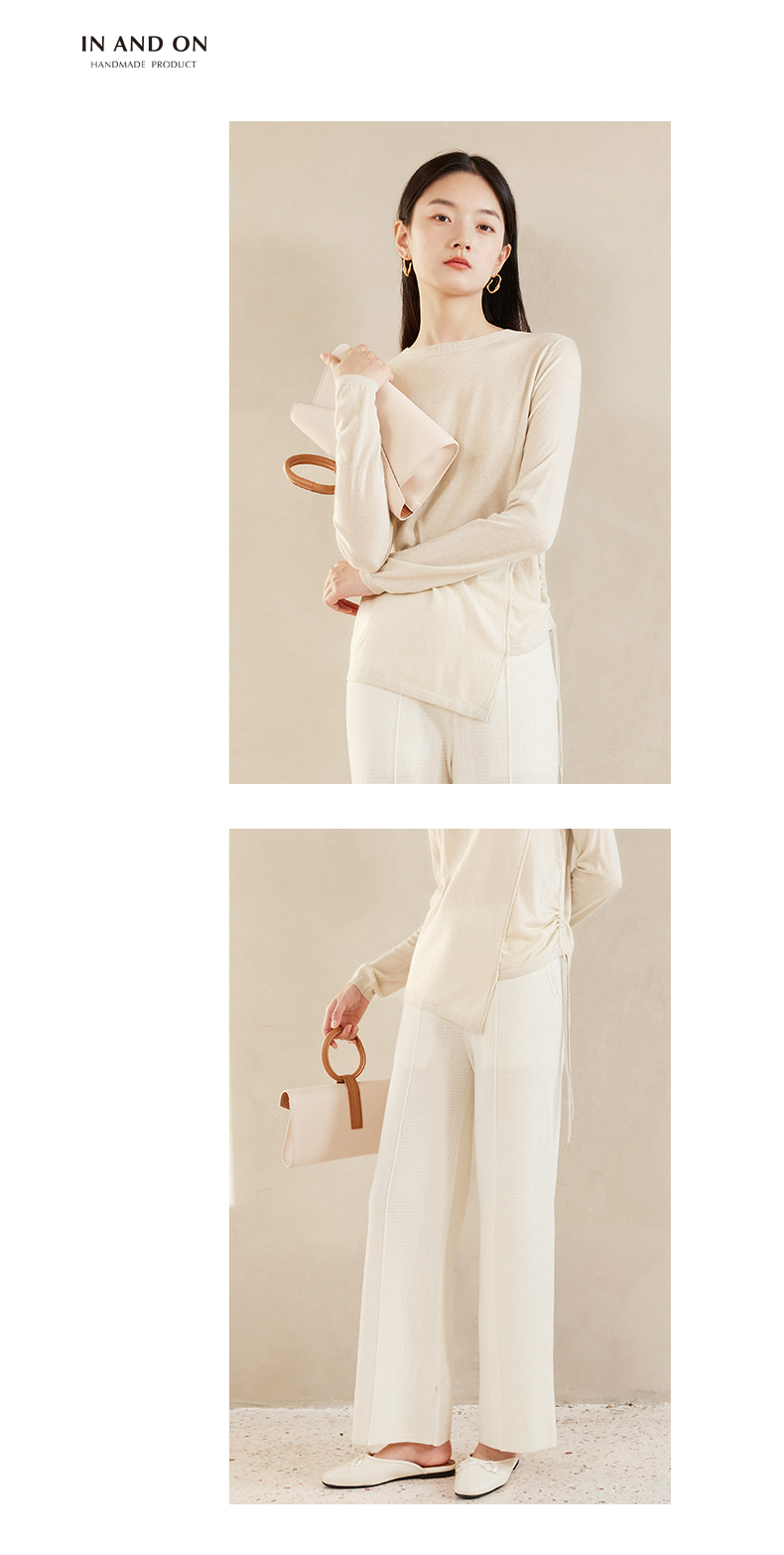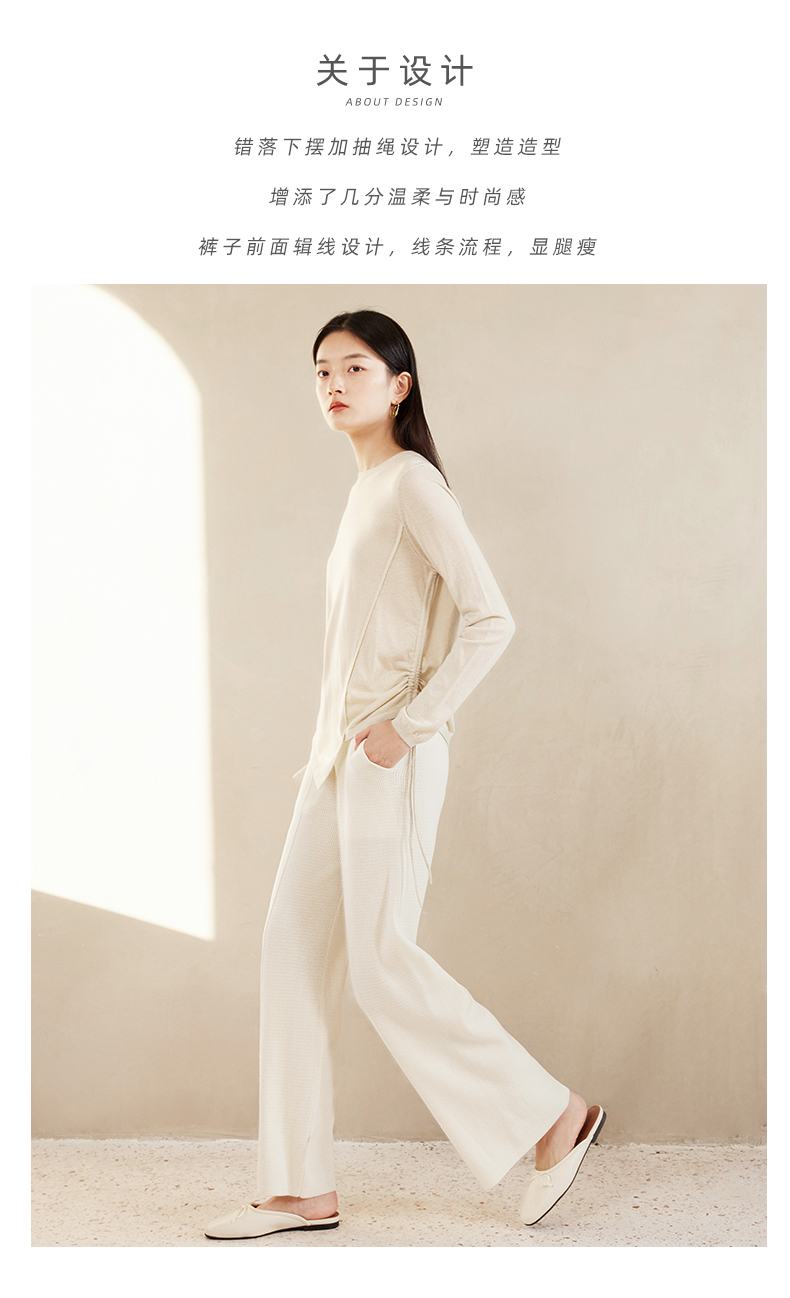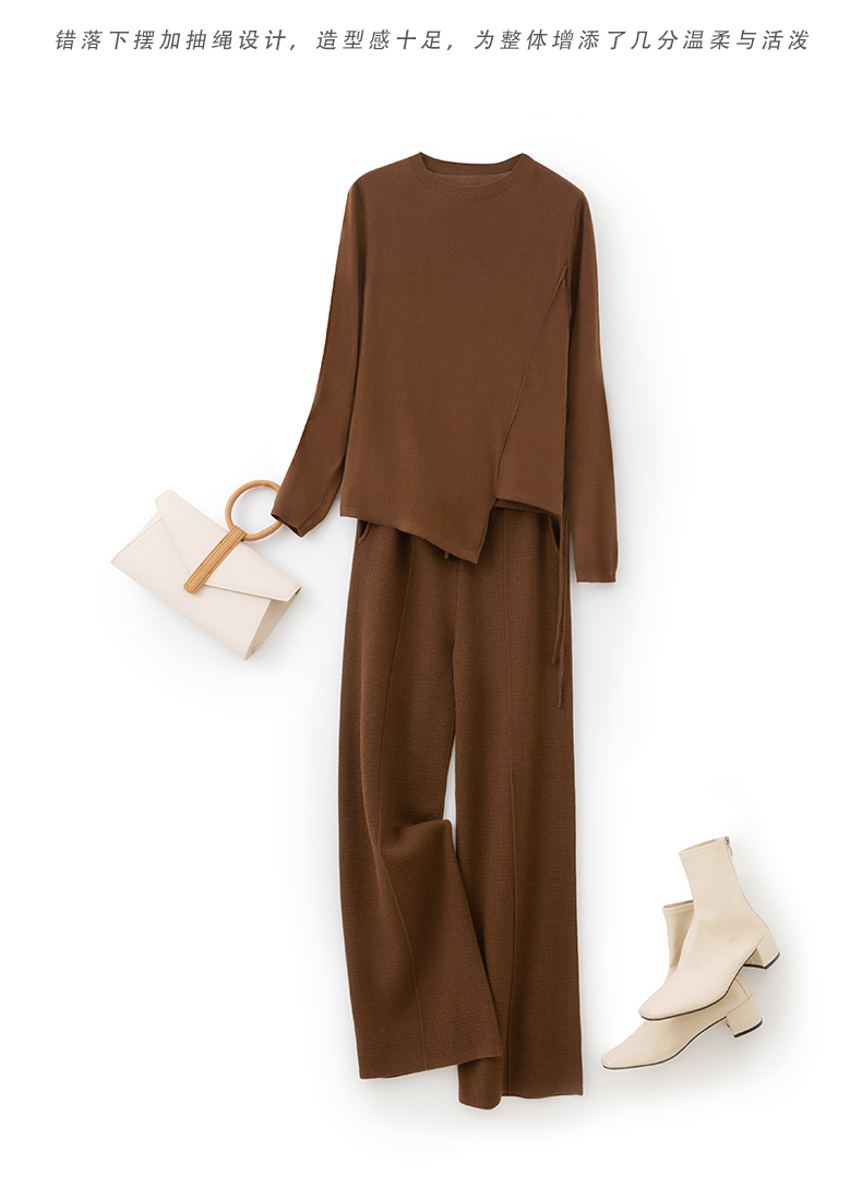 IN AND ON2022秋季新款羊毛针织宽松上衣女高腰显瘦辑线宽腿裤套装