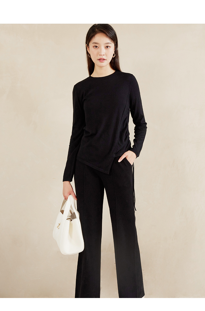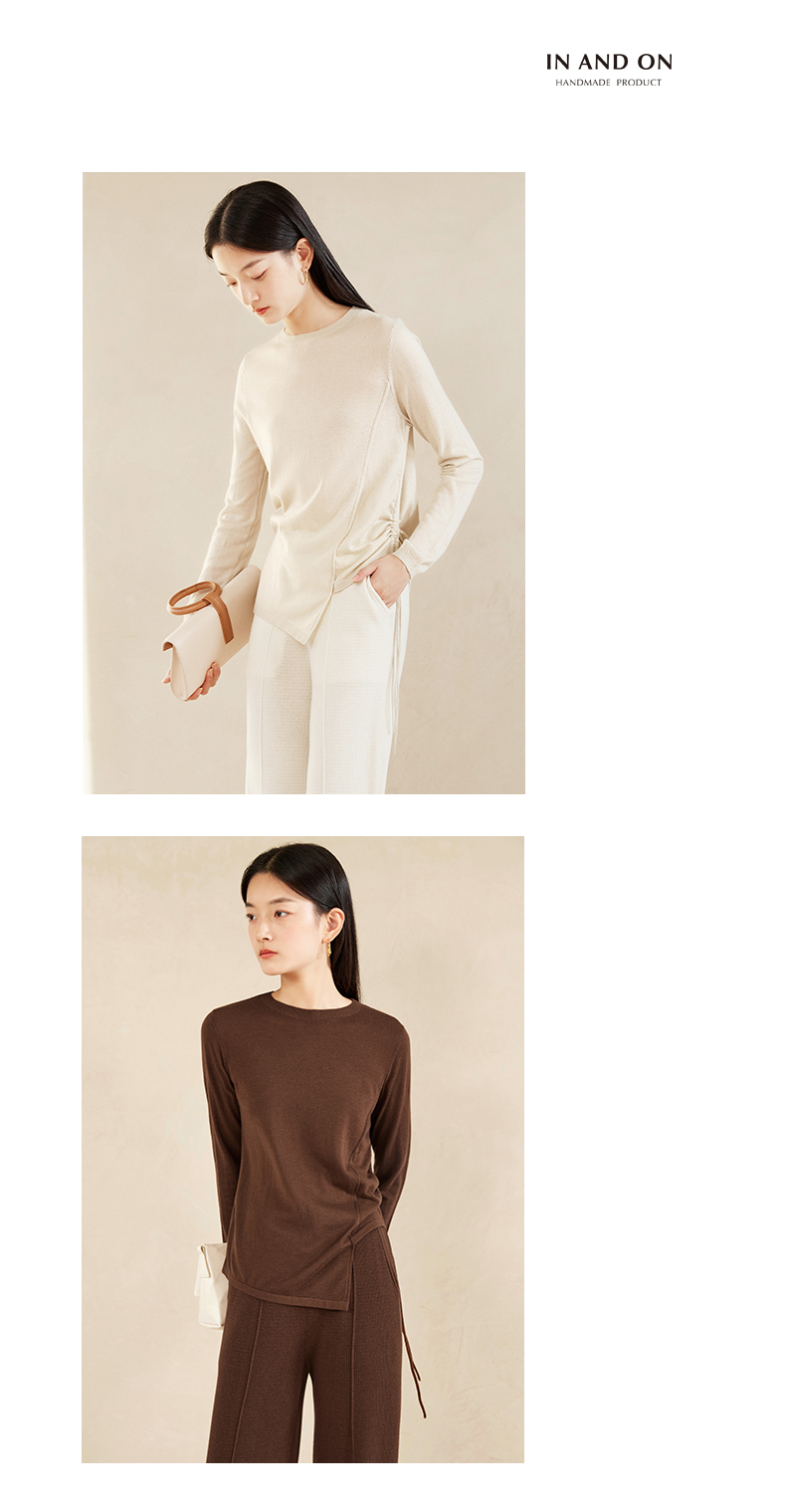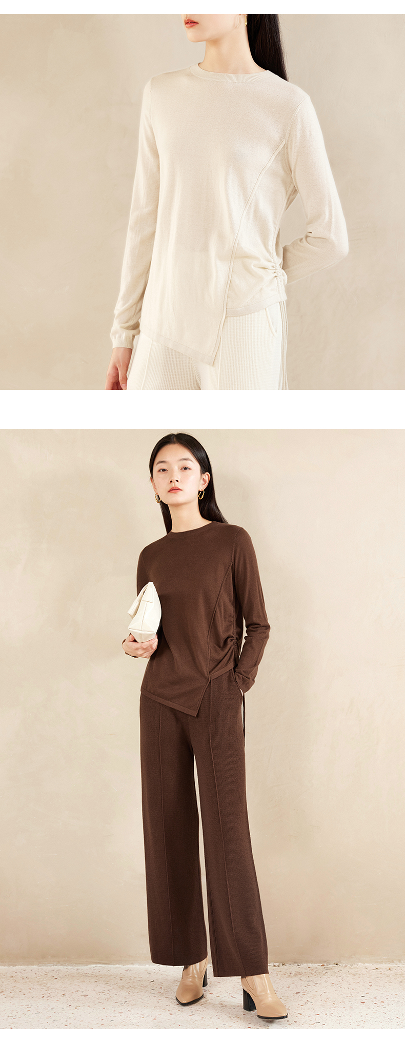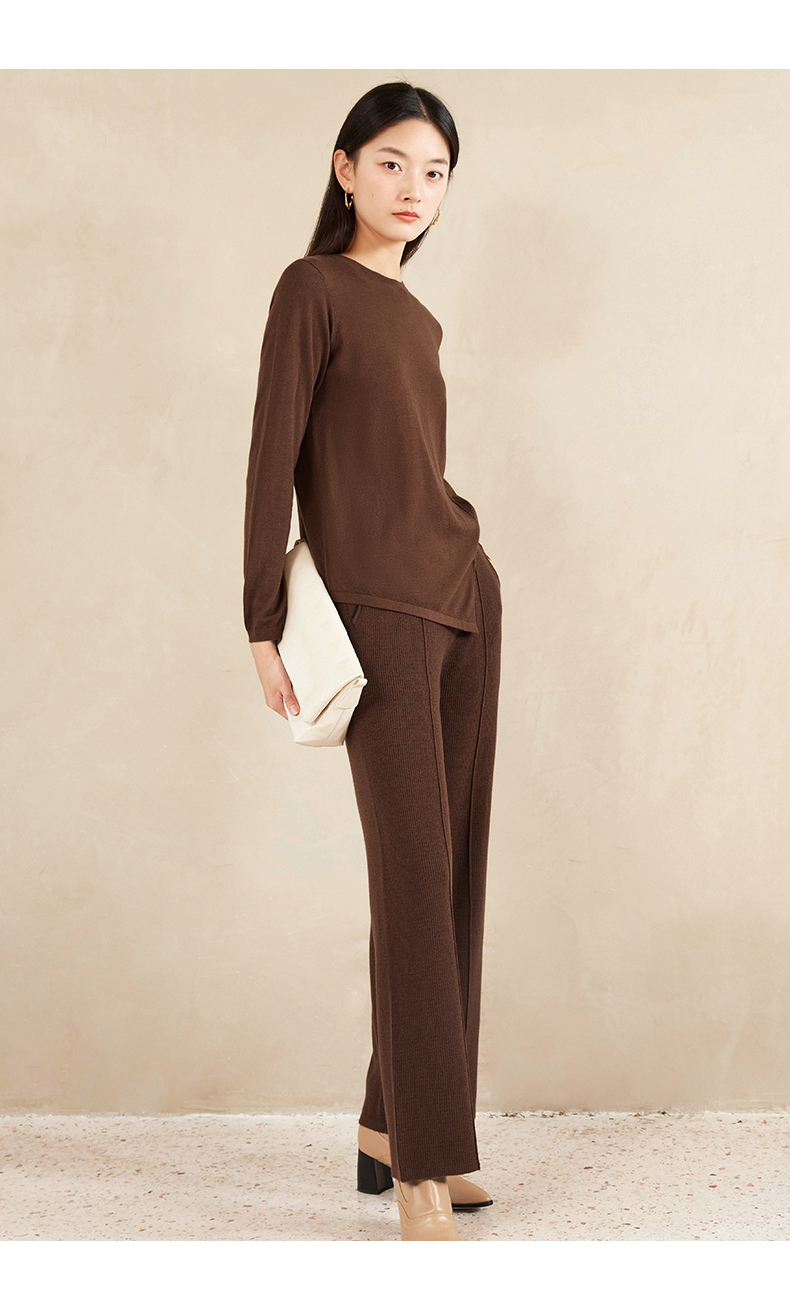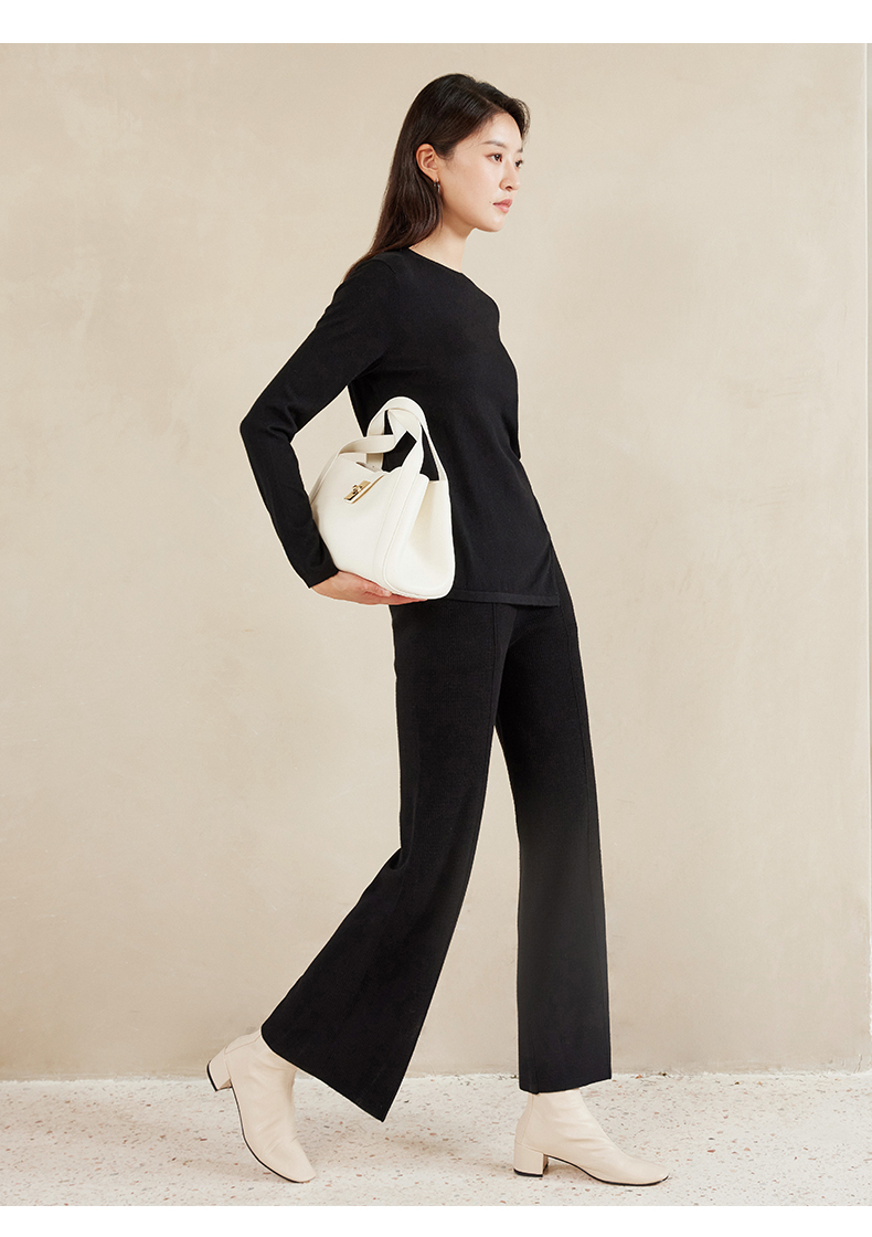 IN AND ON2022秋季新款羊毛针织宽松上衣女高腰显瘦辑线宽腿裤套装