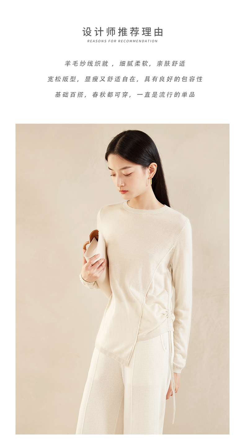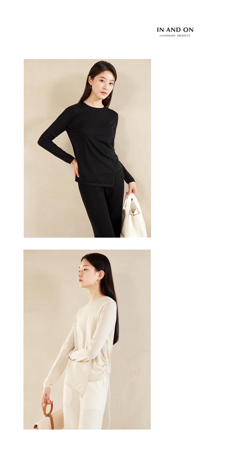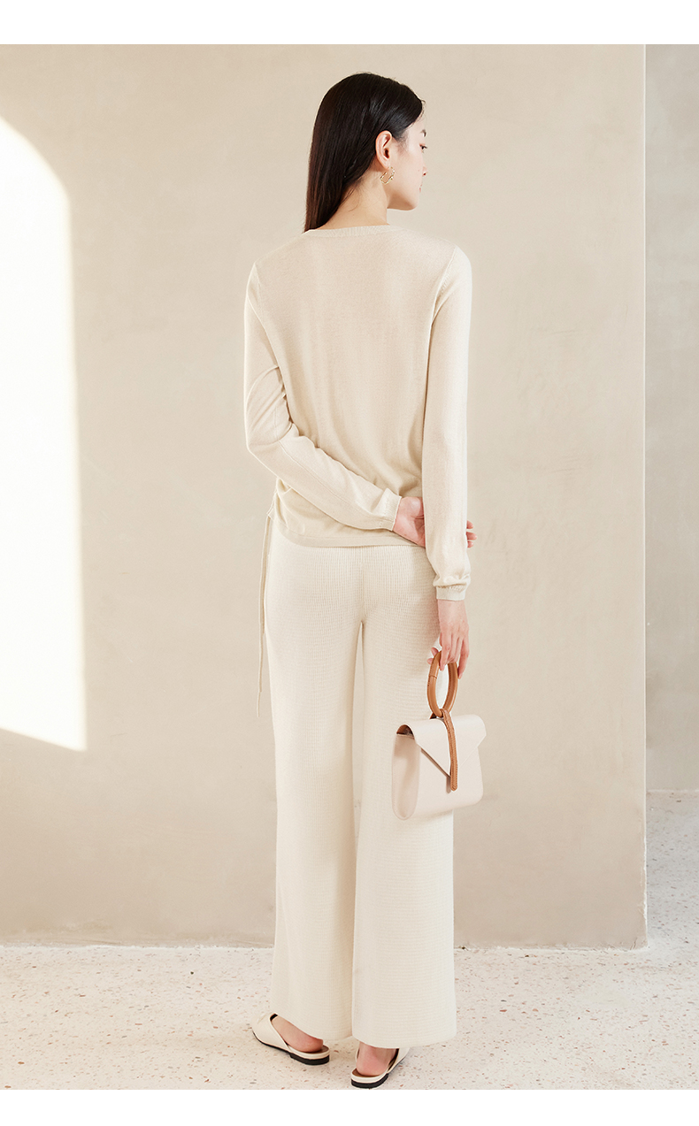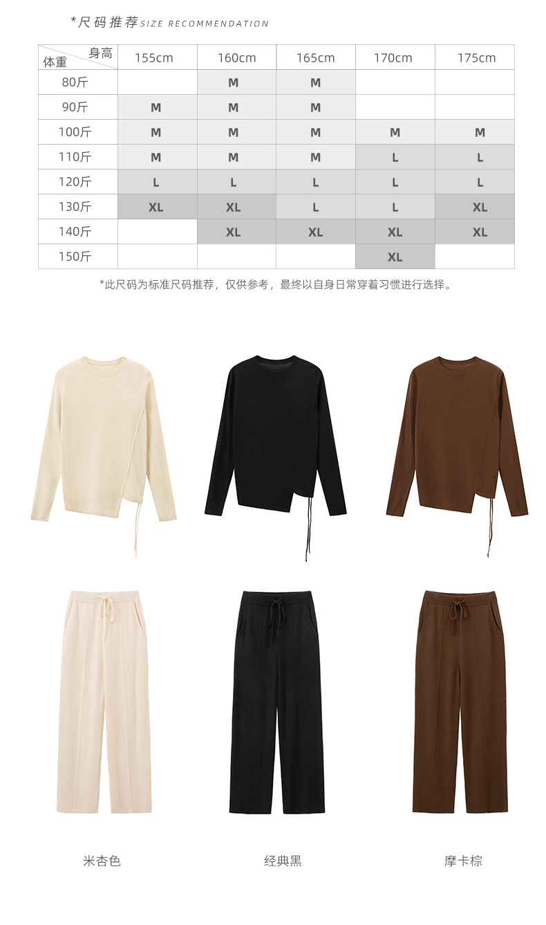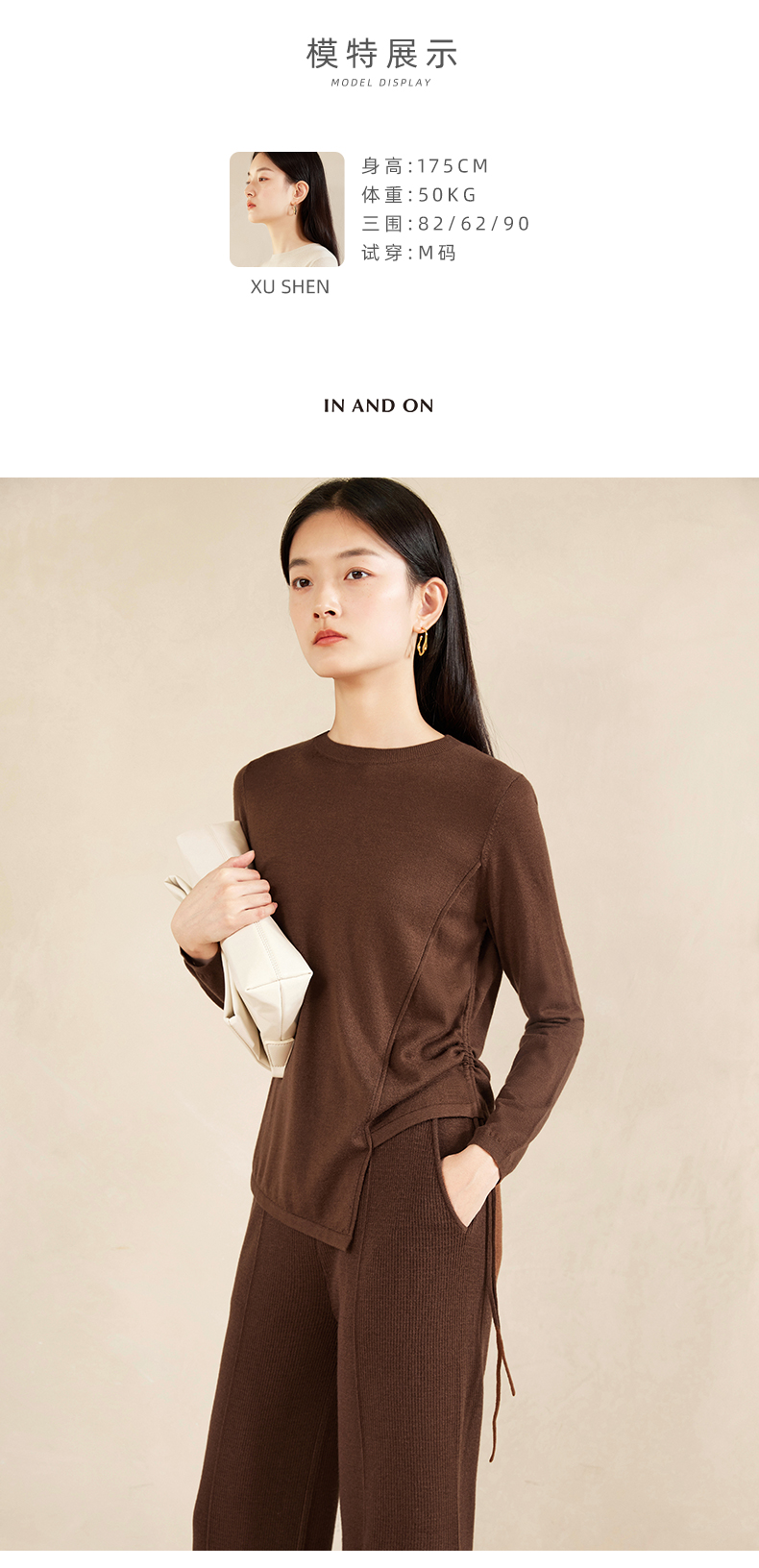 IN AND ON2022秋季新款羊毛针织宽松上衣女高腰显瘦辑线宽腿裤套装