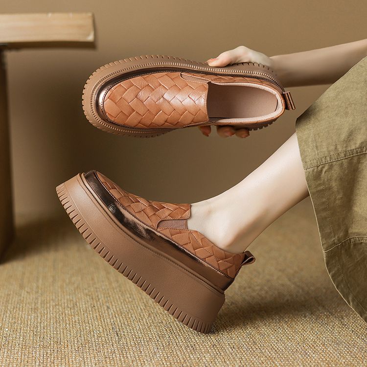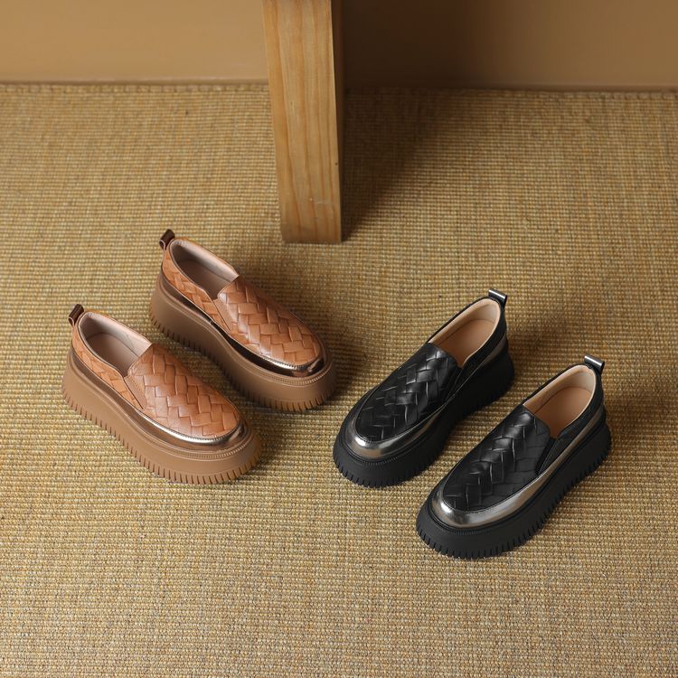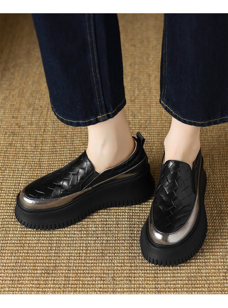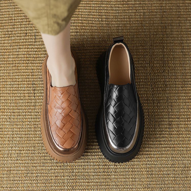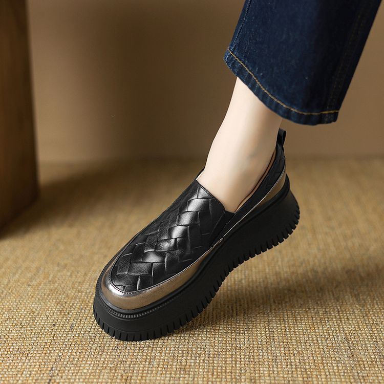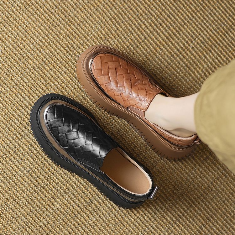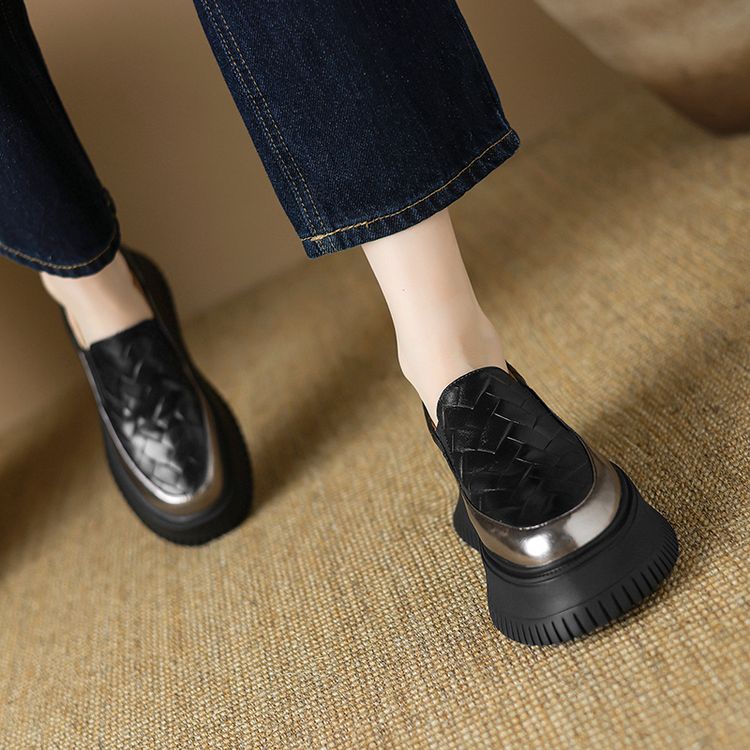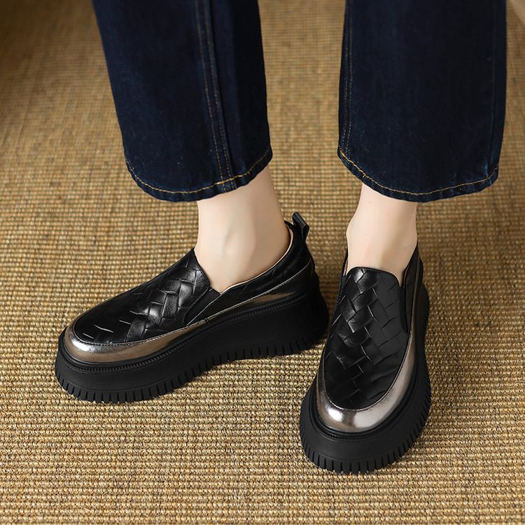 【预售5天】厚底松糕鞋女真皮圆头一脚蹬单鞋秋季新款百搭高跟乐福鞋TYMXY&A1826
