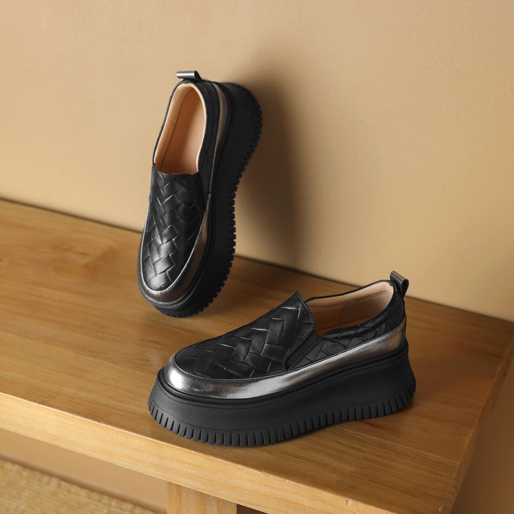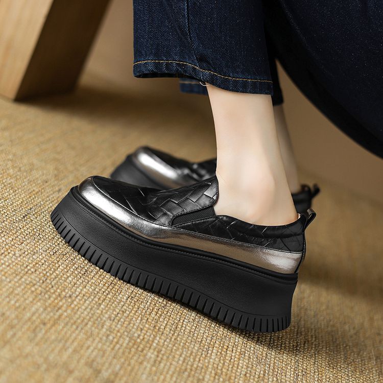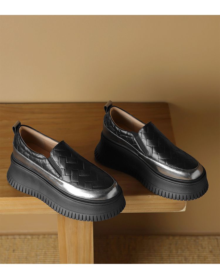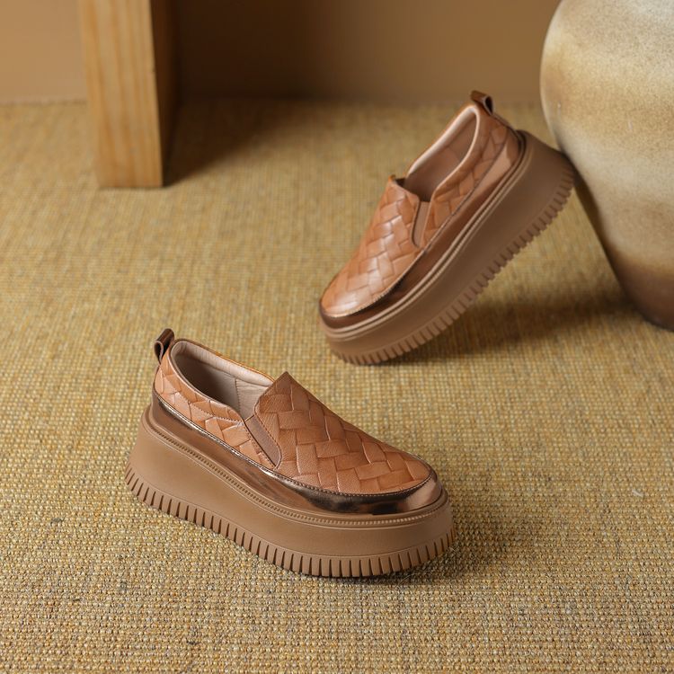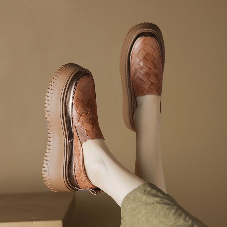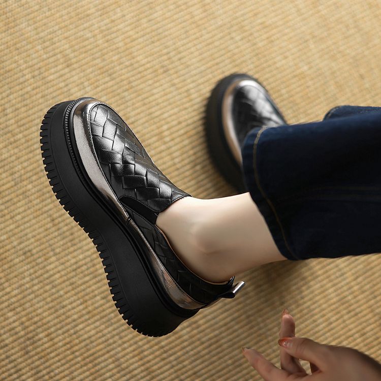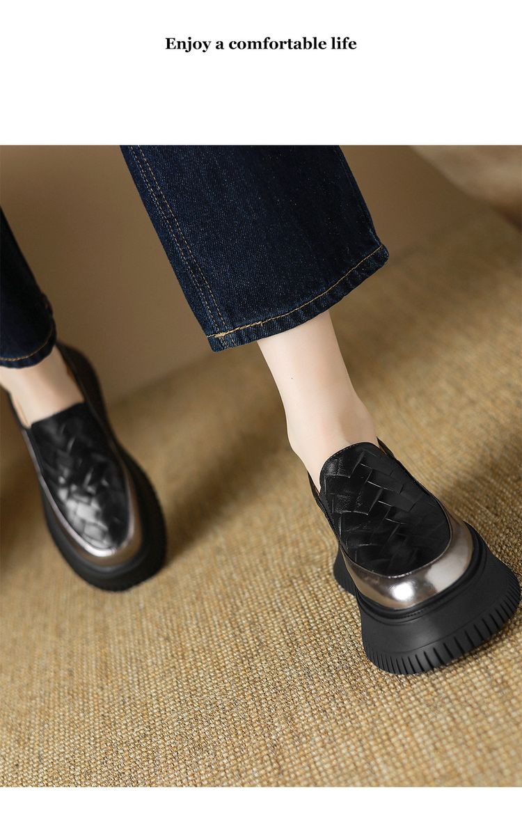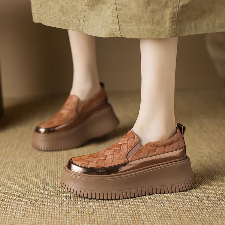 【预售5天】厚底松糕鞋女真皮圆头一脚蹬单鞋秋季新款百搭高跟乐福鞋TYMXY&A1826