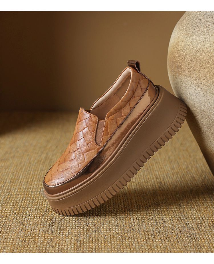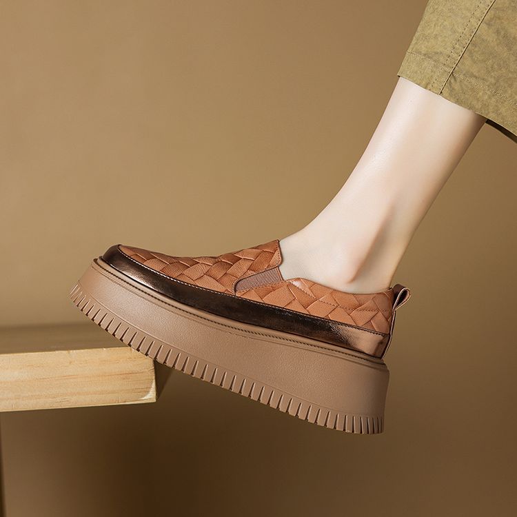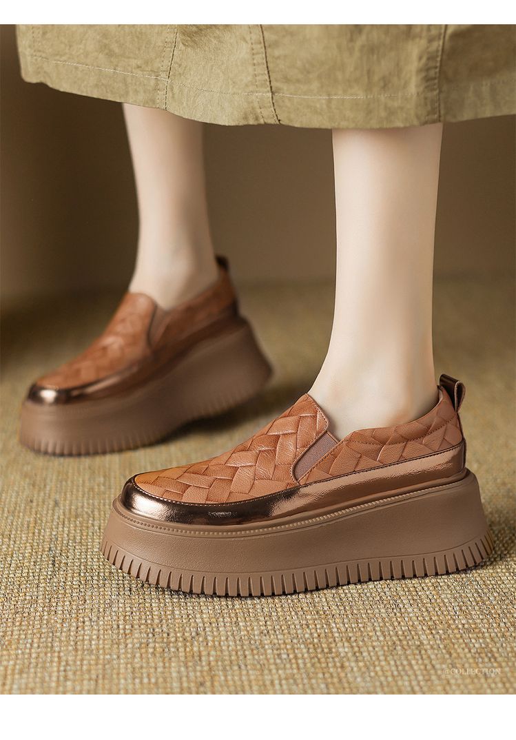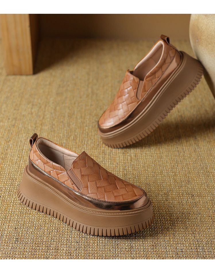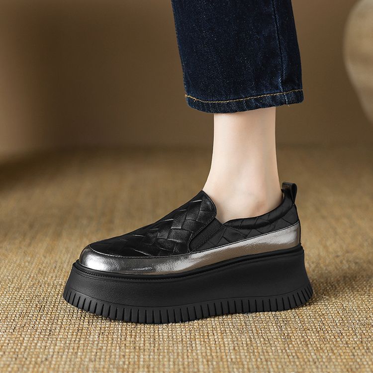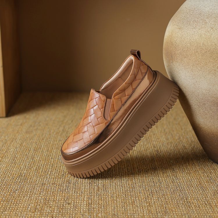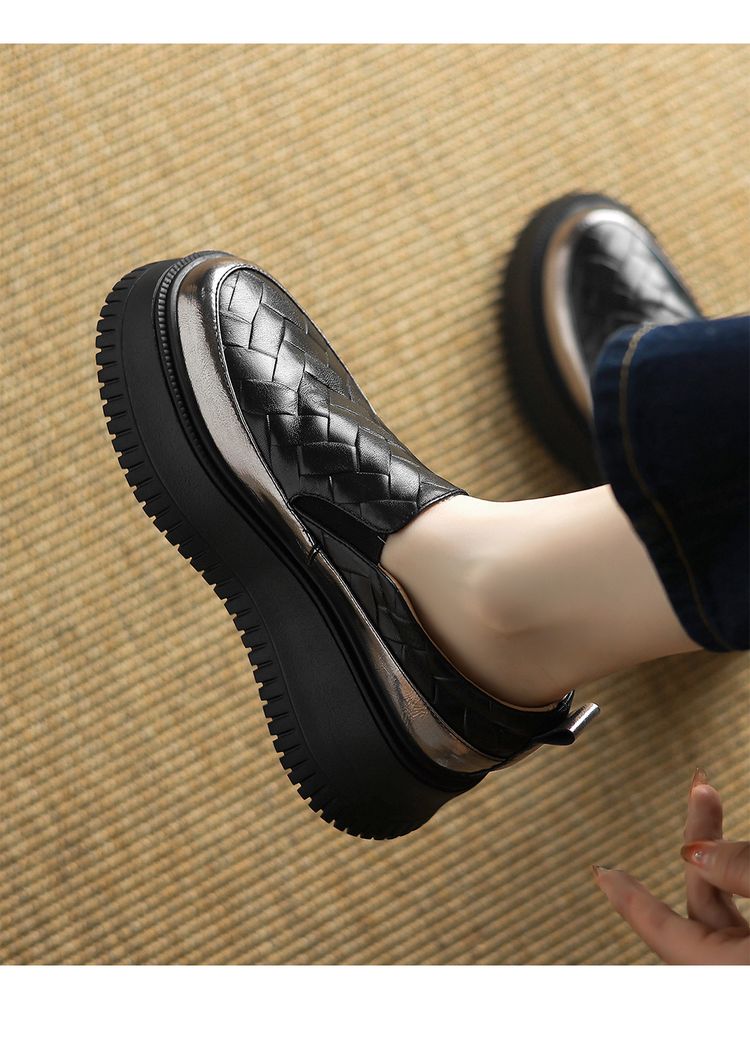 【预售5天】厚底松糕鞋女真皮圆头一脚蹬单鞋秋季新款百搭高跟乐福鞋TYMXY&A1826