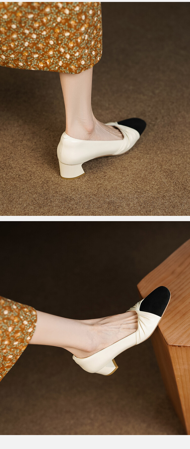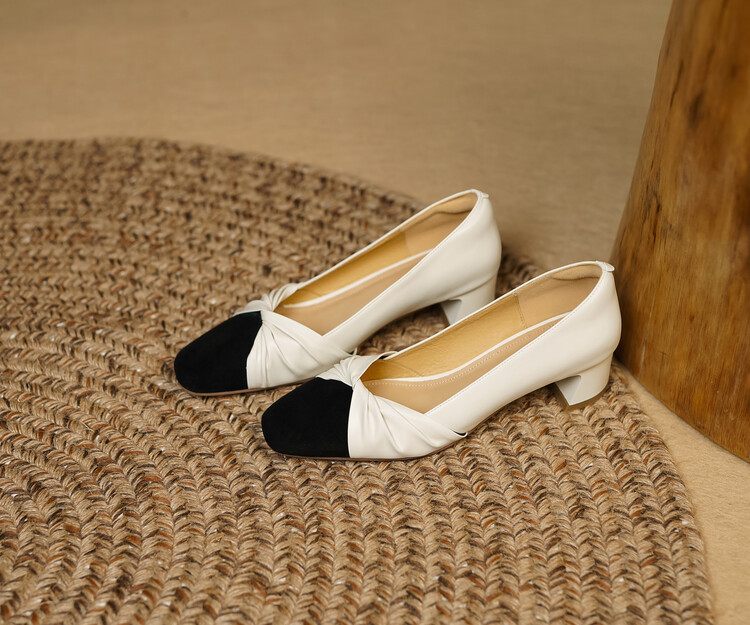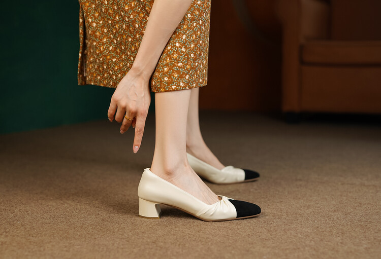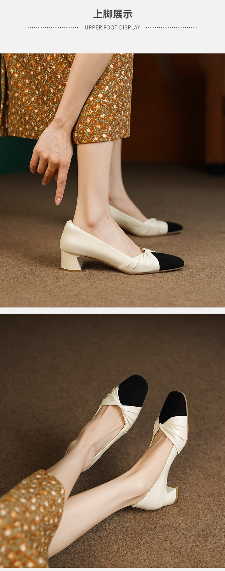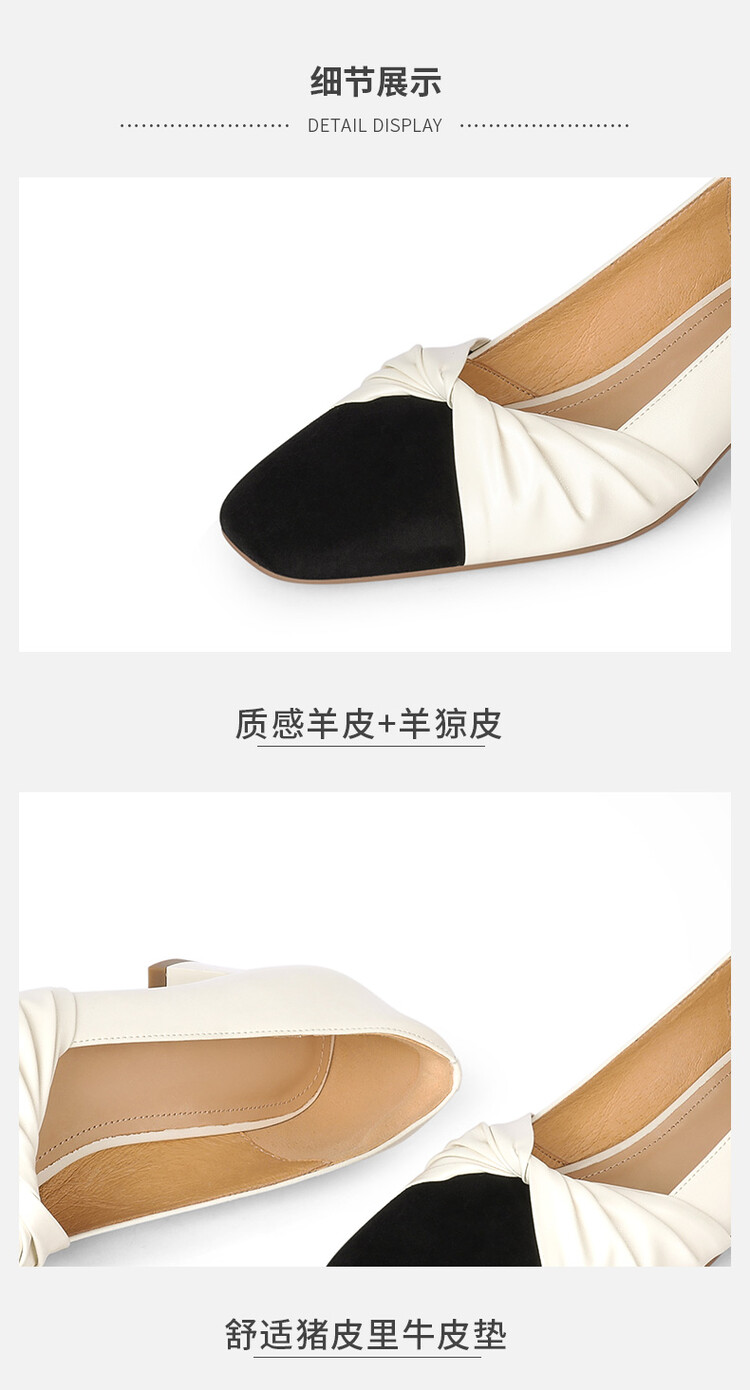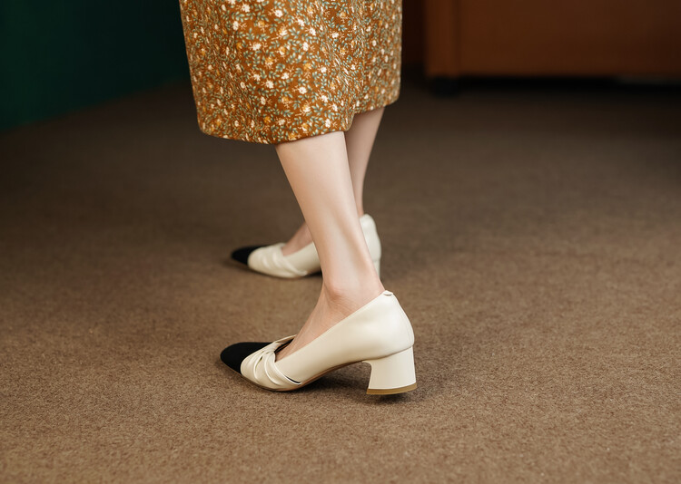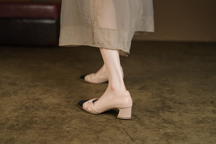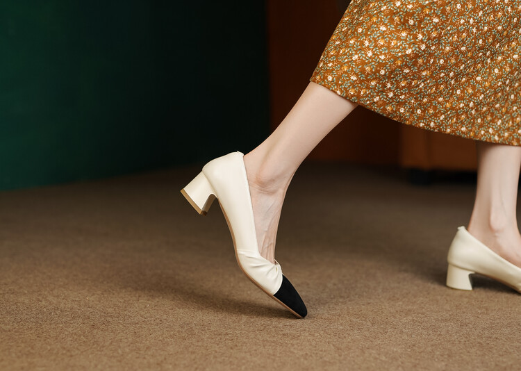 粗跟圆头低跟方头,拼色浅口单鞋MCC-C8527