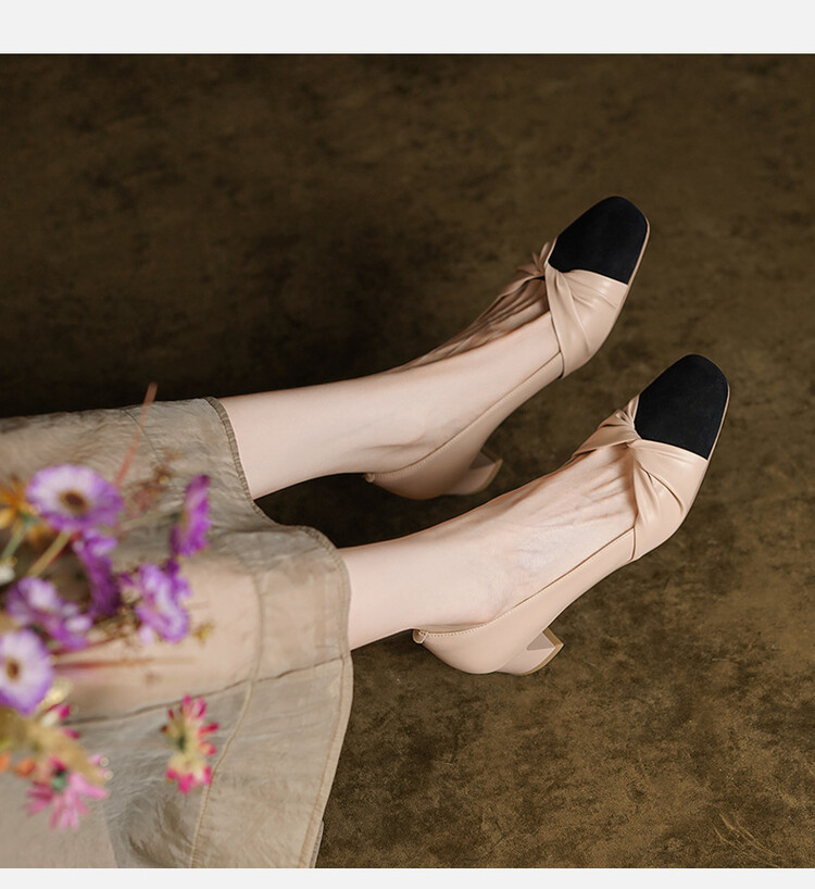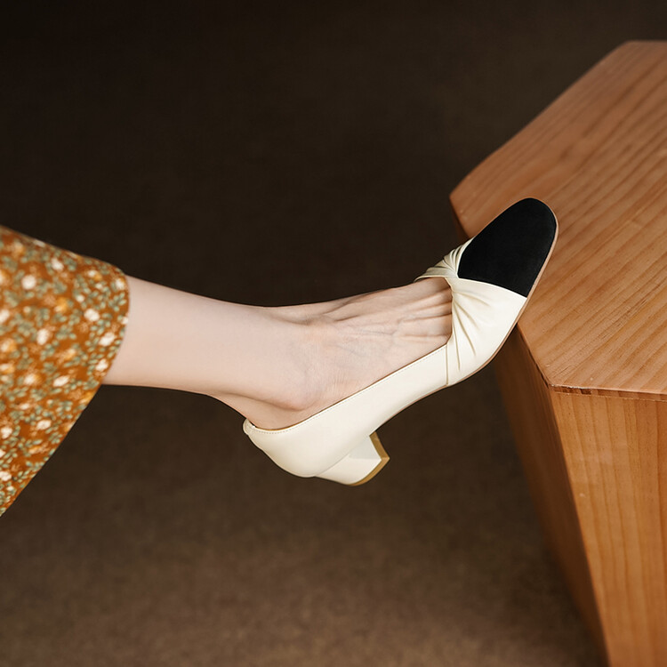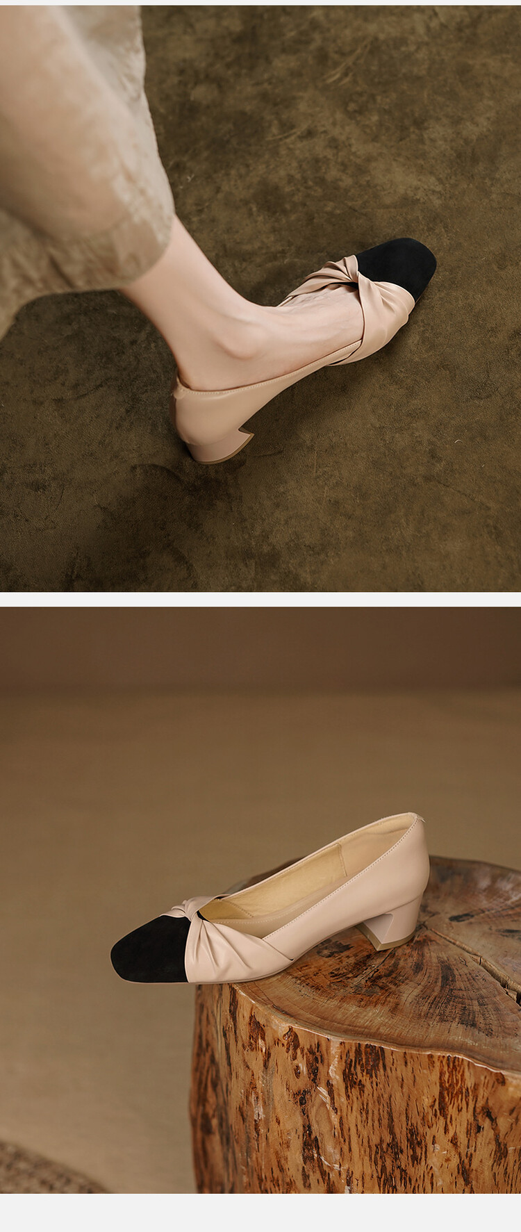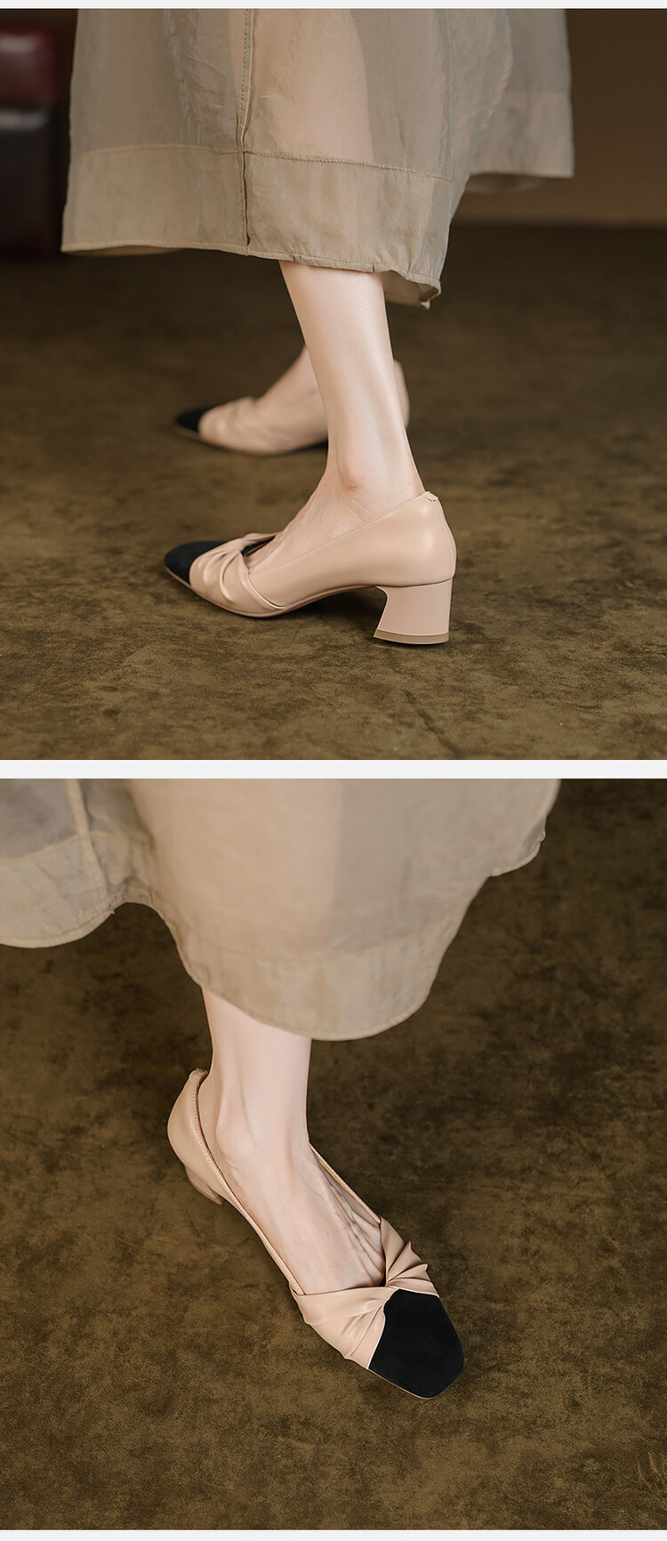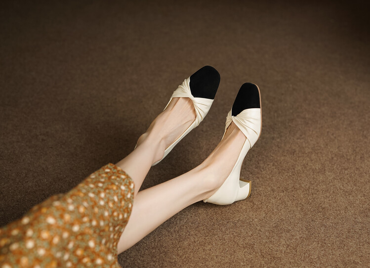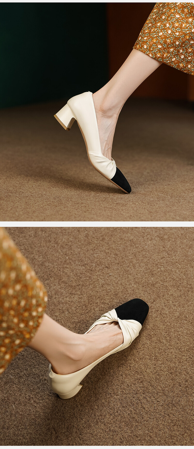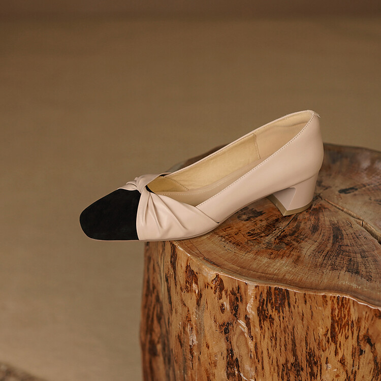 粗跟圆头低跟方头,拼色浅口单鞋MCC-C8527