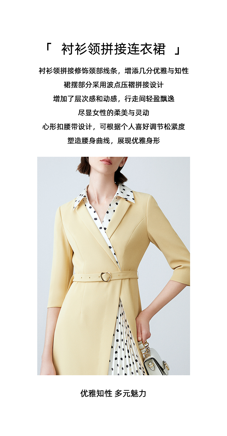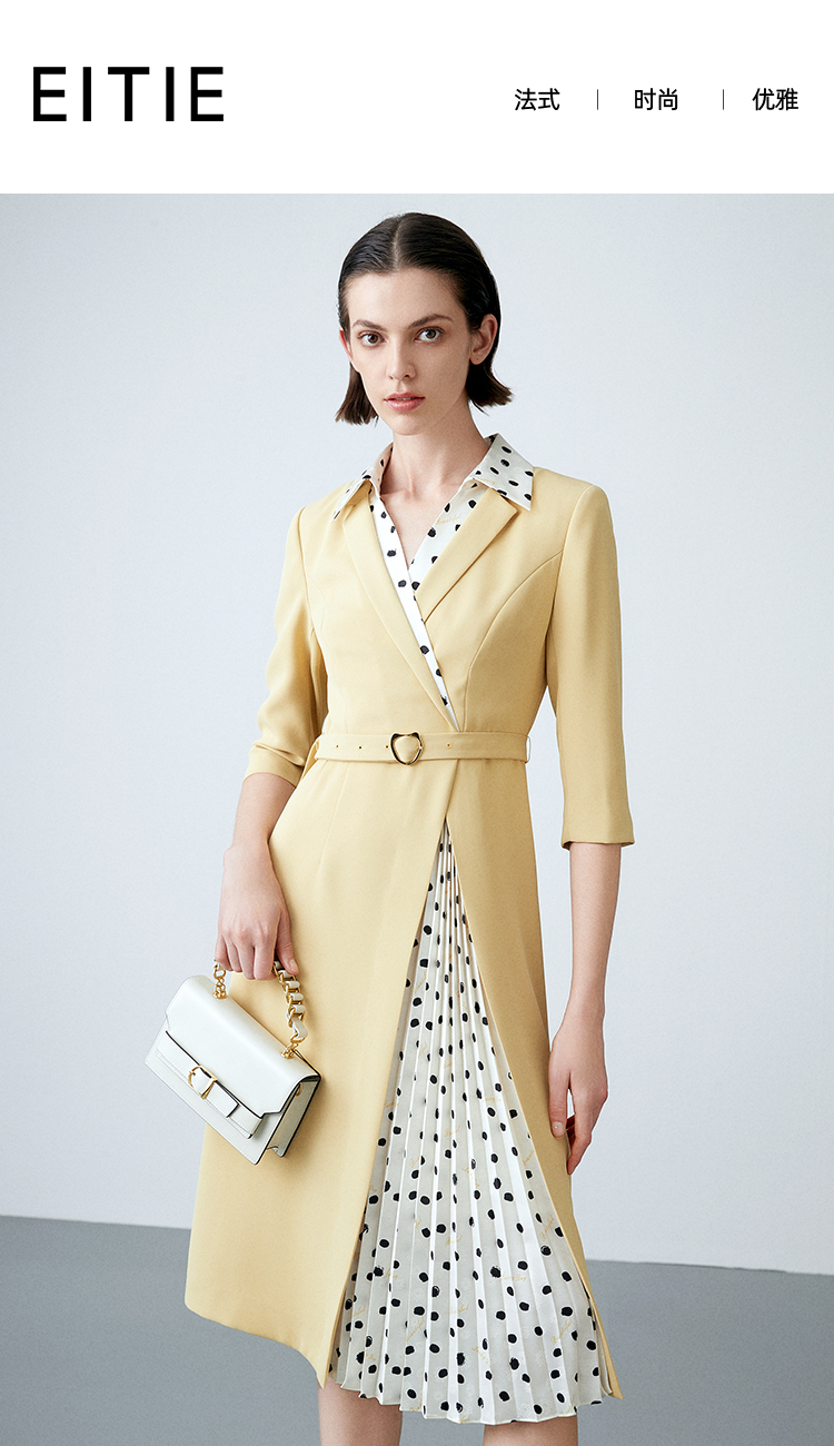 EITIE爱特爱春季新款气质时尚收腰拼接连衣裙7707412