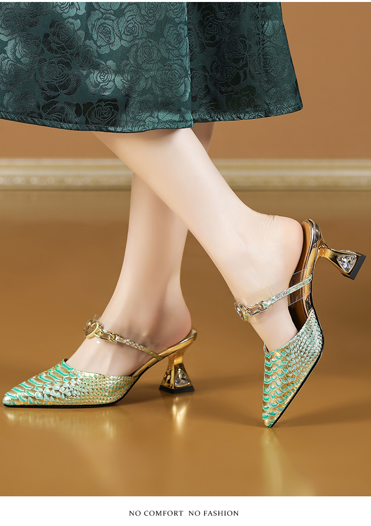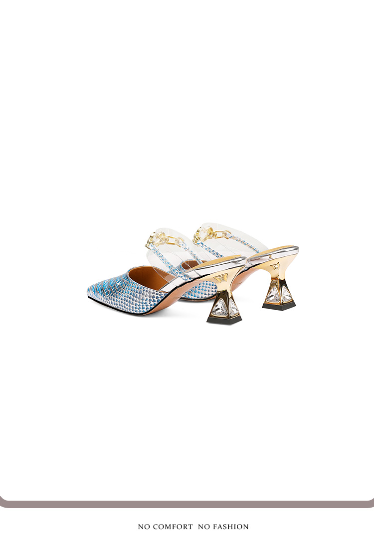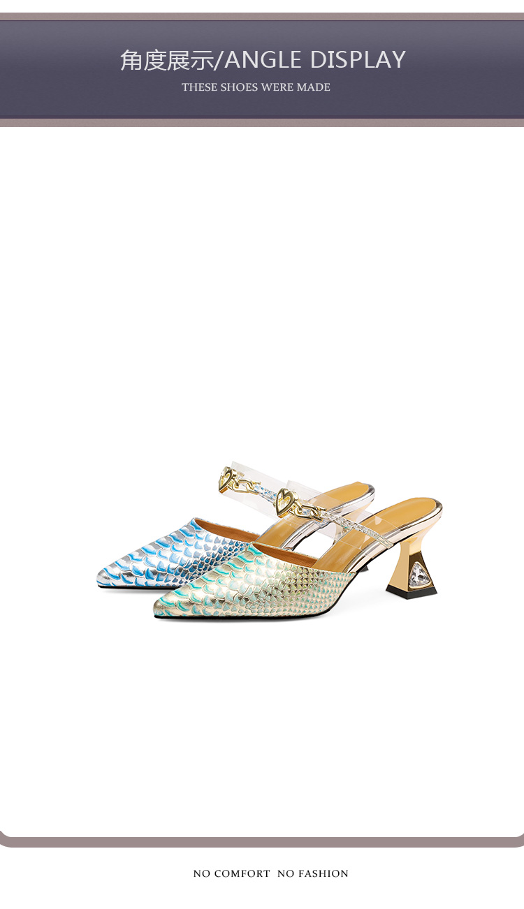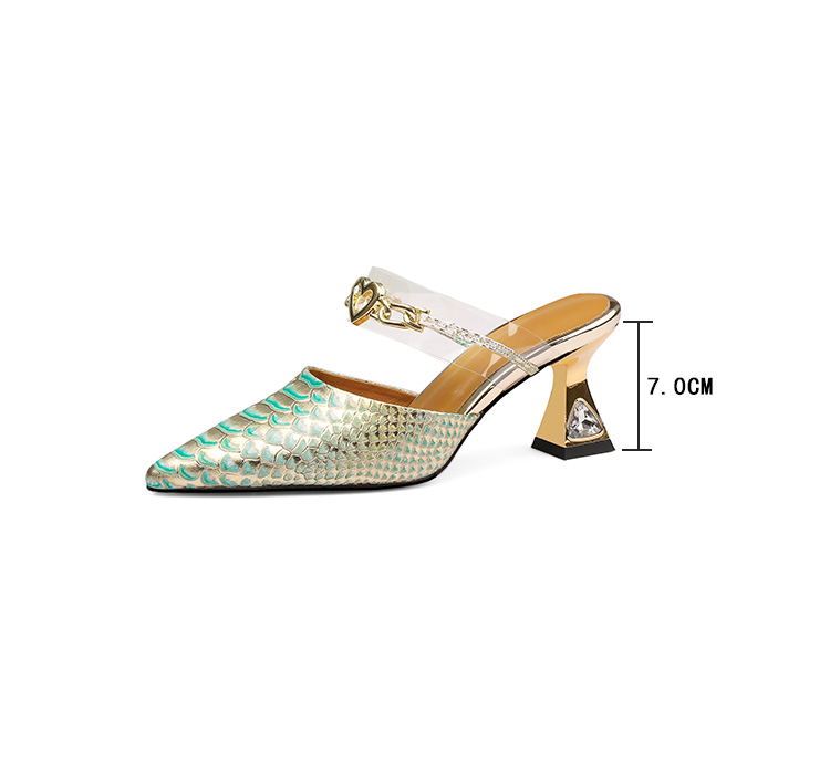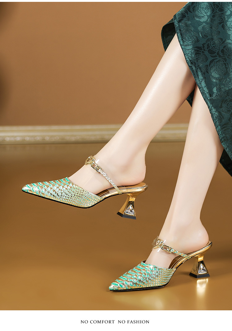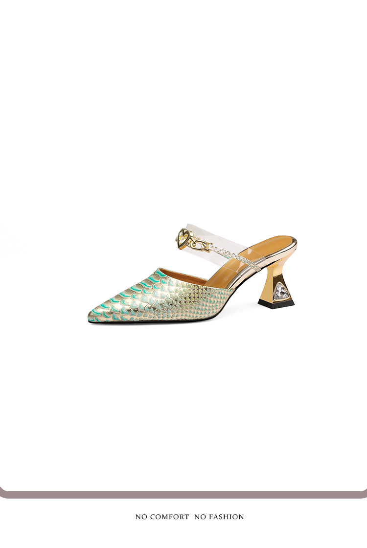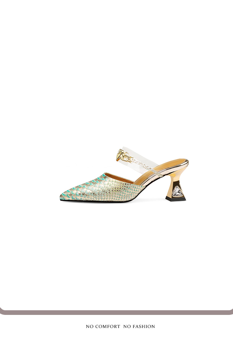 【预售5天】个性鱼皮纹,真皮高跟包头半拖鞋PLGZ&B1951