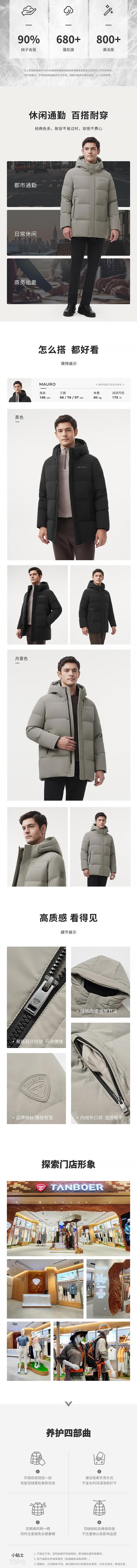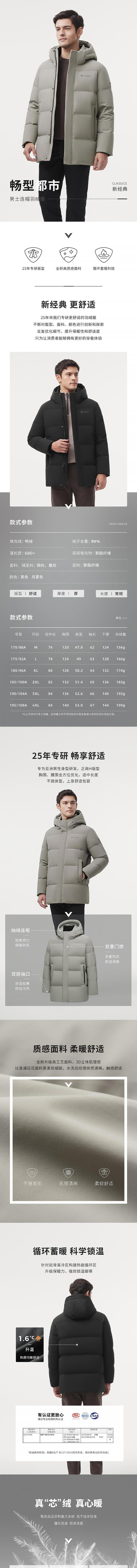 坦博尔 羽绒服男连帽厚款 TAF510561A
