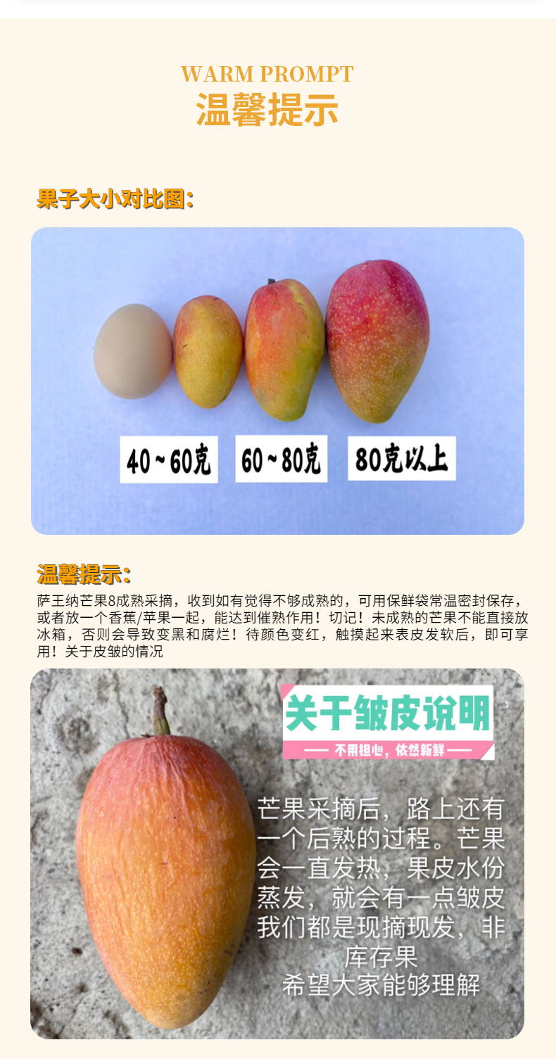 发货是8分熟,需要催熟后食用的(收到后如果有软的,先挑软的吃,没有变软的需要催熟,因北方的温度对比南方低一些,催熟一定放在温度高的地方。