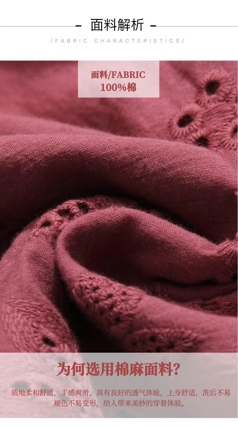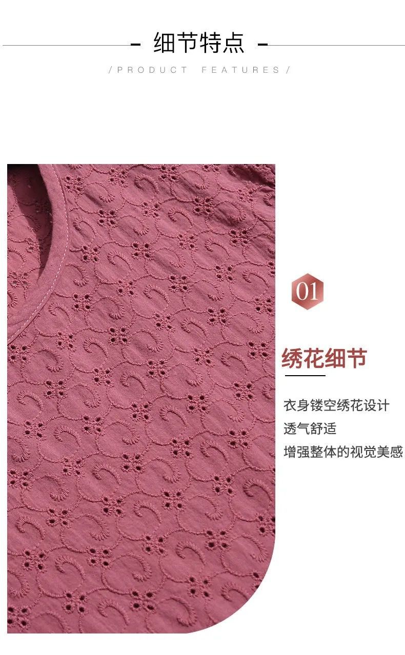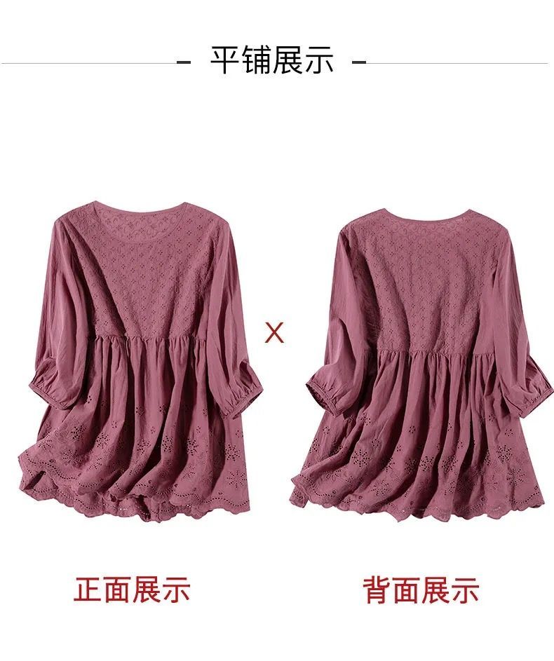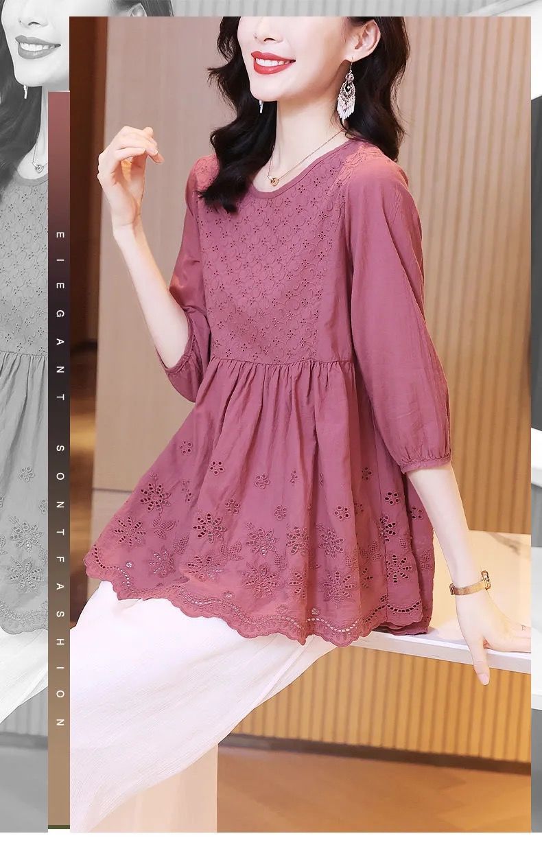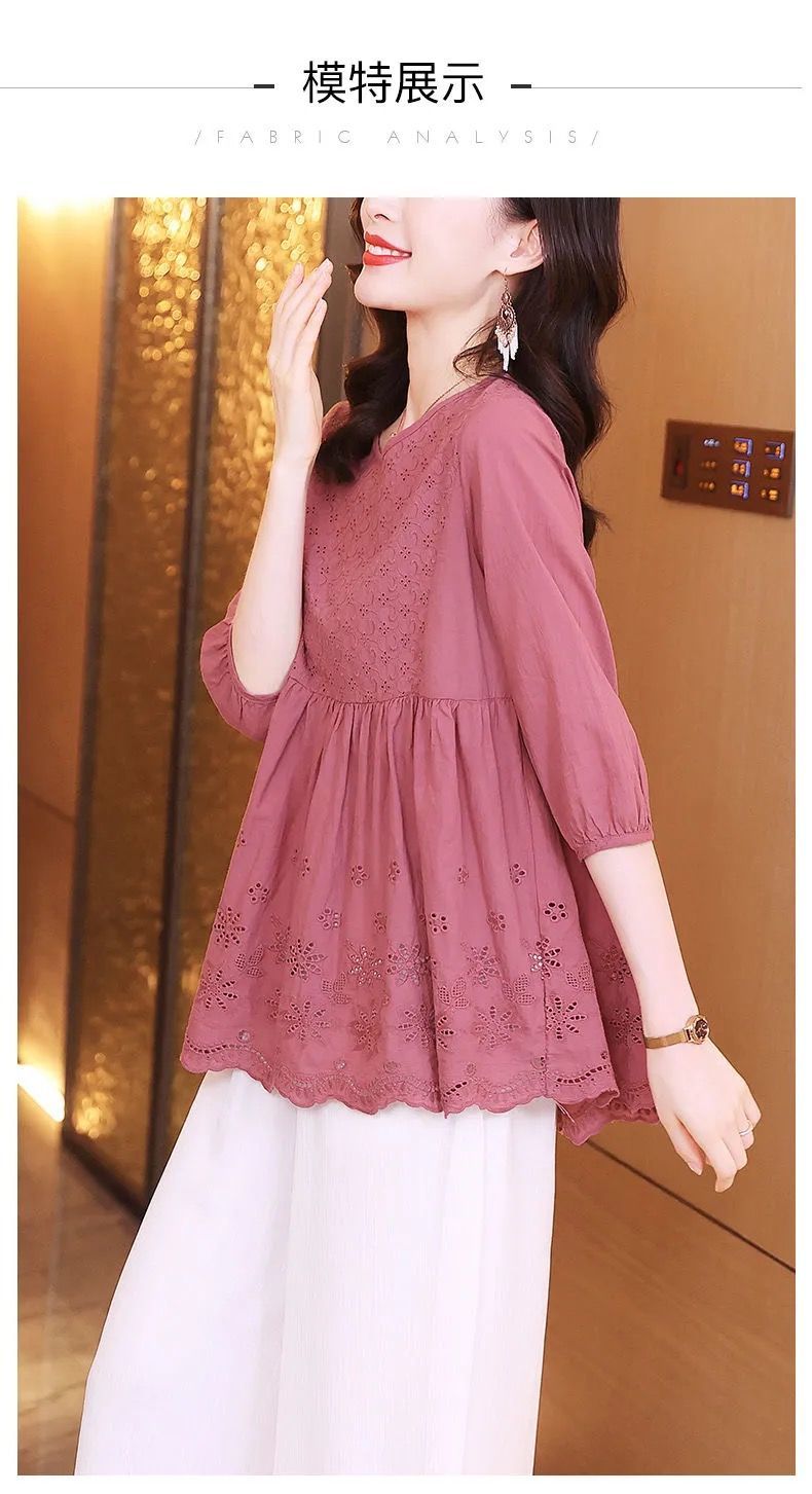 C-5958 棉麻刺绣短袖t恤宽松纯棉遮肚子上衣