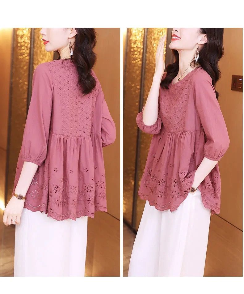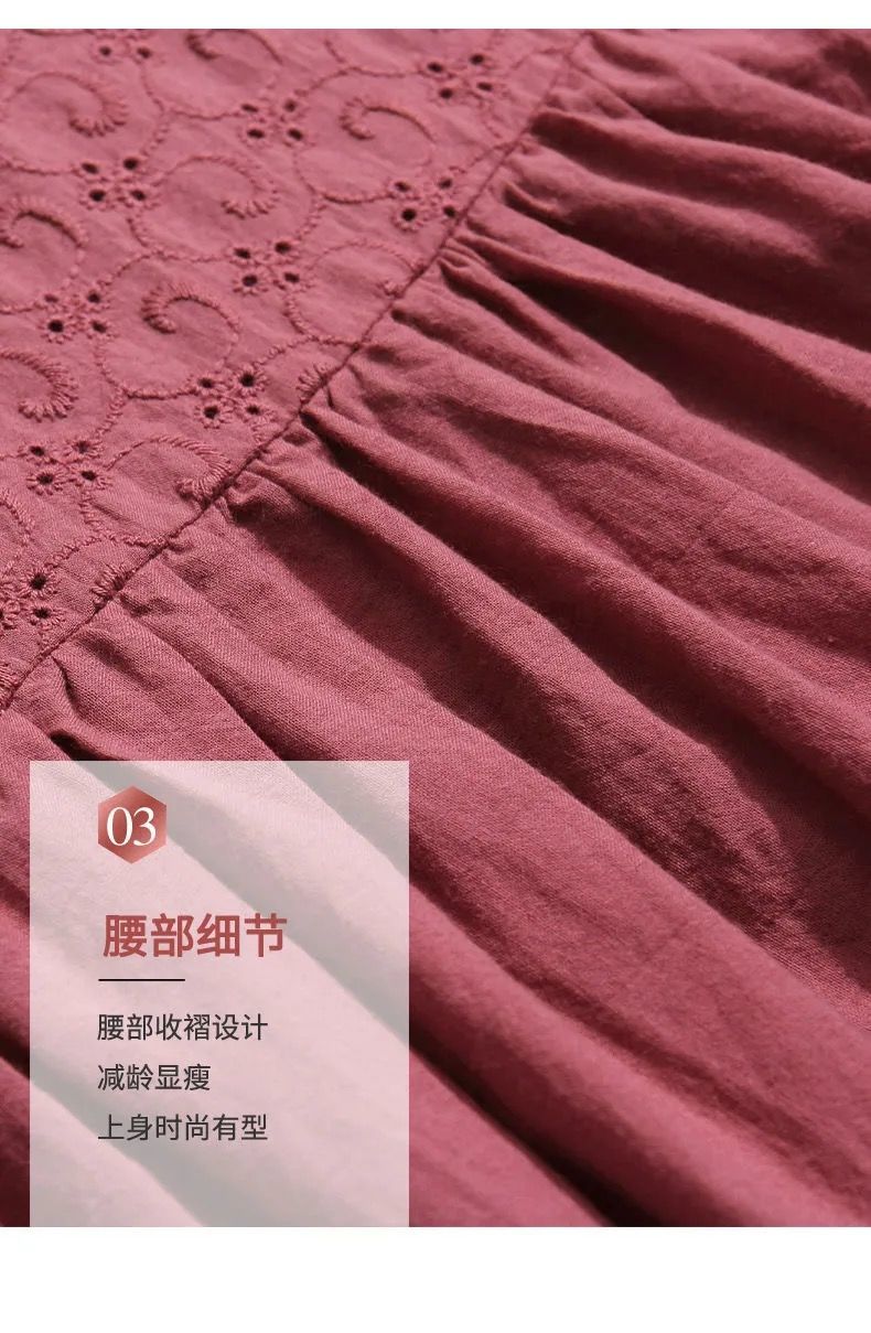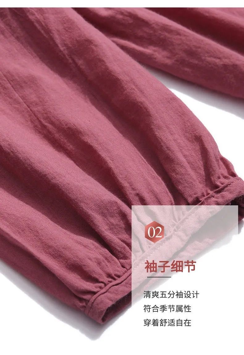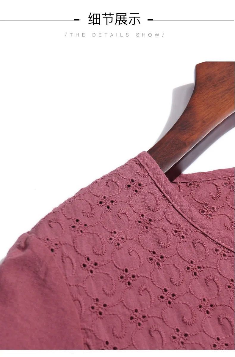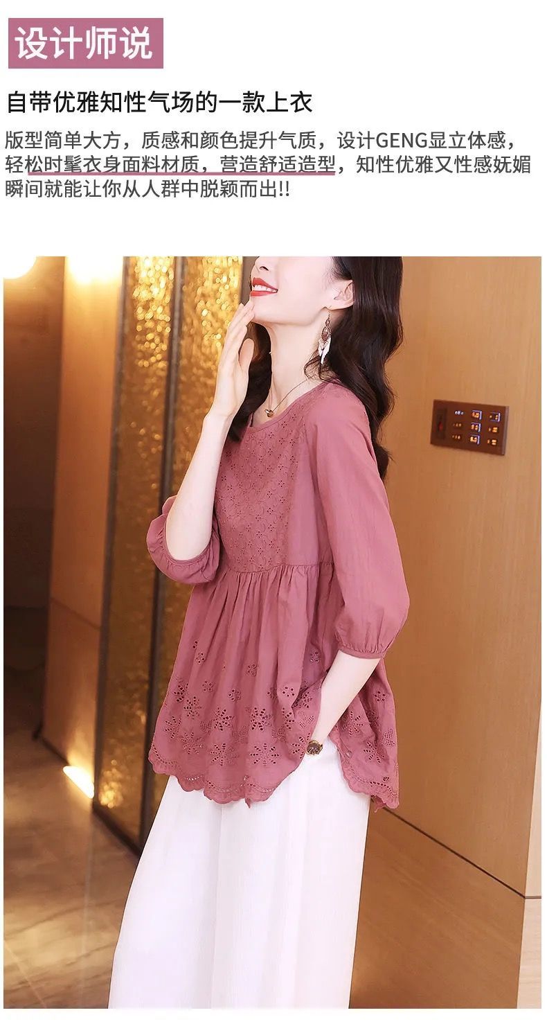 C-5958 棉麻刺绣短袖t恤宽松纯棉遮肚子上衣