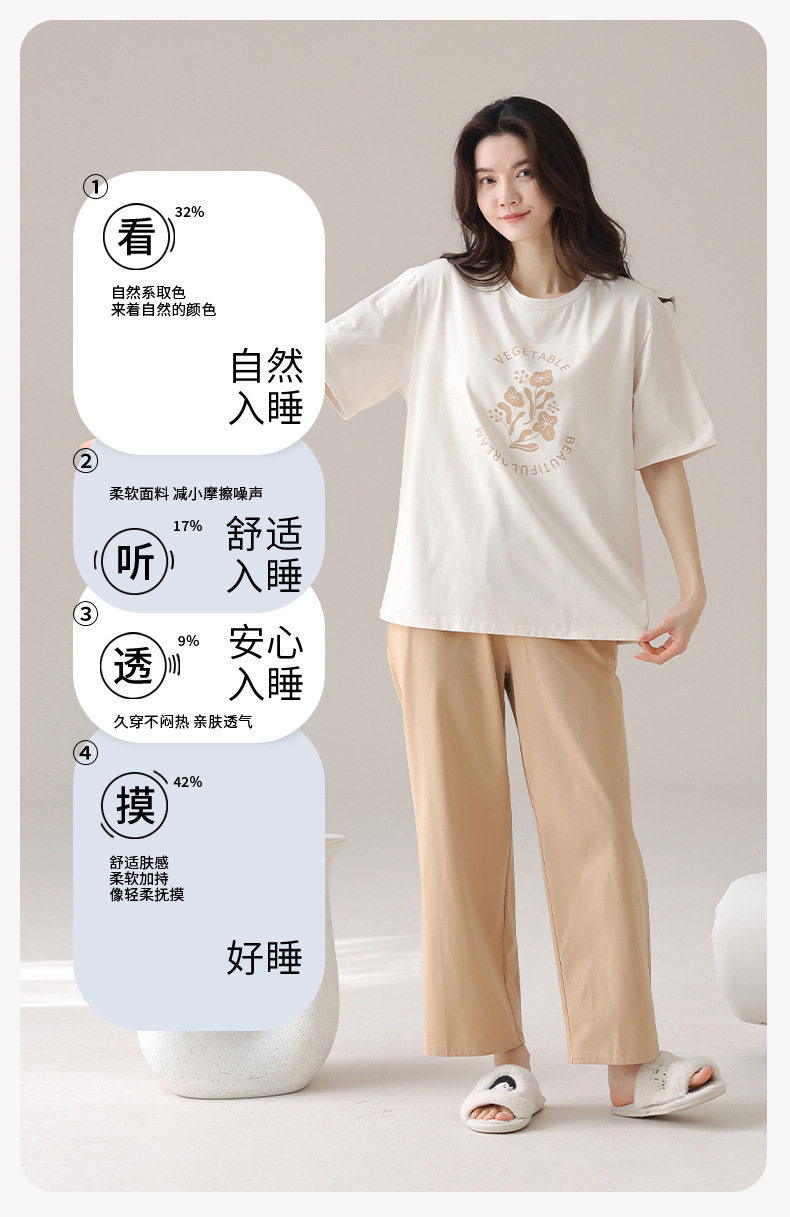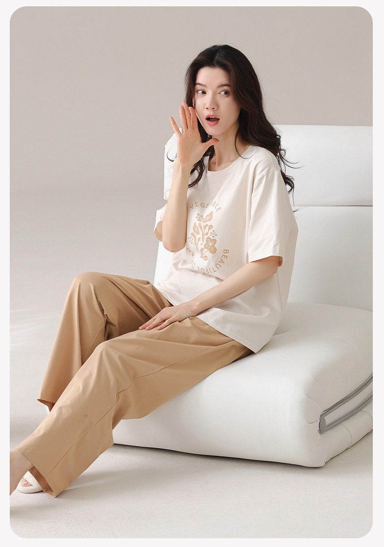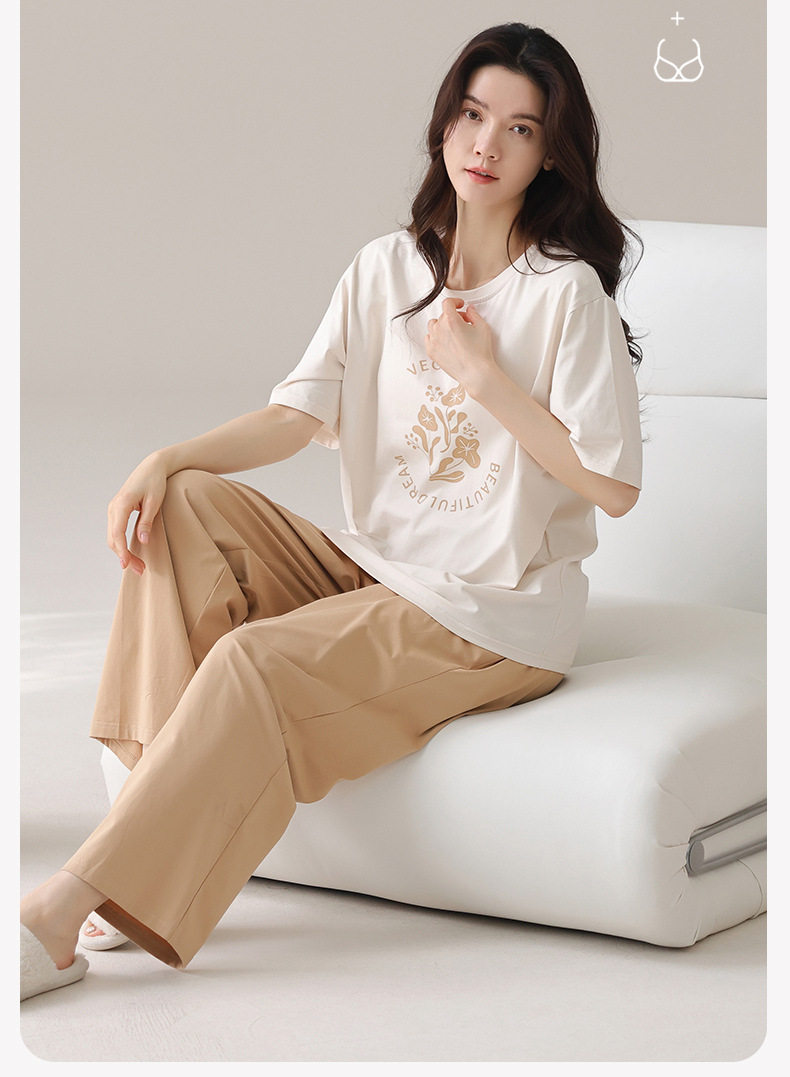 莫代尔睡衣女短袖长裤带胸垫套装夏季薄款轻运动风舒适凉爽家居服 JL-LGM6025/LGM6026