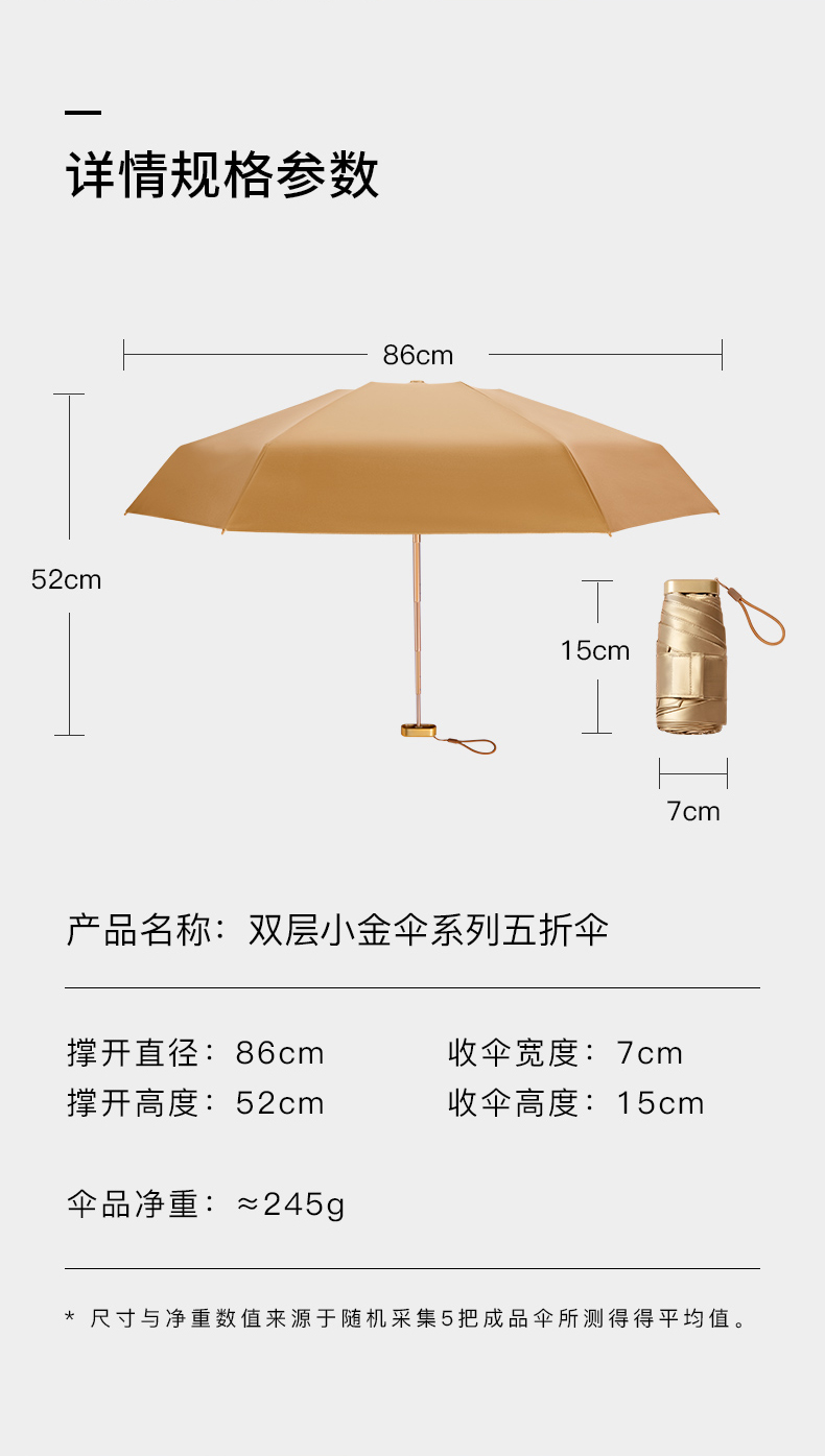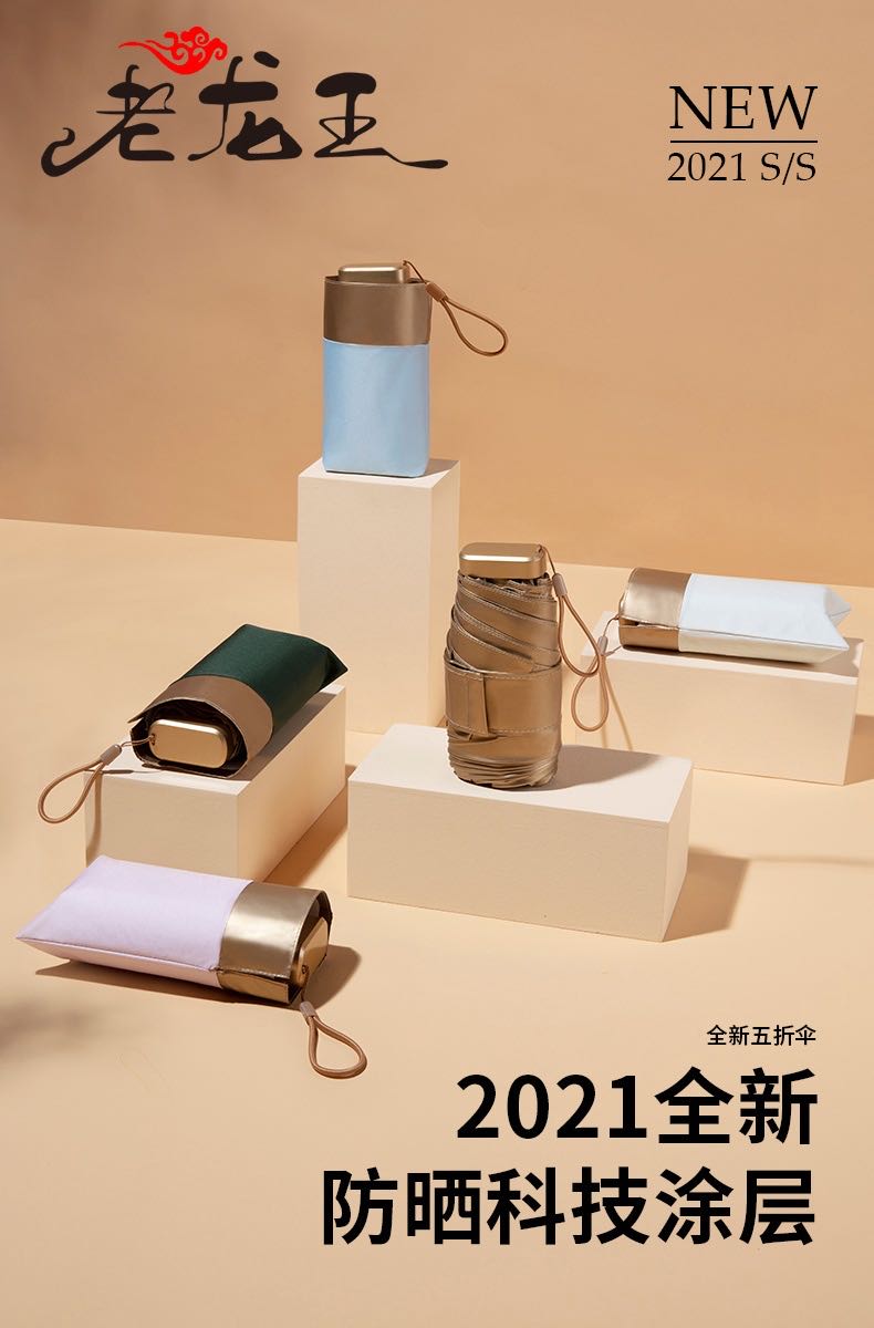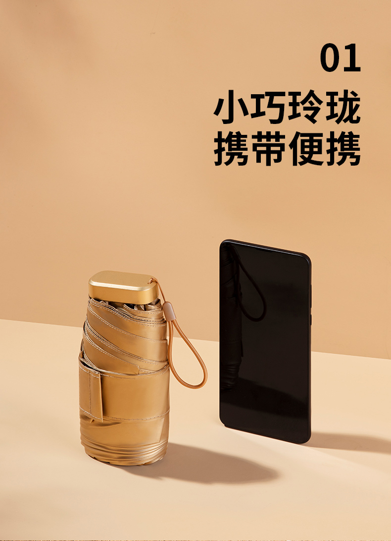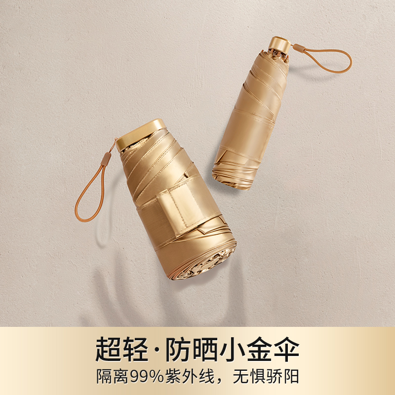 【人手必备】2021年全新防晒科技涂层金胶金色伞骨超柔遮光五折小金伞晴雨两用一甩即干便携防晒
