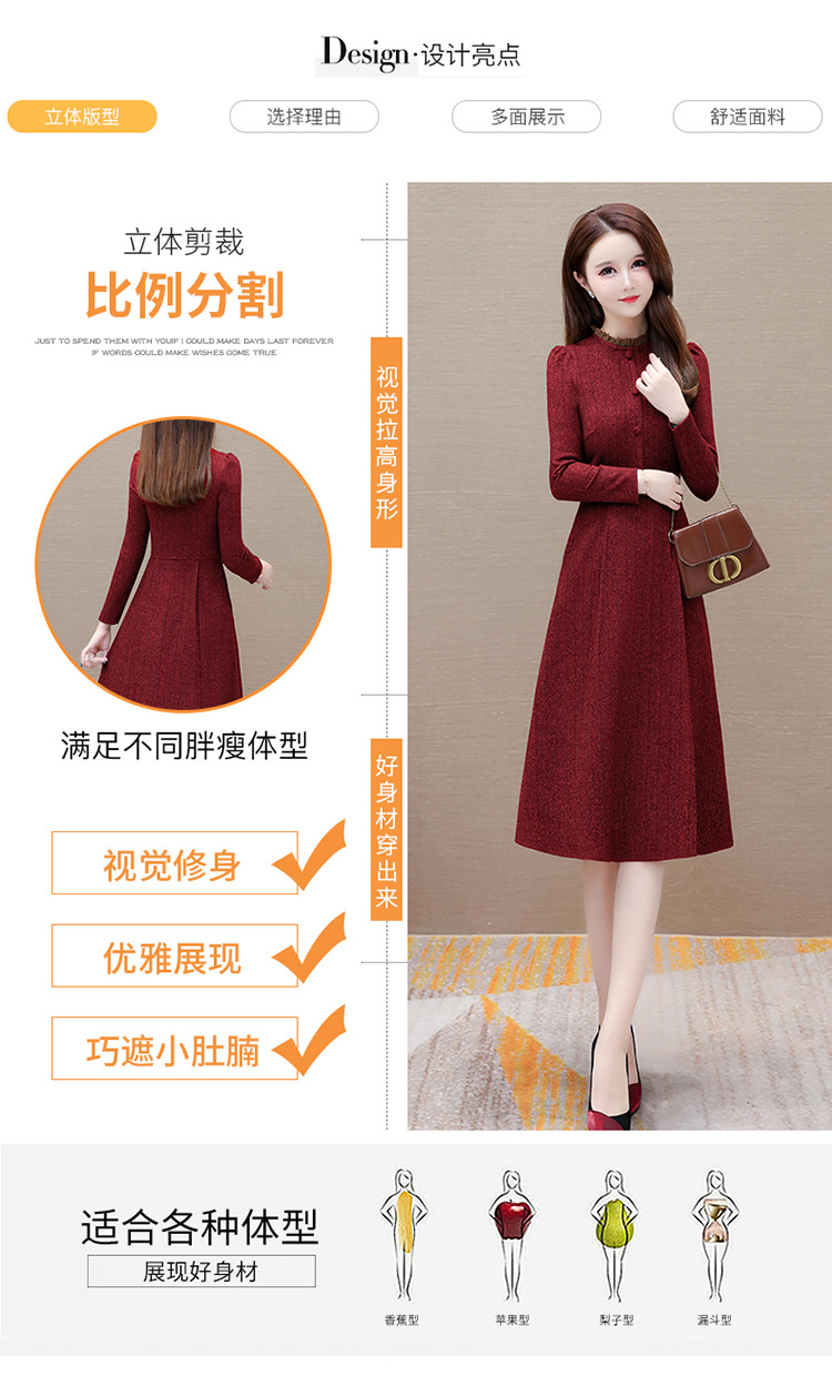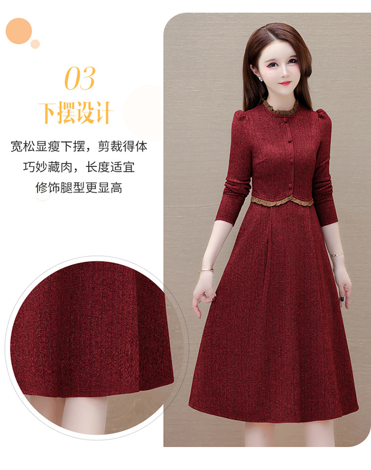 QYM 239925-1-Y假两件拼结中长款厚款裙 商品图4