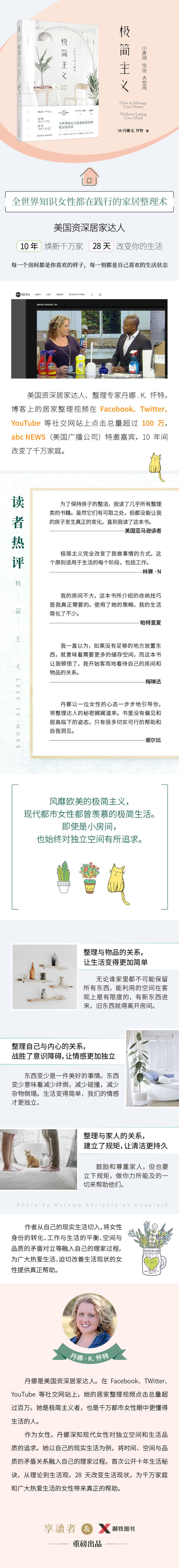 丹娜是美国资深居家达人。在Facebook、TWitter、YouTube等社交网站上,她的居家整理视频点击总量超过百万。她是极简主义者,也是千万都市女性眼中更懂得生活的人。
