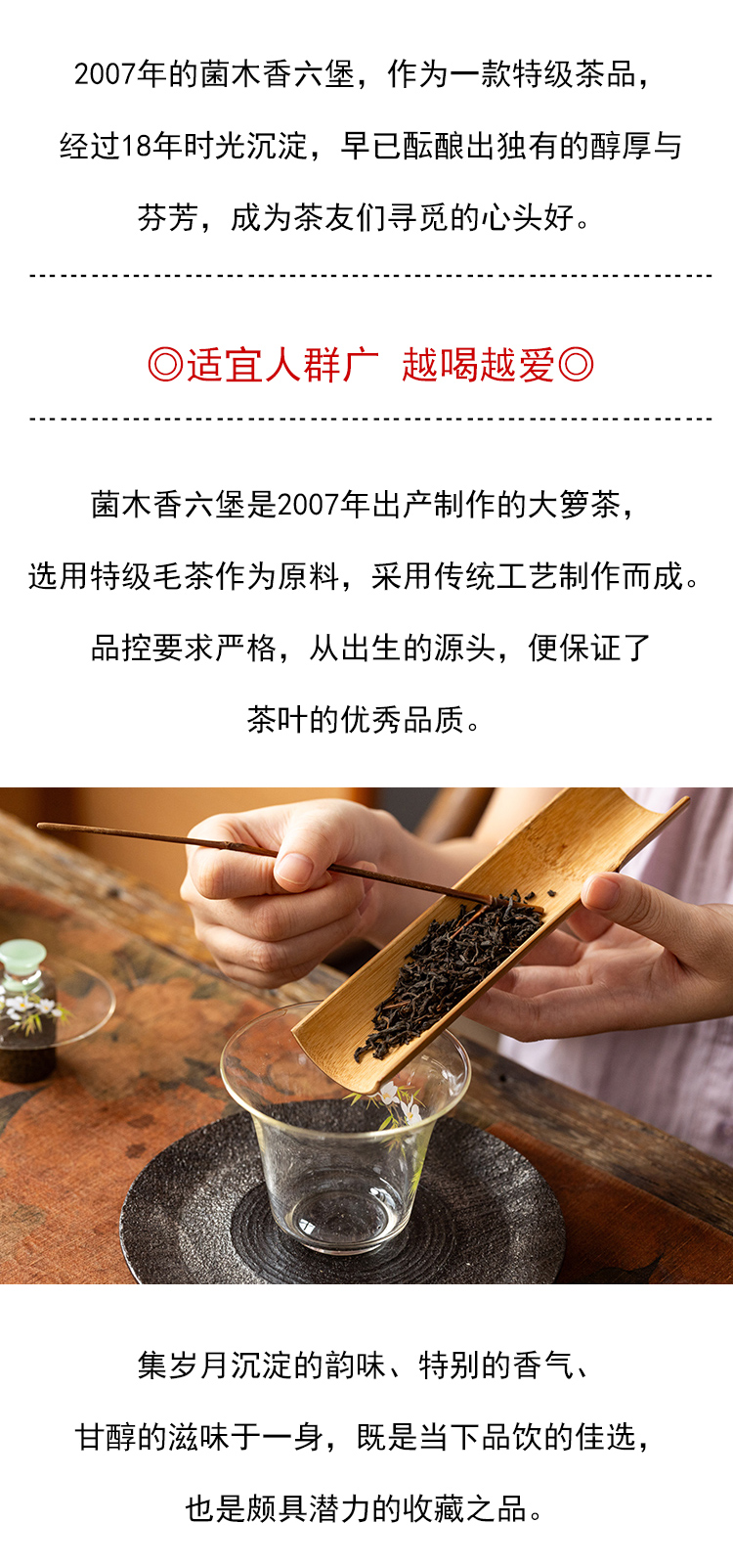 茶香记菌木香六堡007黑茶特级老茶香气独特层次丰富浓醇适宜人群广