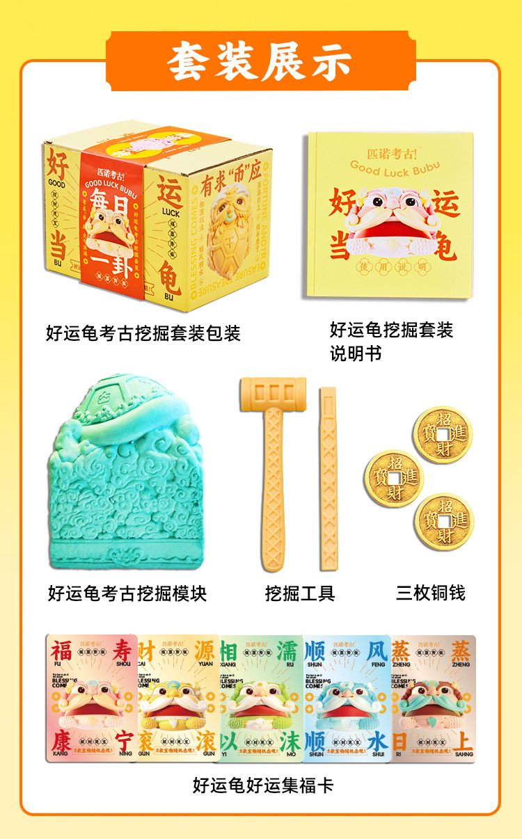 【好运当龟瑞兽木鱼小神仙】匹诺考古挖掘玩具好运当龟考古挖掘挖掘好运龟创意玩具礼物