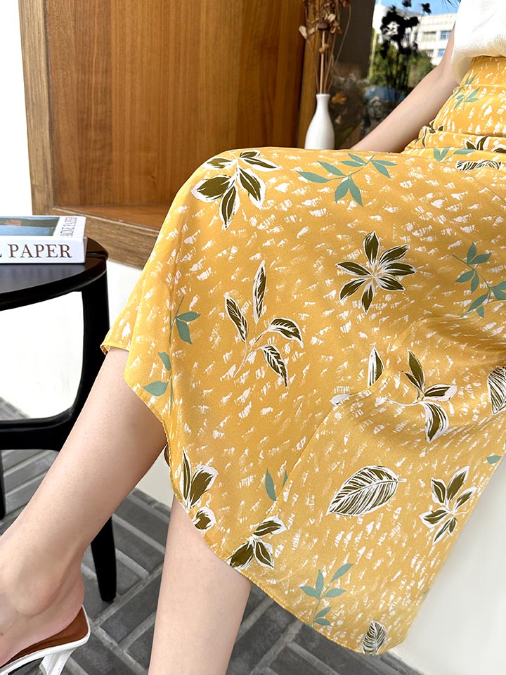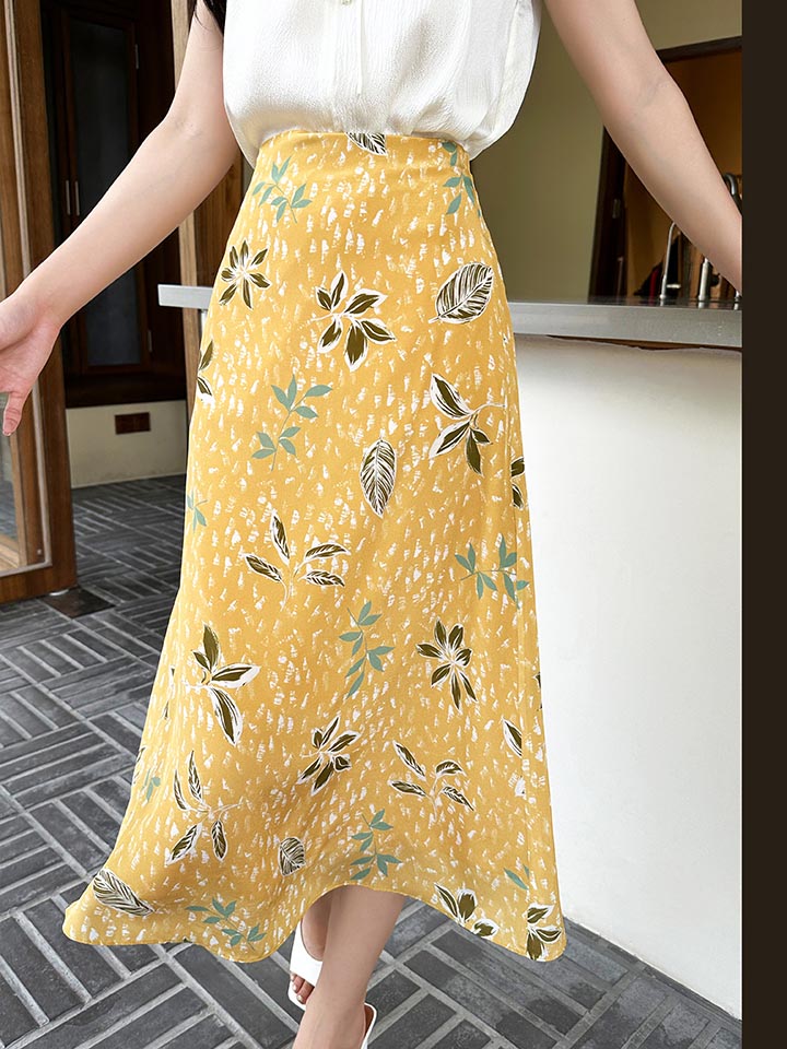 「K」洛诗琳气质印花半身裙2025夏季新款高腰显瘦真丝半裙女0901