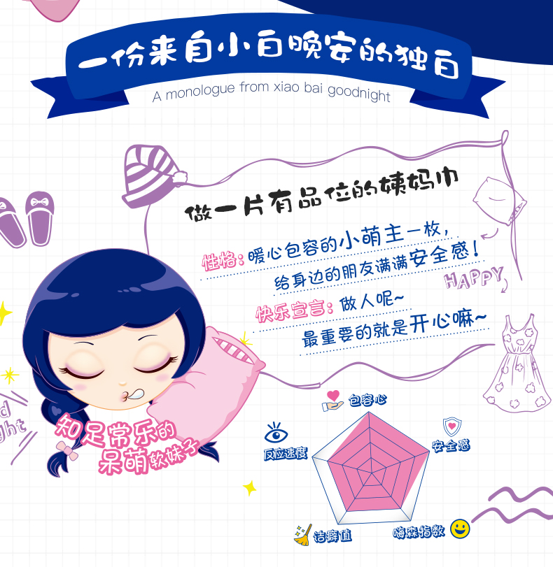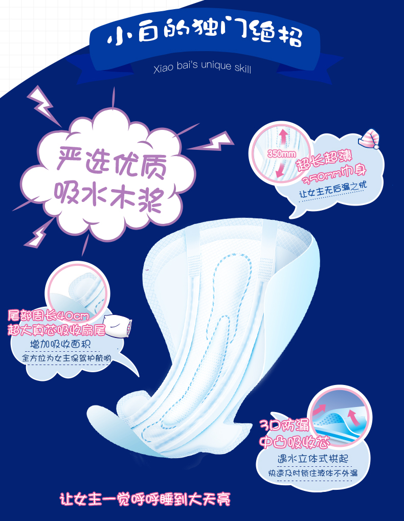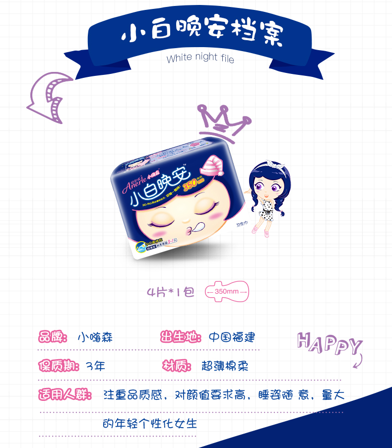 七度空间 (SPACE7)安尔乐 小嗨森 小白晚安 超长夜用卫生巾350mm*3片(加量装)