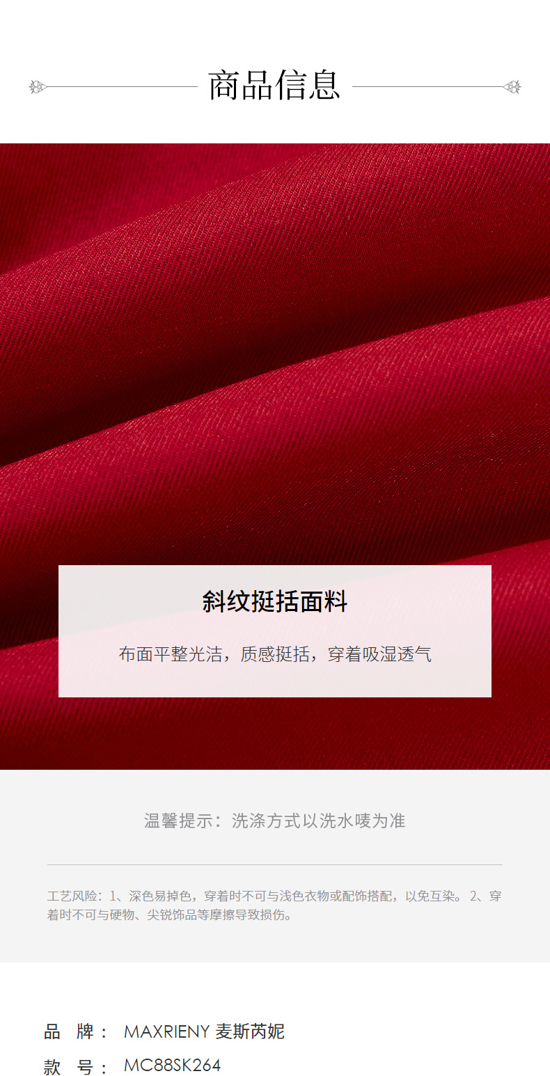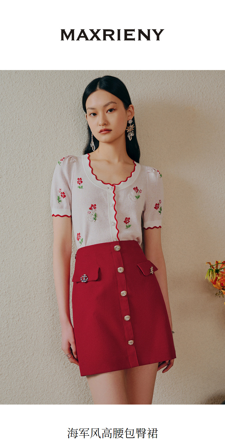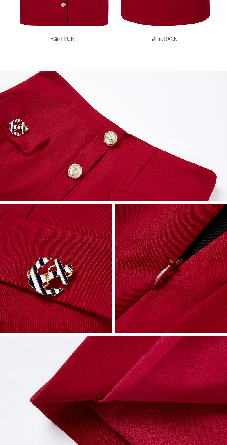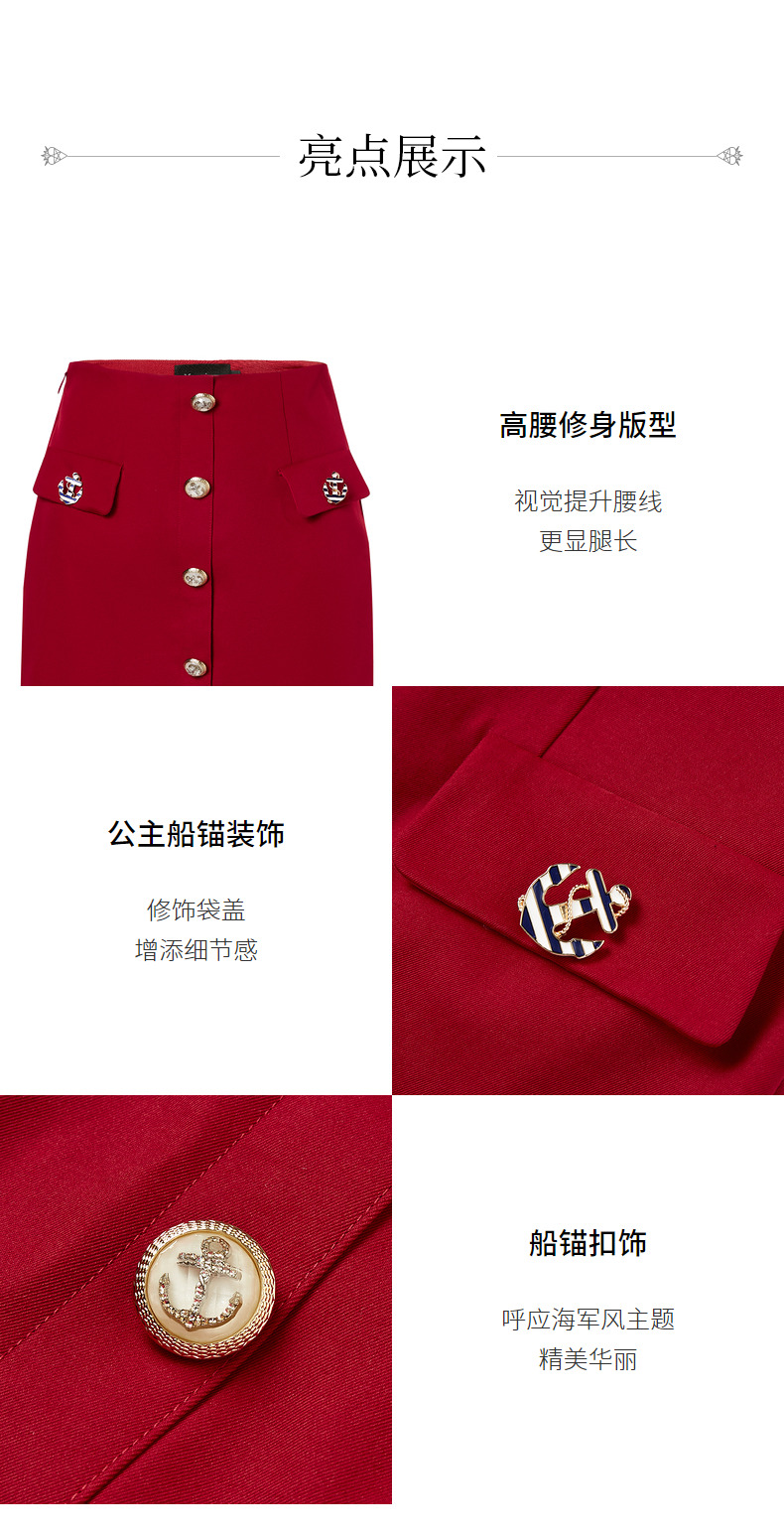 MAXRIENY海军风高腰包臀裙复古红裙子(货号:MC88SK264)