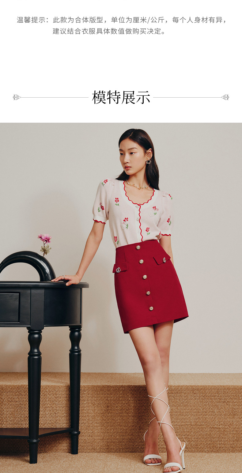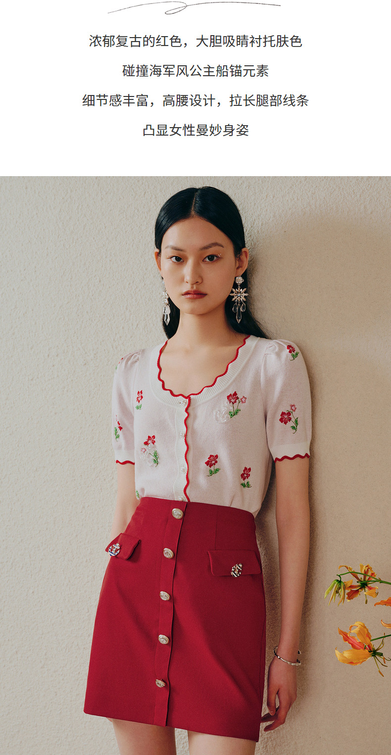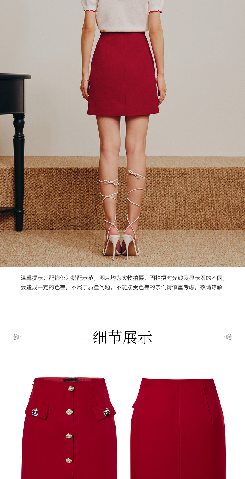 MAXRIENY海军风高腰包臀裙复古红裙子(货号:MC88SK264)