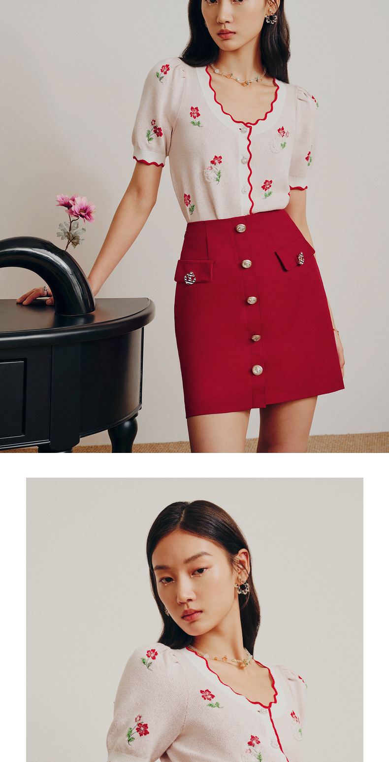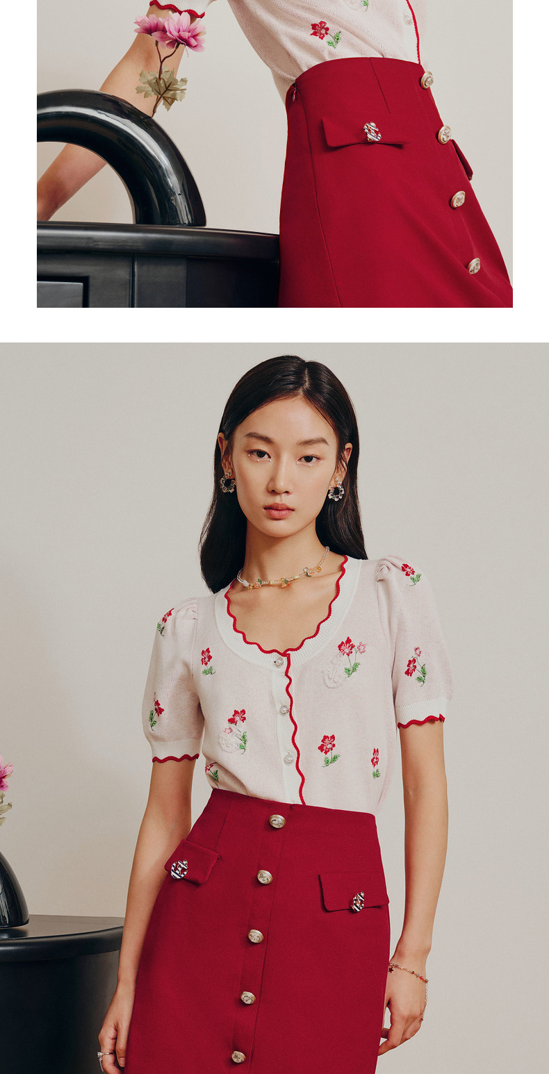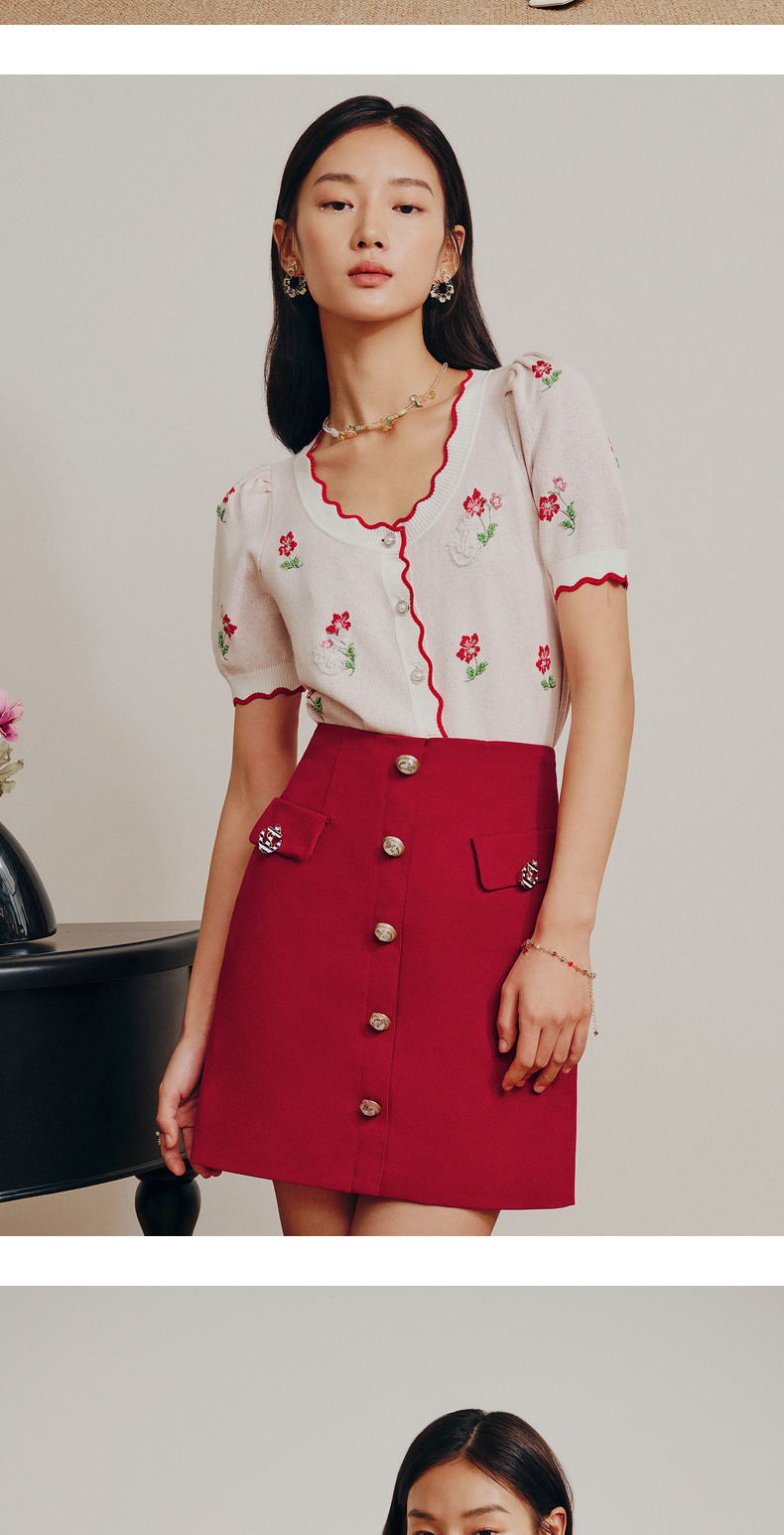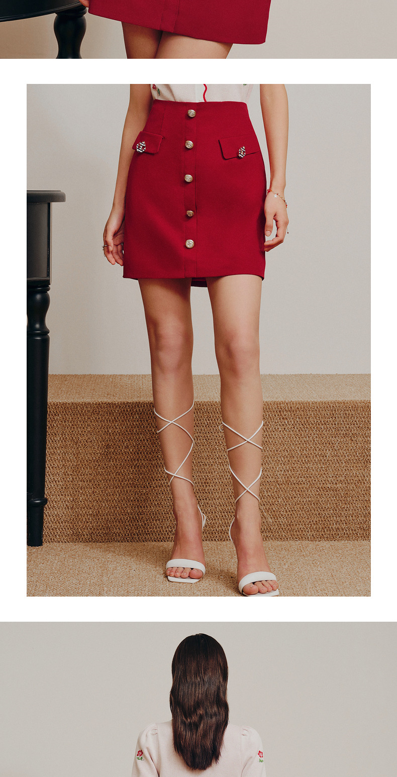 MAXRIENY海军风高腰包臀裙复古红裙子(货号:MC88SK264)