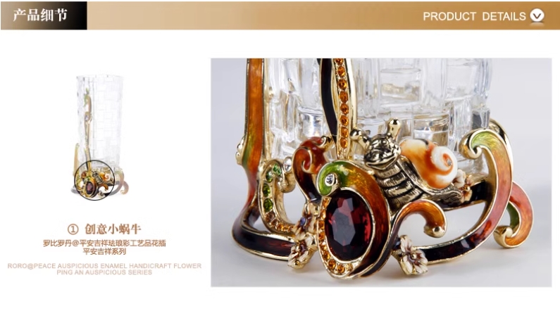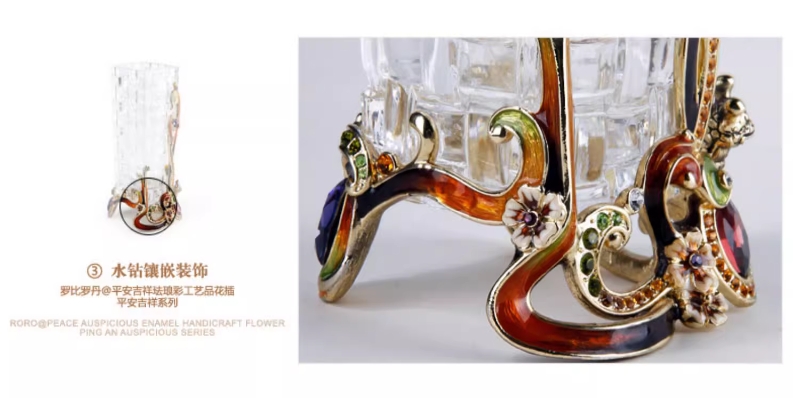 【彼达思】罗比罗丹平安吉祥小花插创意田园风珐琅彩小花瓶居家装饰摆件送礼办公室玻璃花插