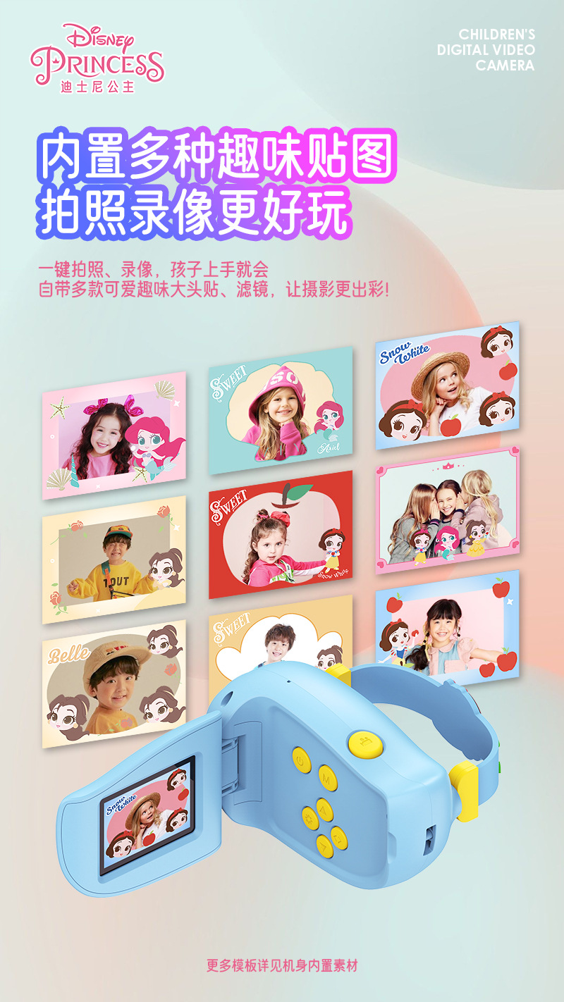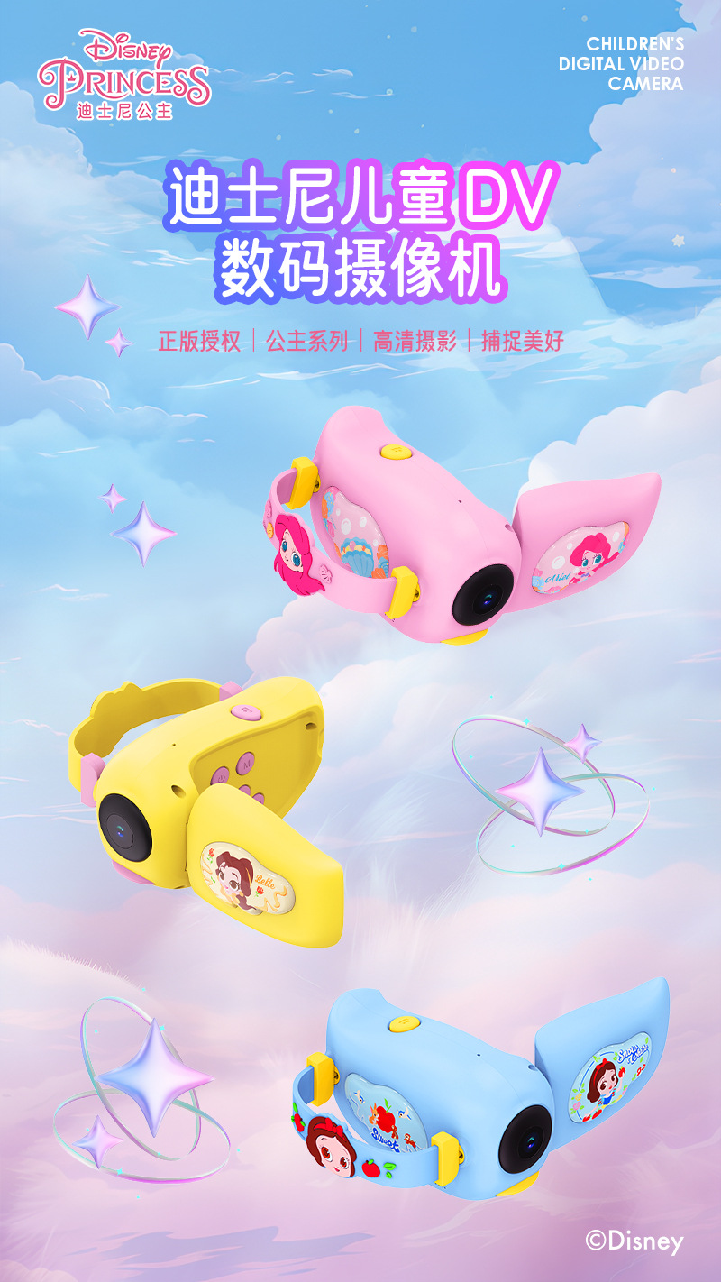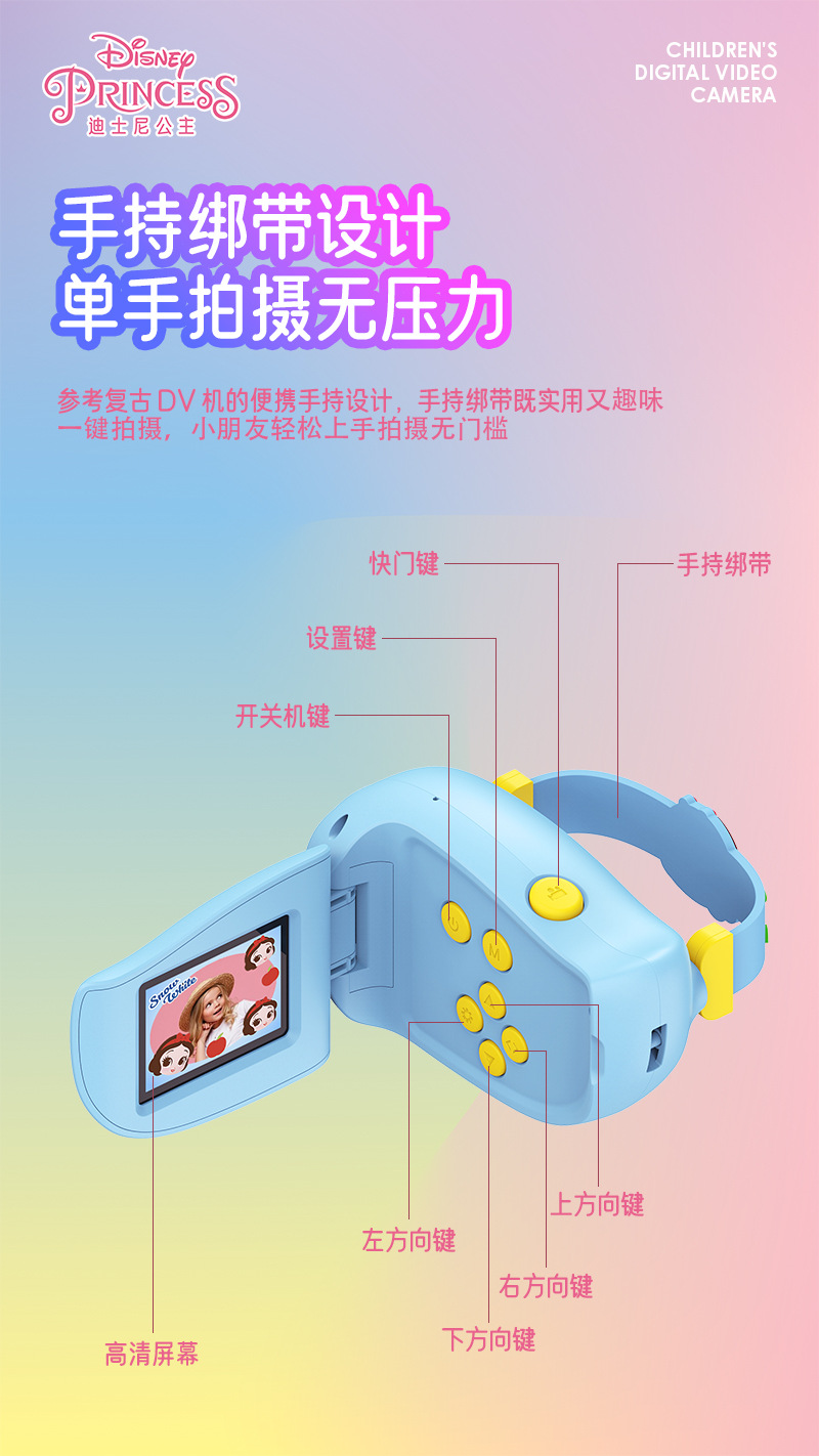 正版迪士尼公主儿童手持DV摄影机数码相机拍照录像机卡通玩具礼物