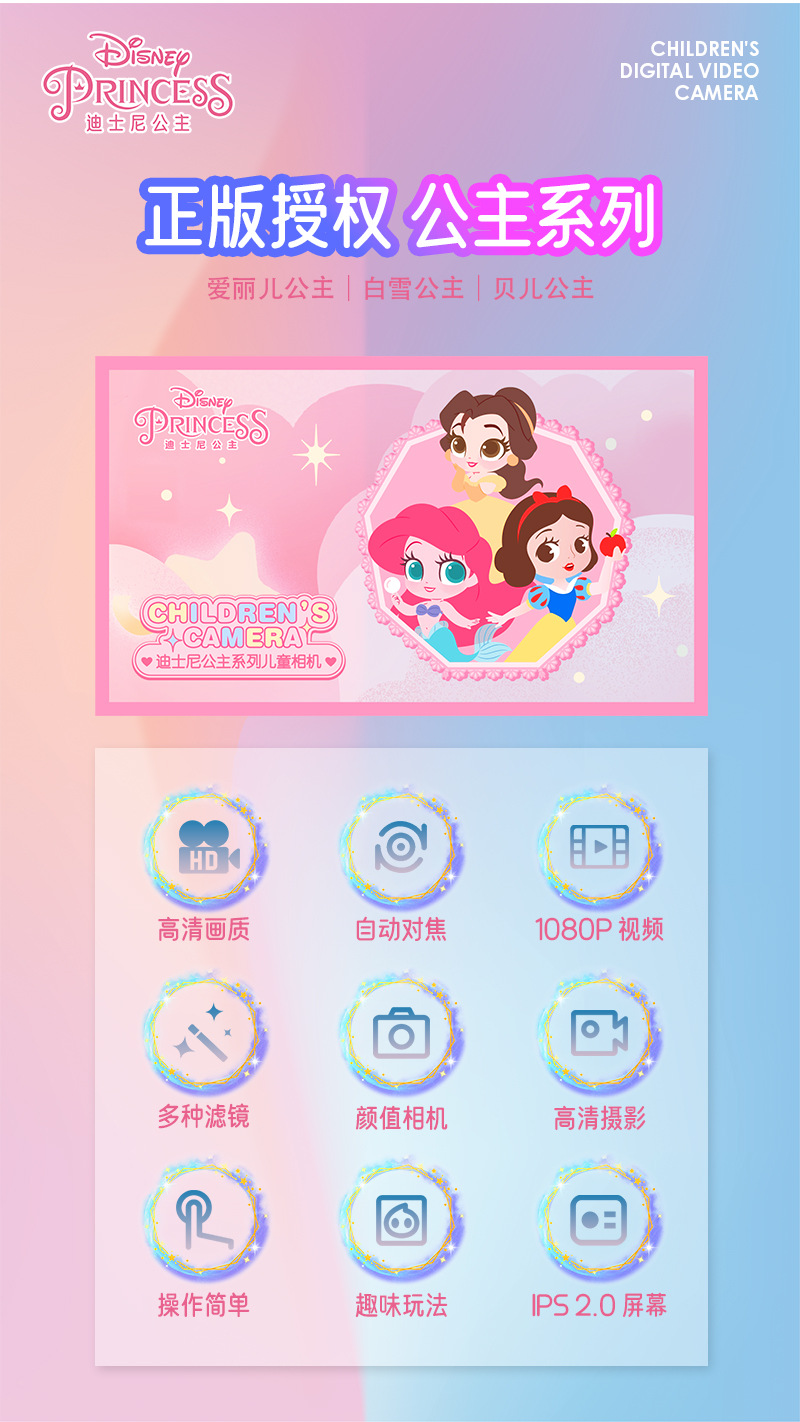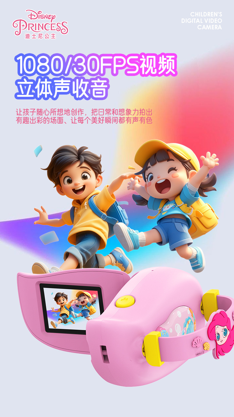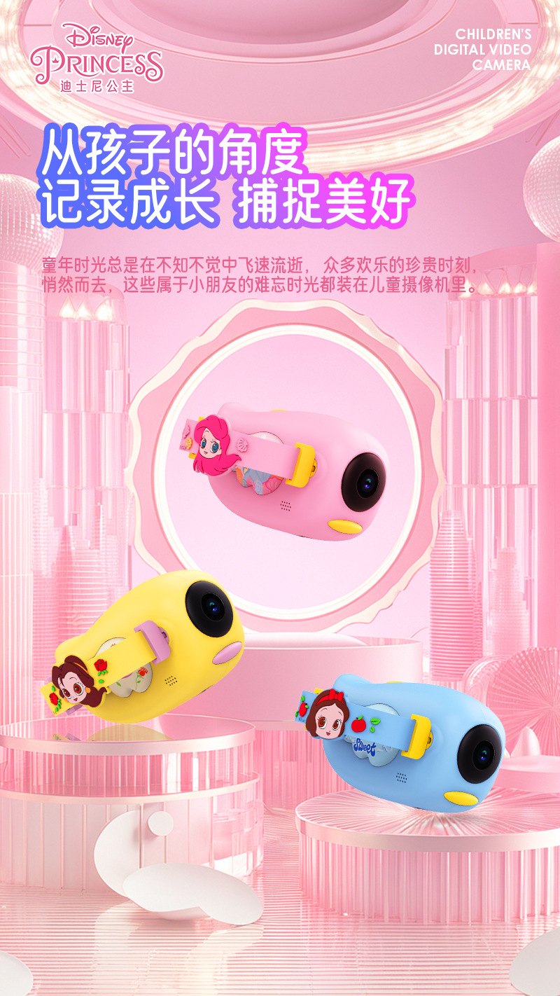 正版迪士尼公主儿童手持DV摄影机数码相机拍照录像机卡通玩具礼物