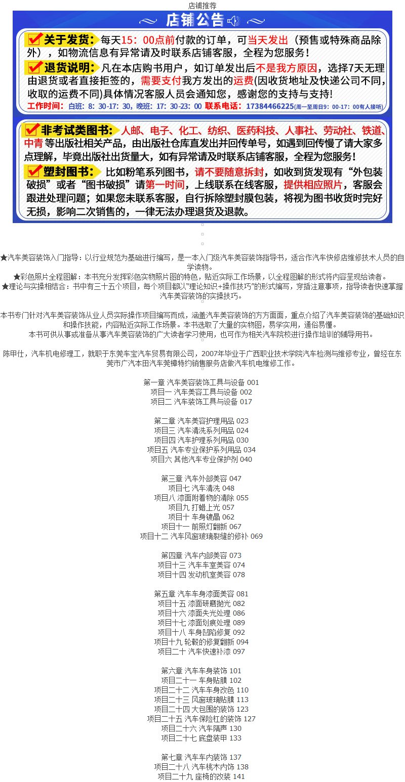 汽车美容装饰一本通 全彩图解 汽车美容装饰书籍 零基础学汽车美容 入门级汽车美容装饰指导书籍 汽车美容维修内饰贴膜改装书籍 化学工业出版社 9787122395078