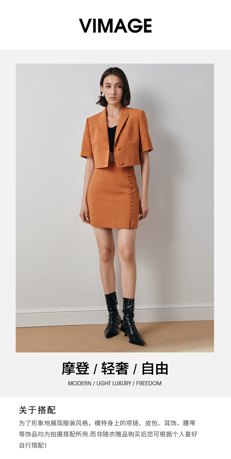 VIMAGE纬漫纪秋款时尚气质个性显瘦百搭包臀半身裙短裙女V2006606