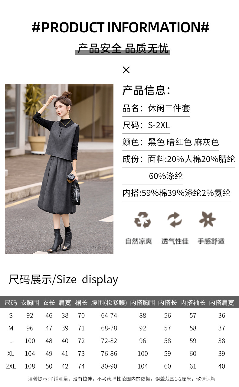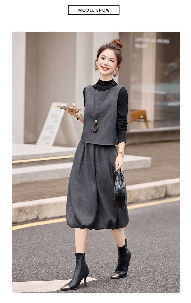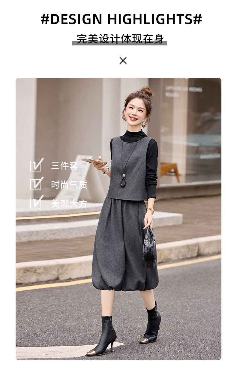 时尚轻熟通勤风显瘦气质,马甲套装减龄阔腿裤三件套HR-GJC2593