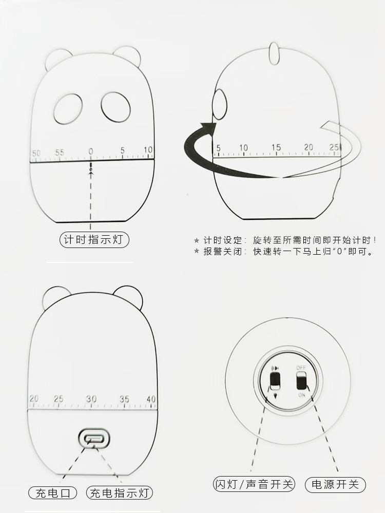 卡通桌面计时器 | UNISUN 学习儿童专用自律机械 时间管理器 全静音充电 厨房提醒闹钟