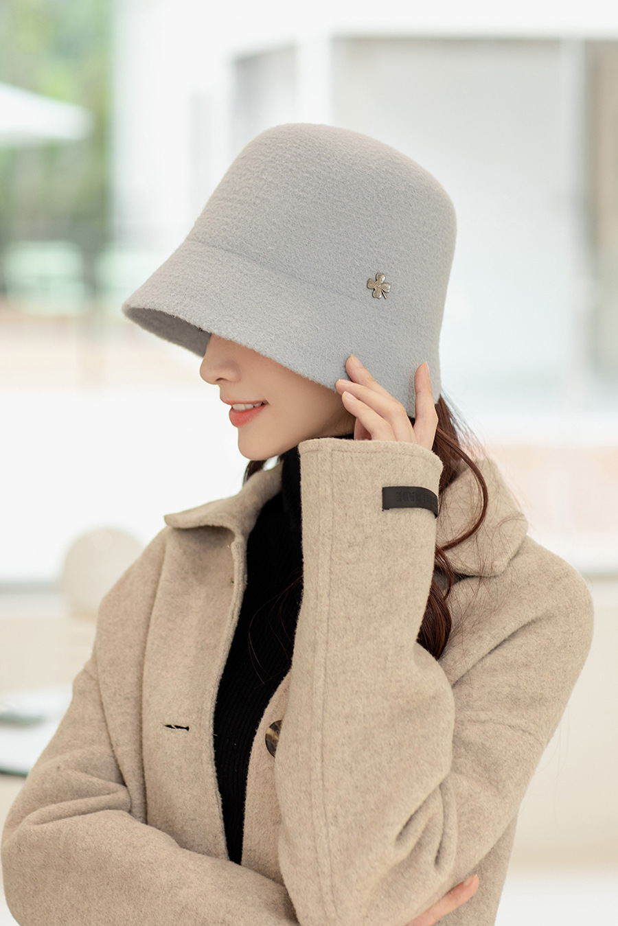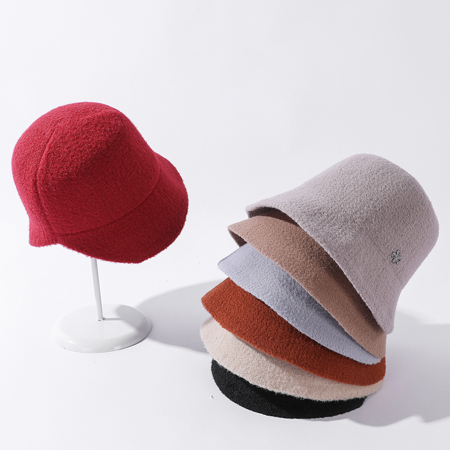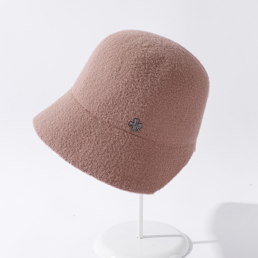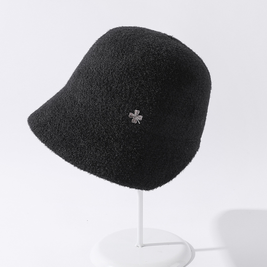 貂绒渔夫帽四叶草后开叉针织百搭保暖帽 JC- M2-M1328
