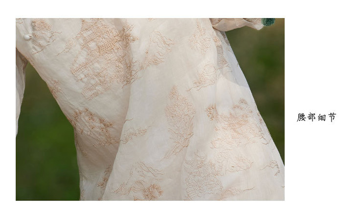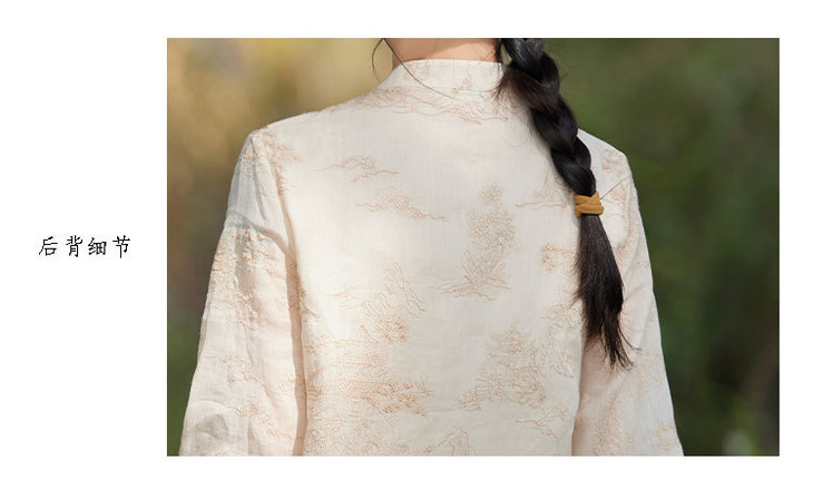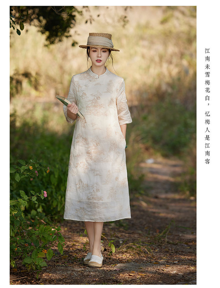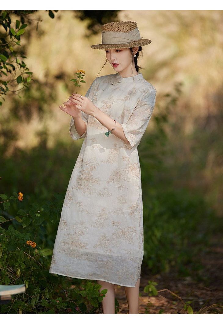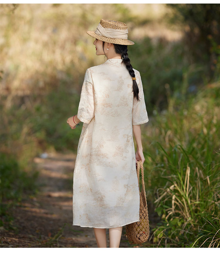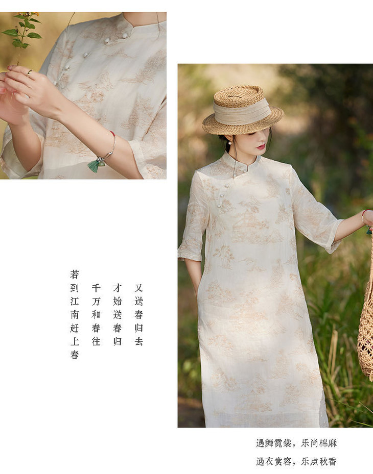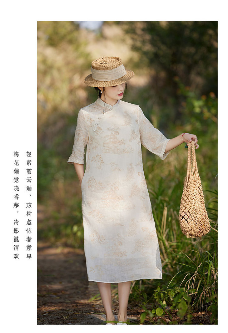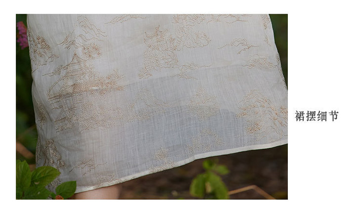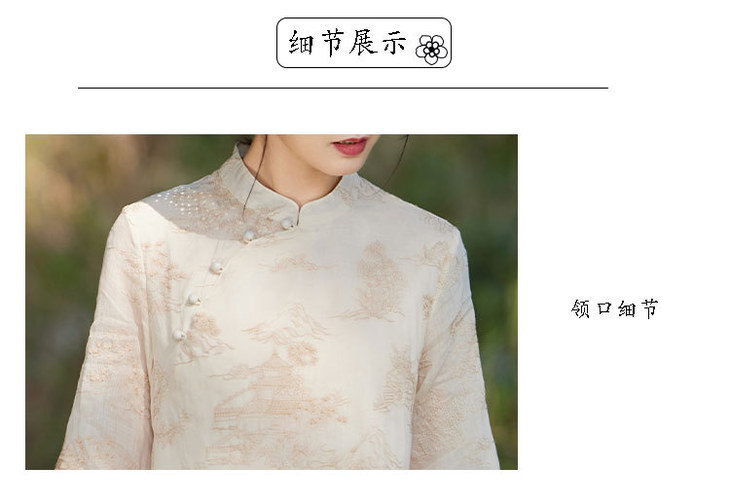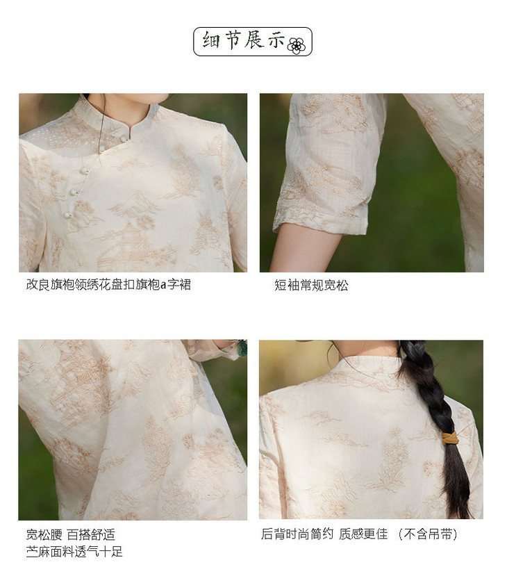 苎麻连衣裙洋气减龄五分袖立领,盘扣刺绣绣花改良旗袍裙TT-96253