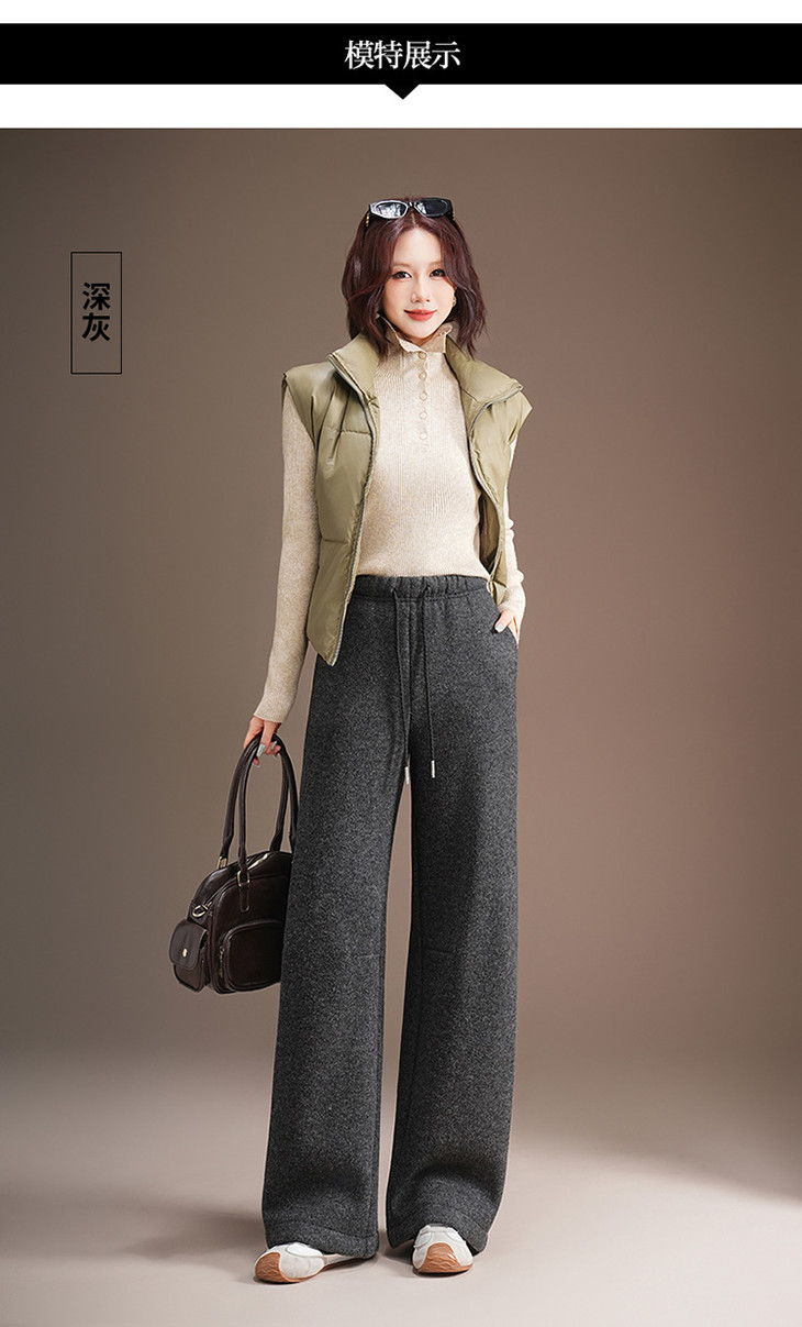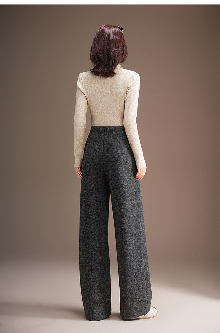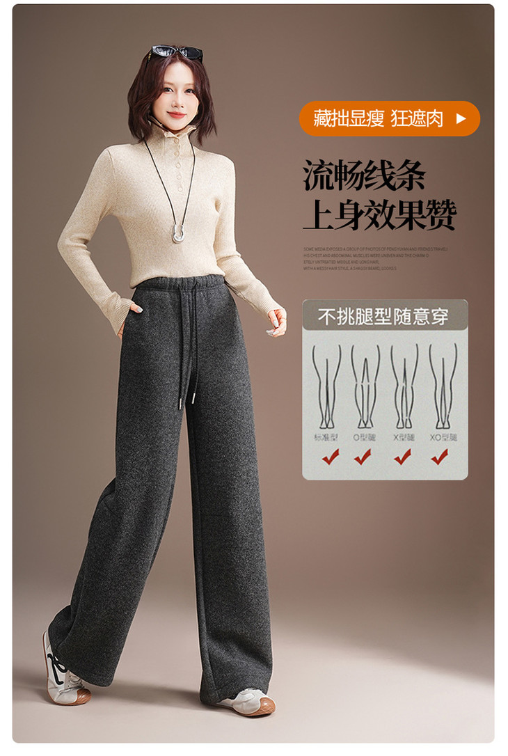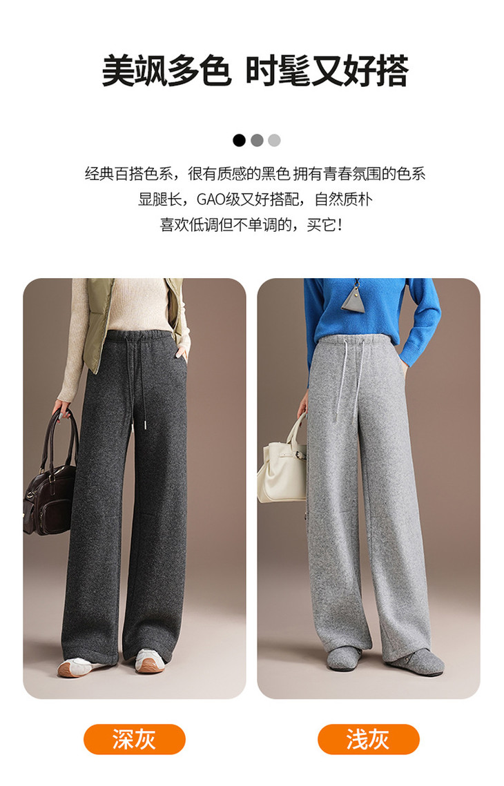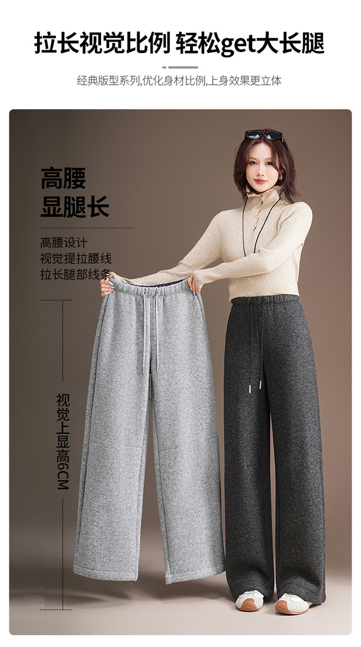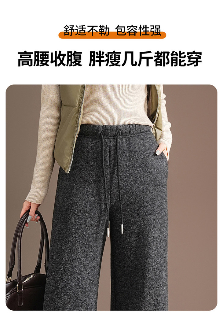 松紧腰毛呢加绒休闲长裤,垂坠感修身直筒裤宽松显瘦阔腿裤MYX-KDFY-5371-L
