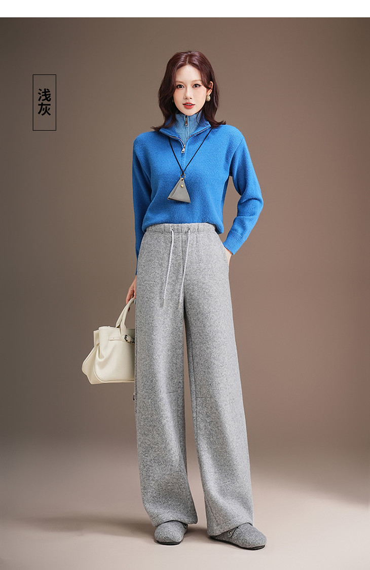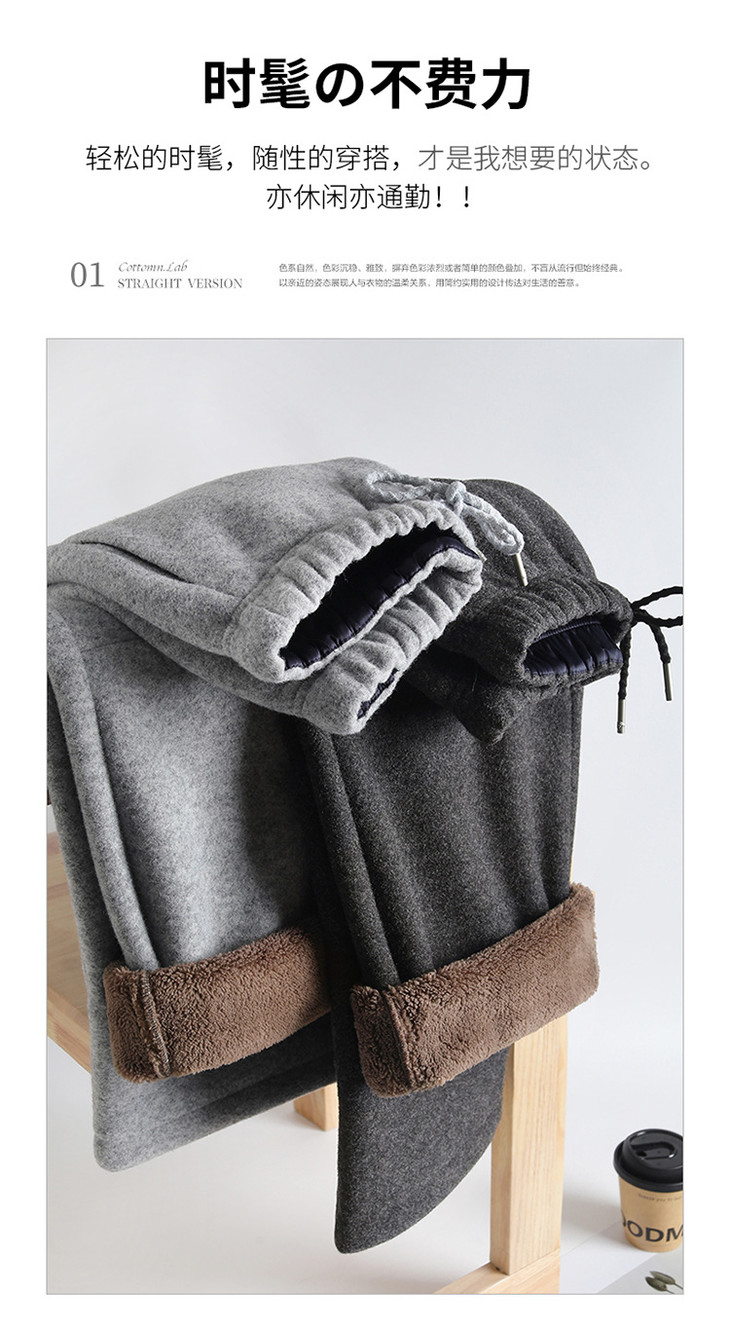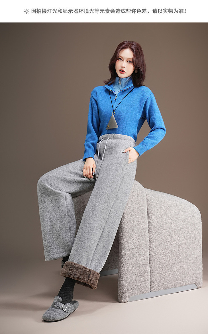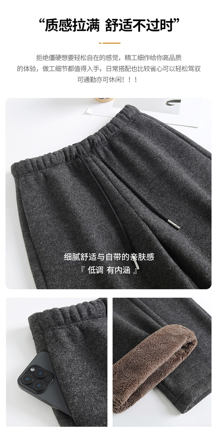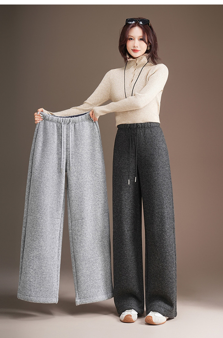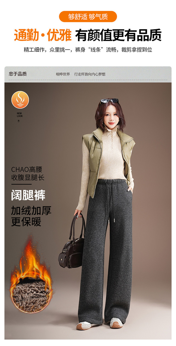 松紧腰毛呢加绒休闲长裤,垂坠感修身直筒裤宽松显瘦阔腿裤MYX-KDFY-5371-L