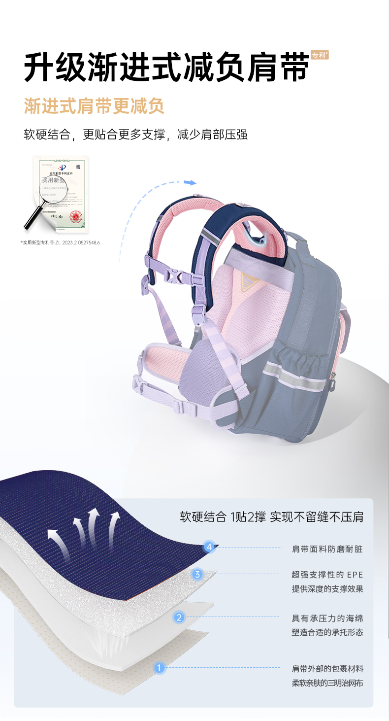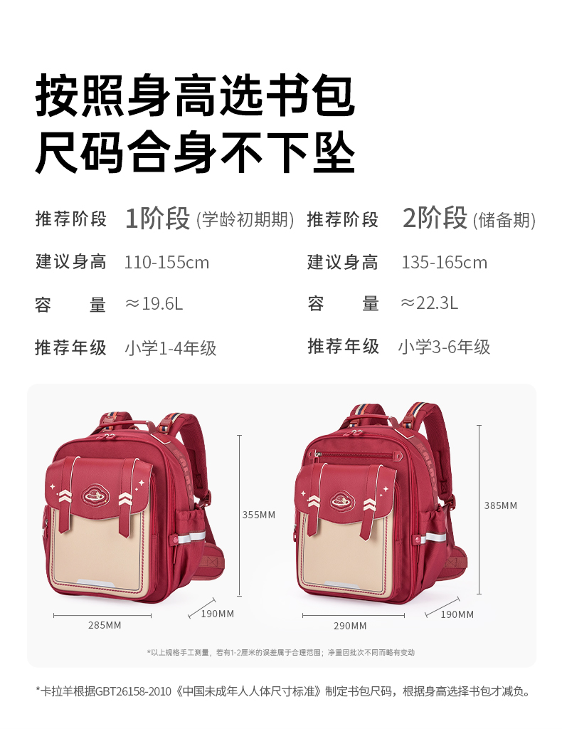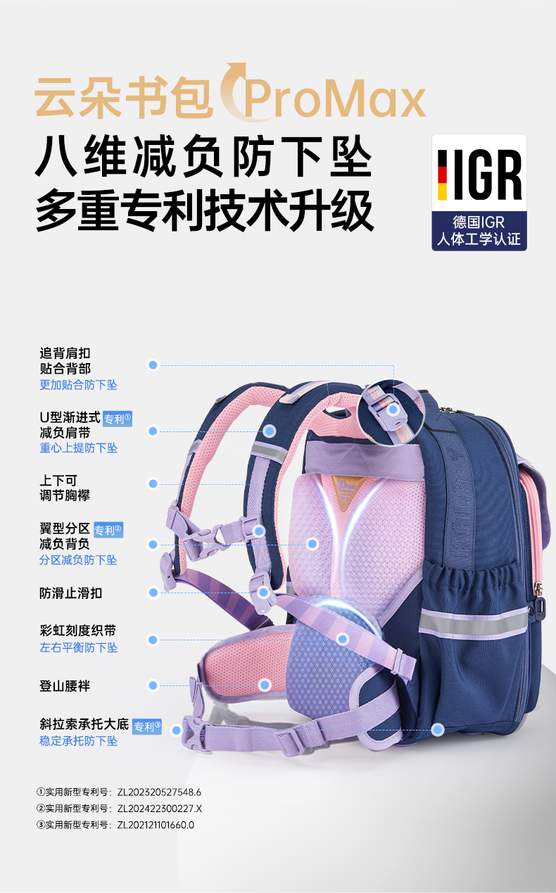 【云朵书包ProMax】卡拉羊19.2/22.3L小学生1-6年级ProMax8维减负云朵书包晴空 CX2296+CX2613