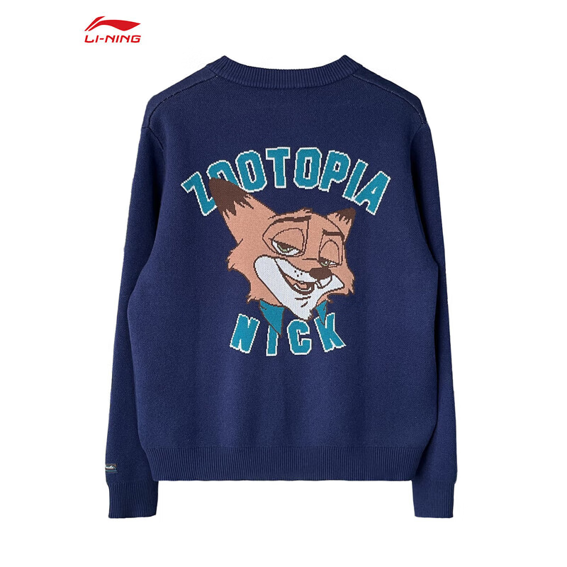 李宁(LI-NING)迪士尼疯狂动物城联名套头无帽编织衫男2025冬季保暖毛衣AMBV433