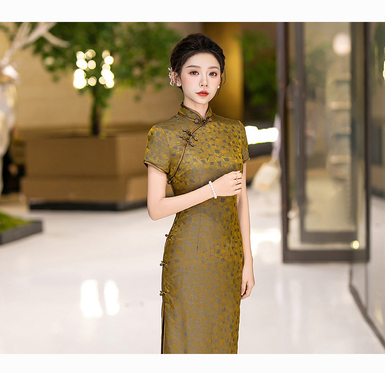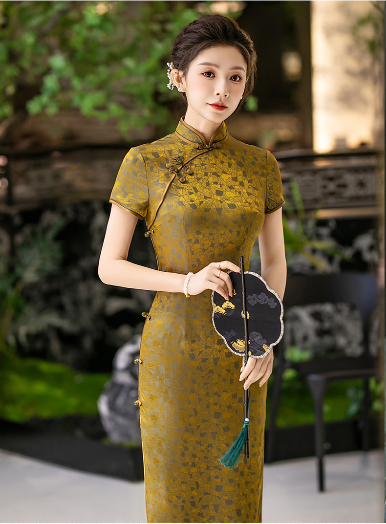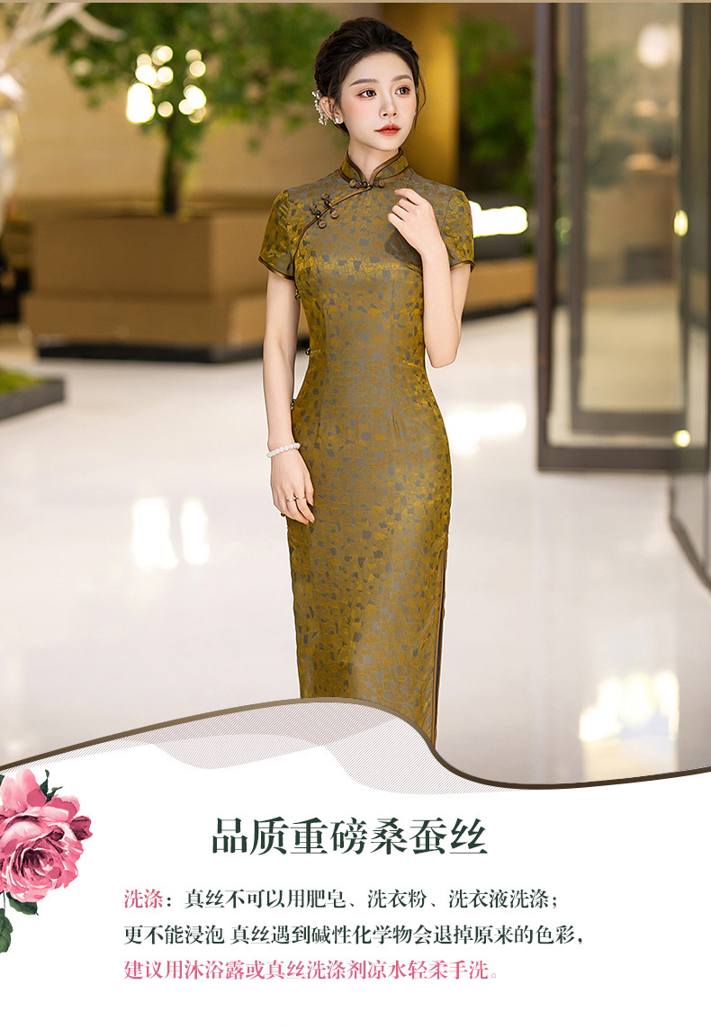 WX-2025春季新款真丝旗袍中式桑蚕丝连衣裙手工缝制送考宴席日常可穿