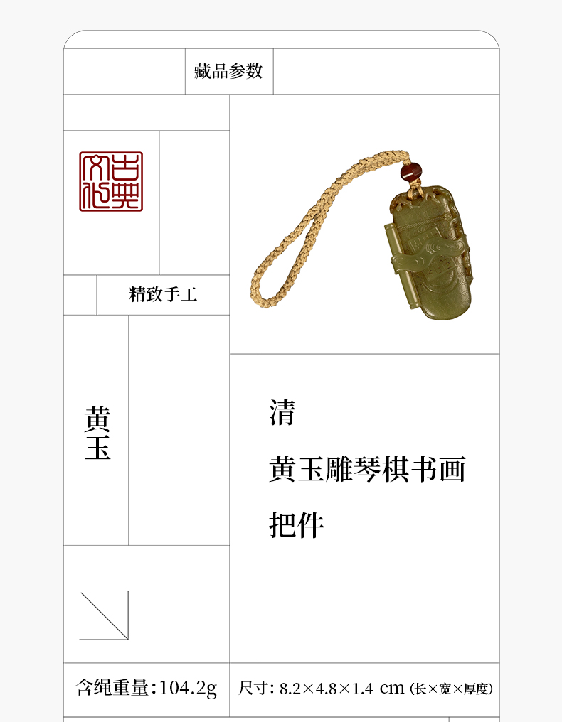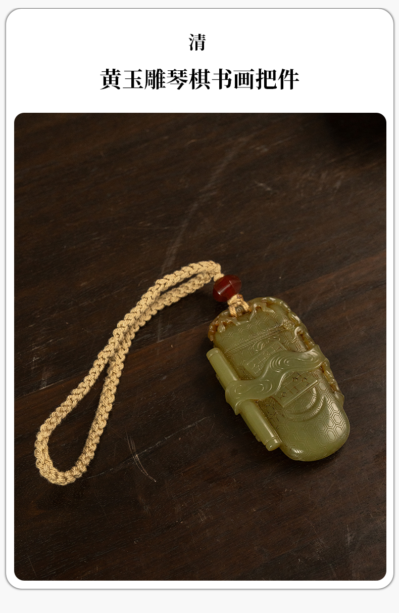 清 黄玉雕琴棋书画把件