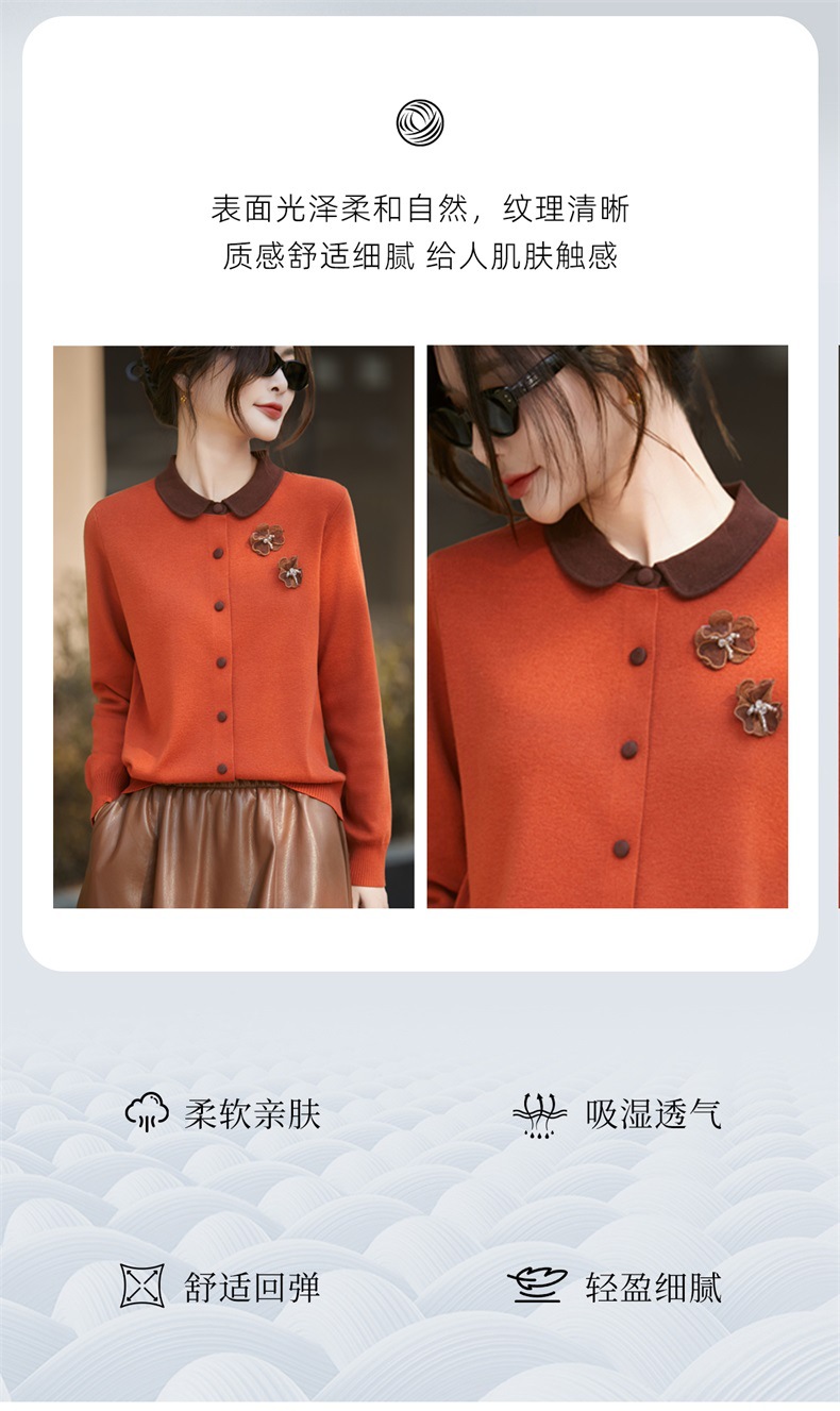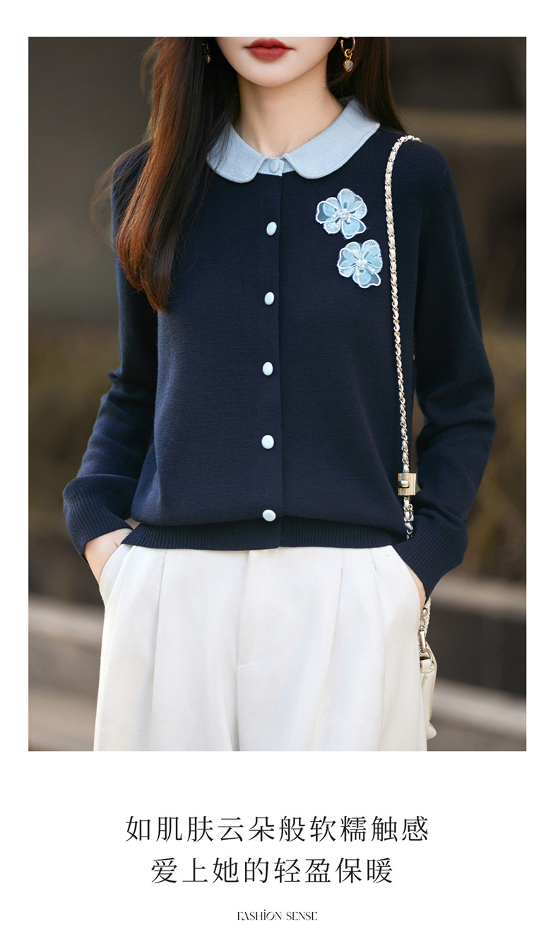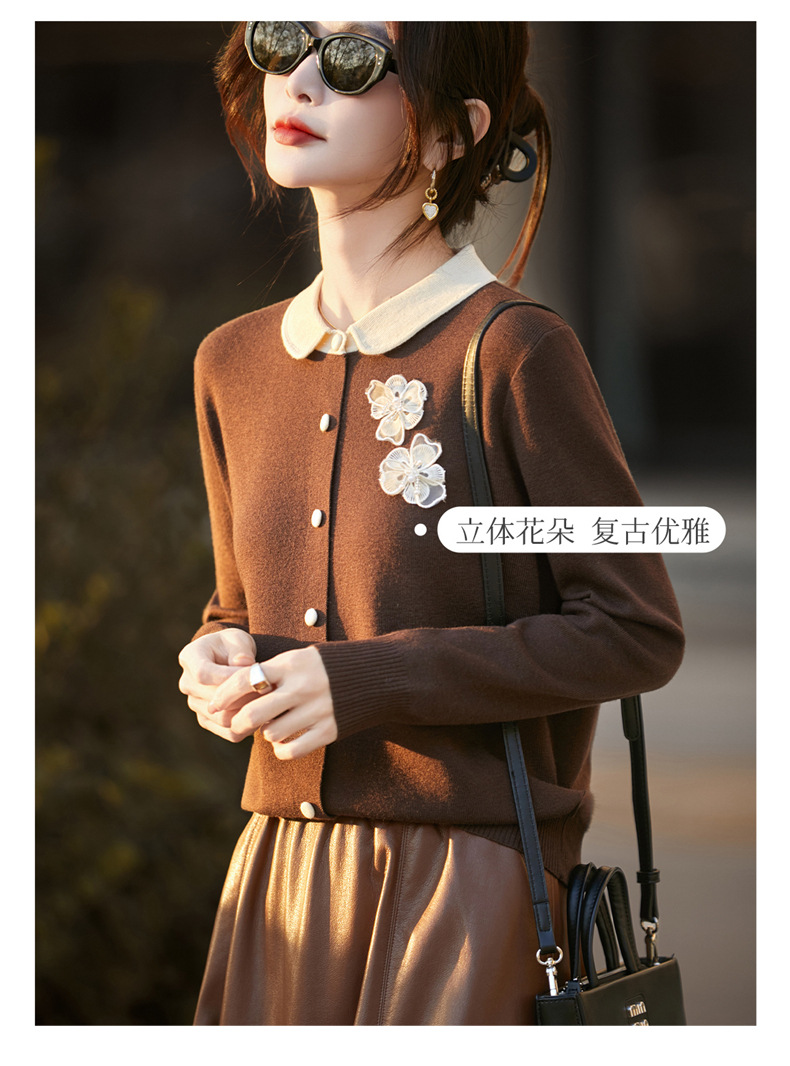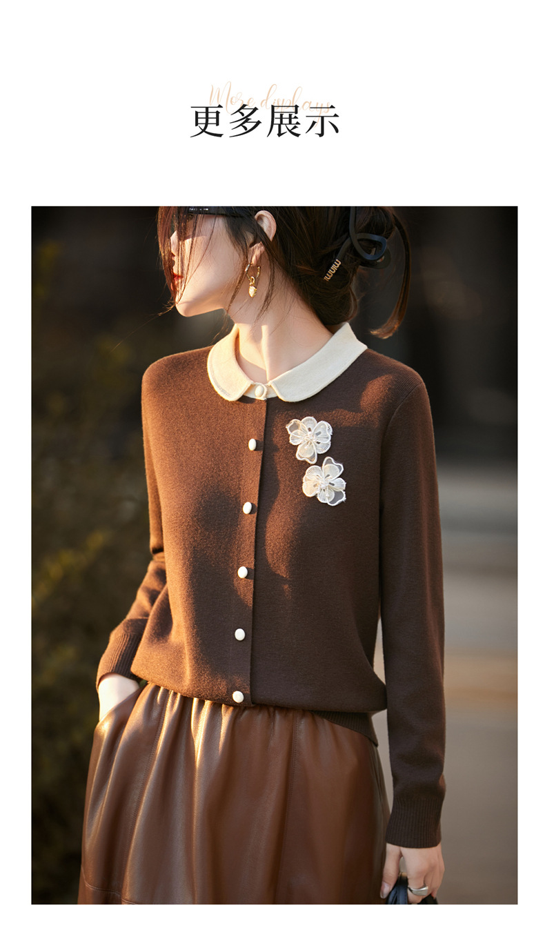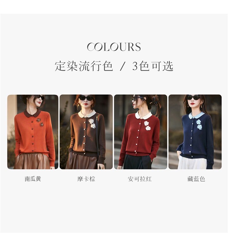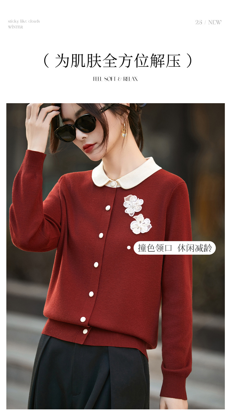 「自」全新升级【铂金会员183/天猫239/差价56】(14035)洛诗琳新款撞色娃娃领羊毛上衣2025冬季气质百搭通勤开衫14035