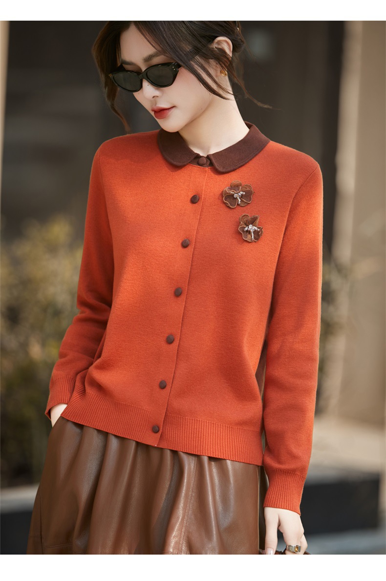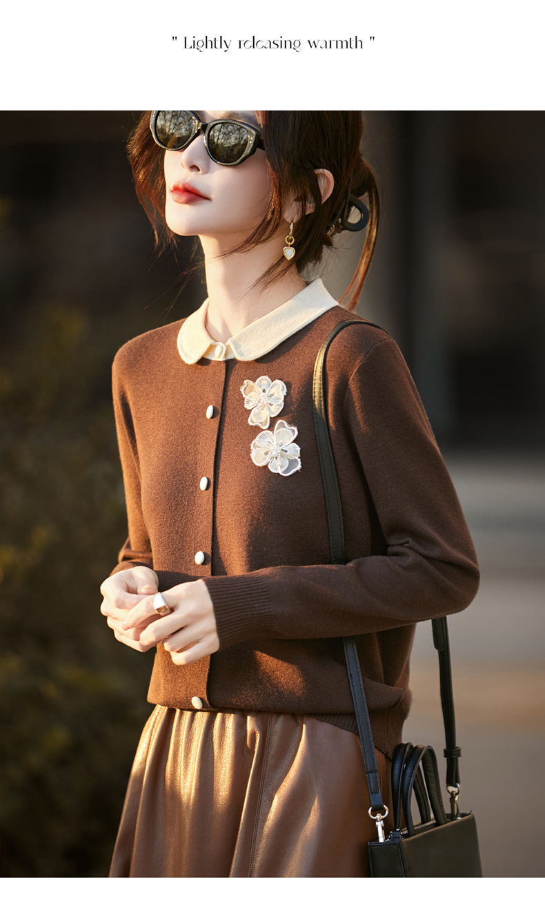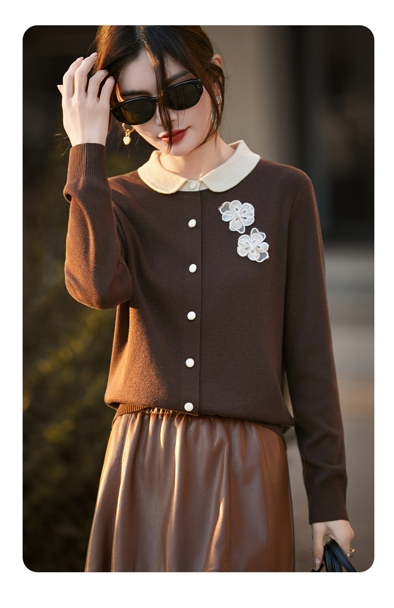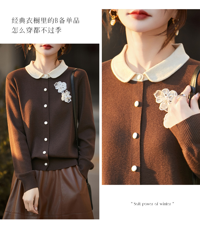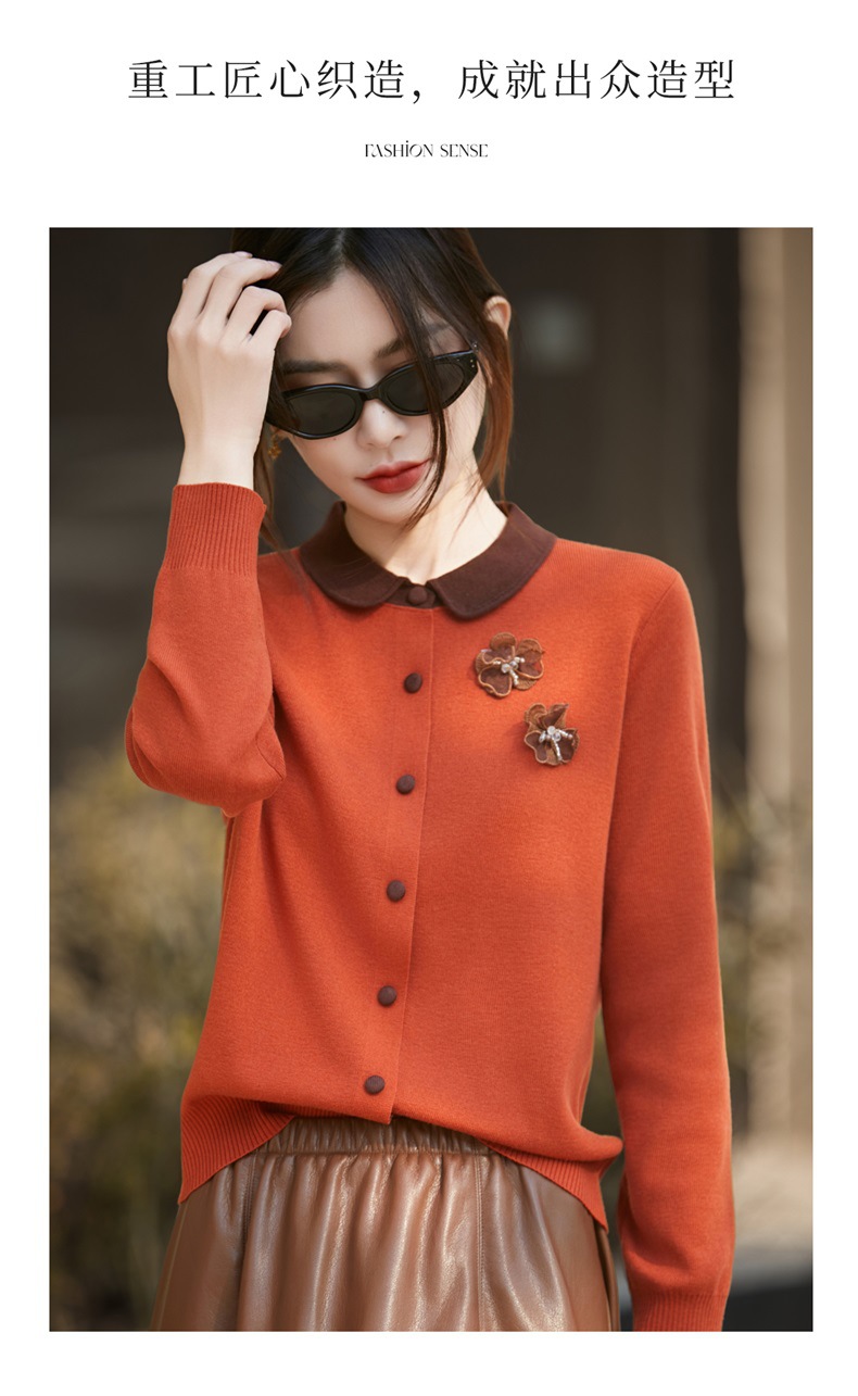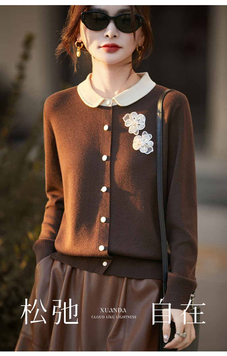 「自」全新升级【铂金会员183/天猫239/差价56】(14035)洛诗琳新款撞色娃娃领羊毛上衣2025冬季气质百搭通勤开衫14035